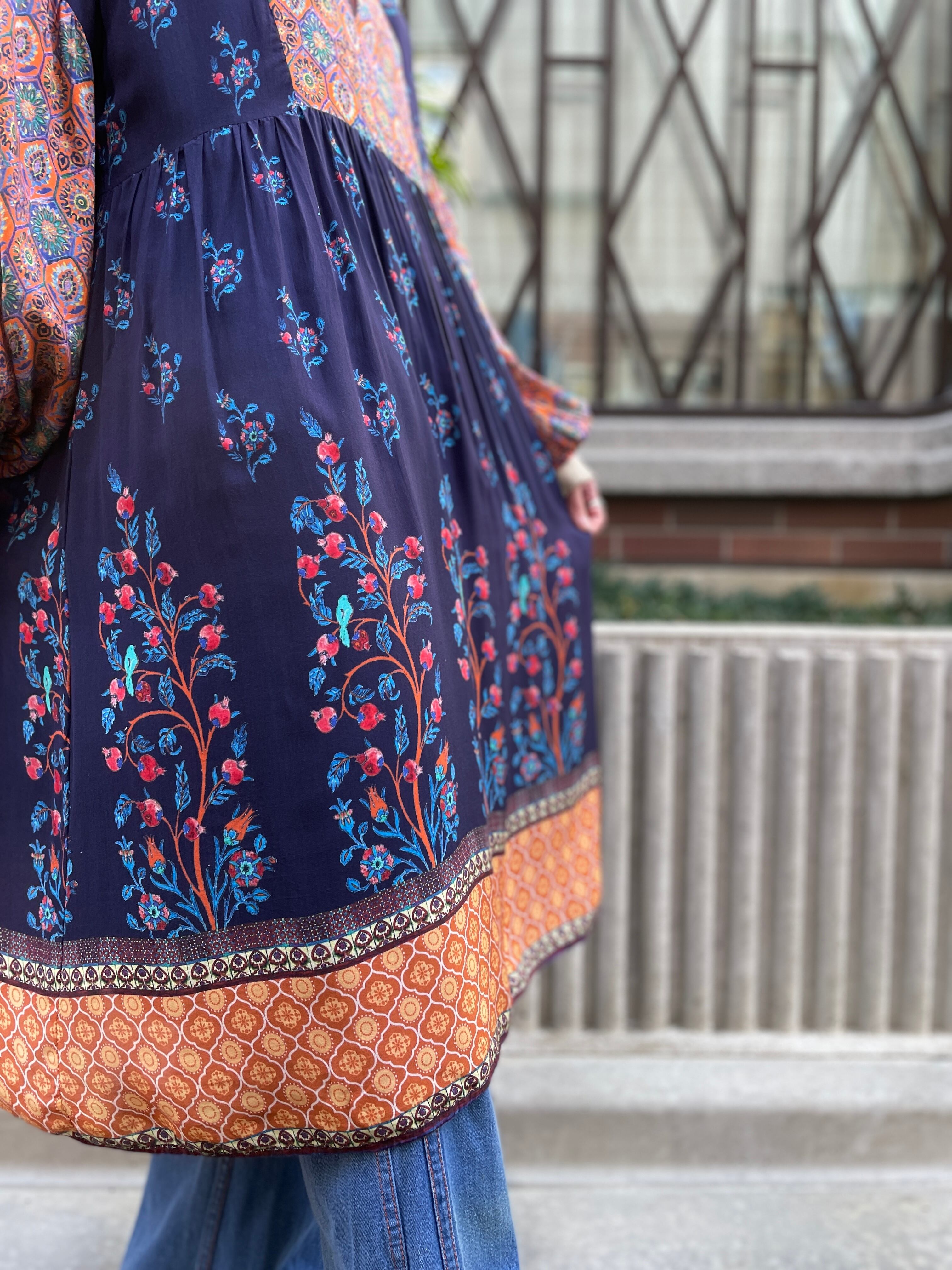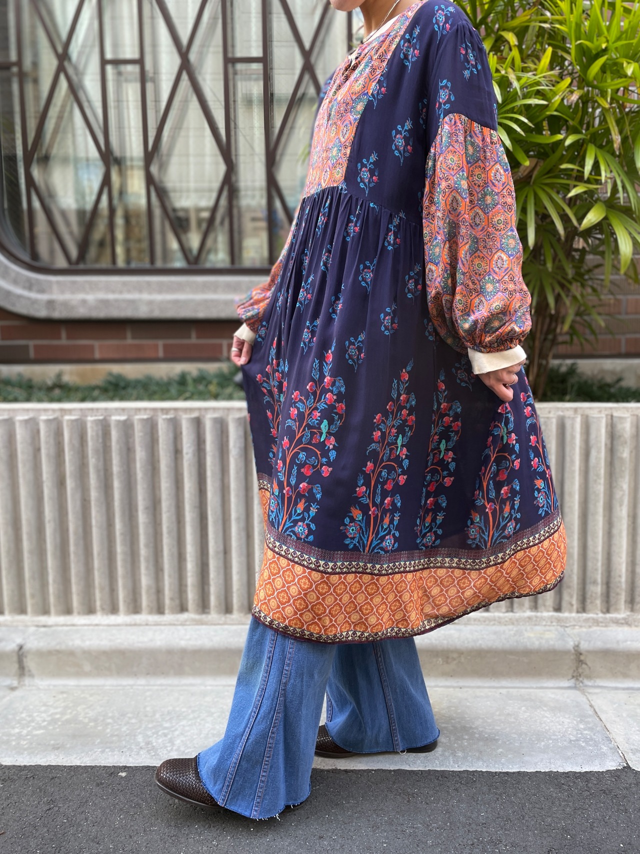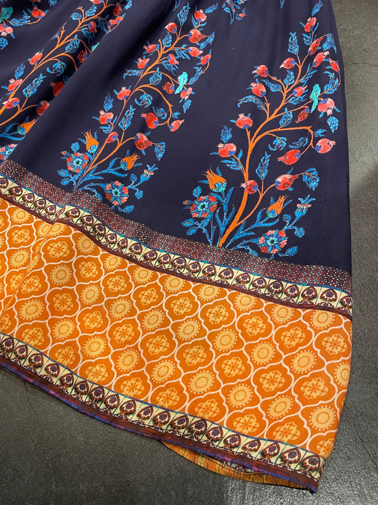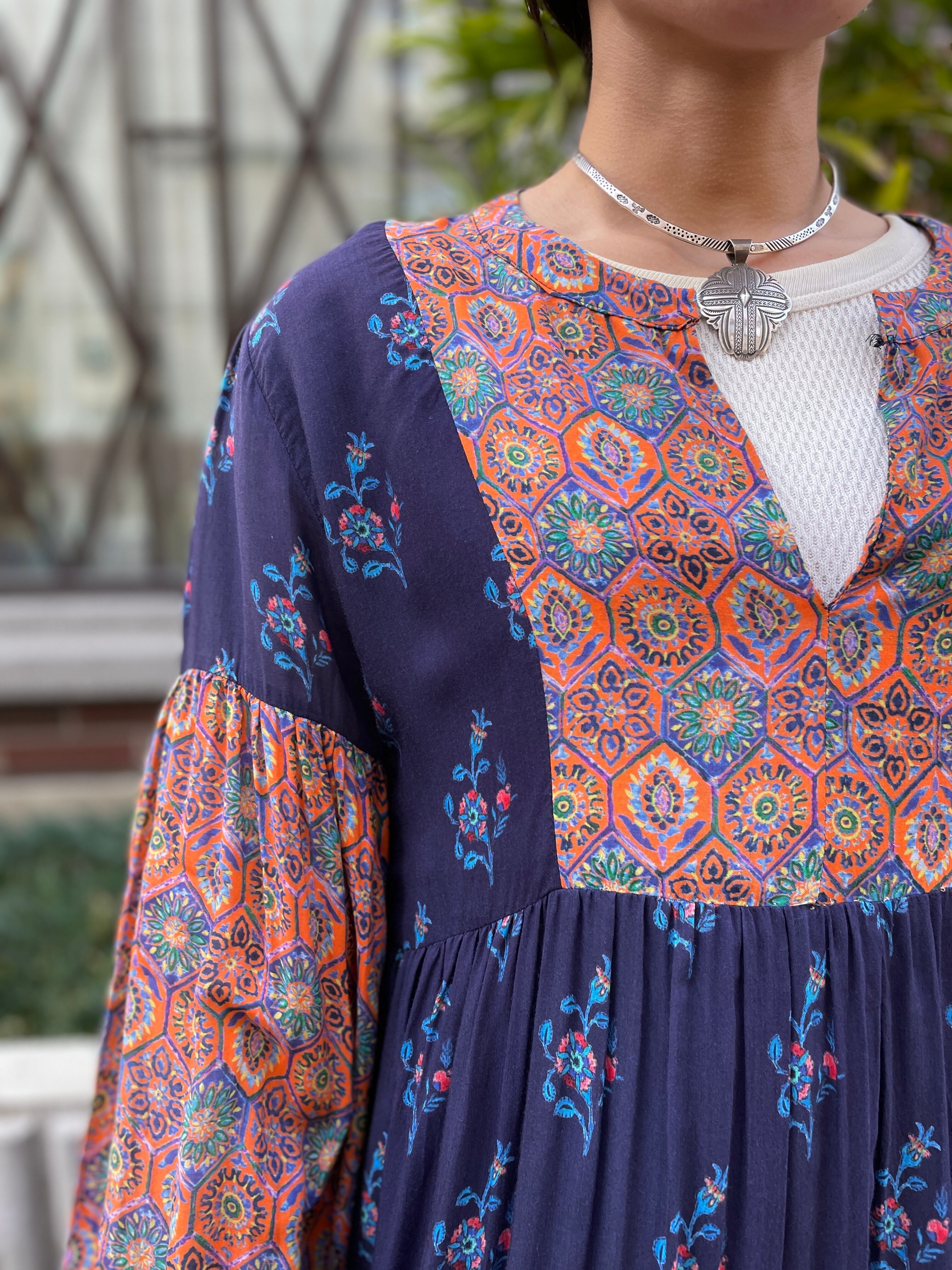 こちらはネイビー×オレンジの配色にオリエンタルデザインが素敵なアイテム。