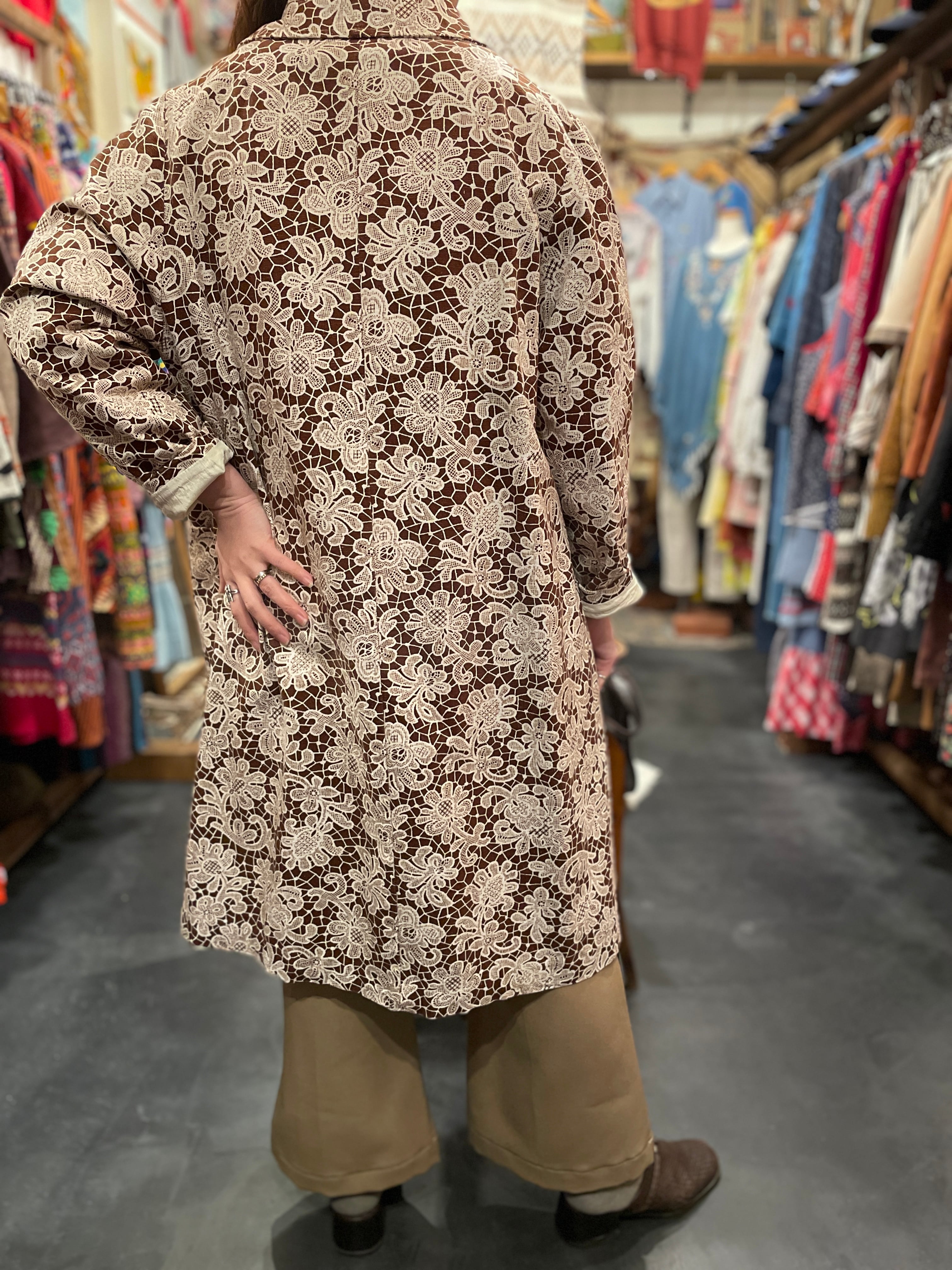 ブラウンボディに珍しいテイストのフラワーデザインが素敵なアイテム。