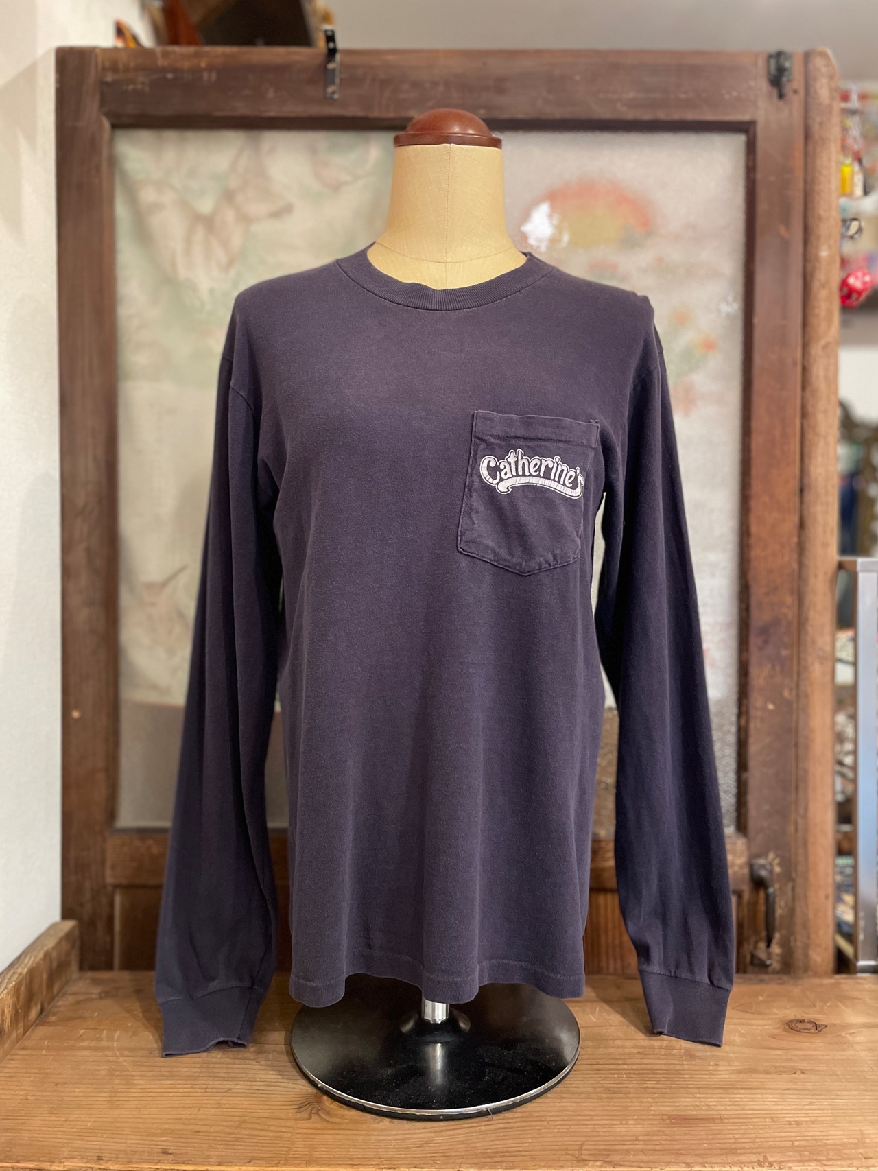 風合いのあるフェードネイビーのボディに、catherine's のプリントが目を惹くアイテム◎◎◎