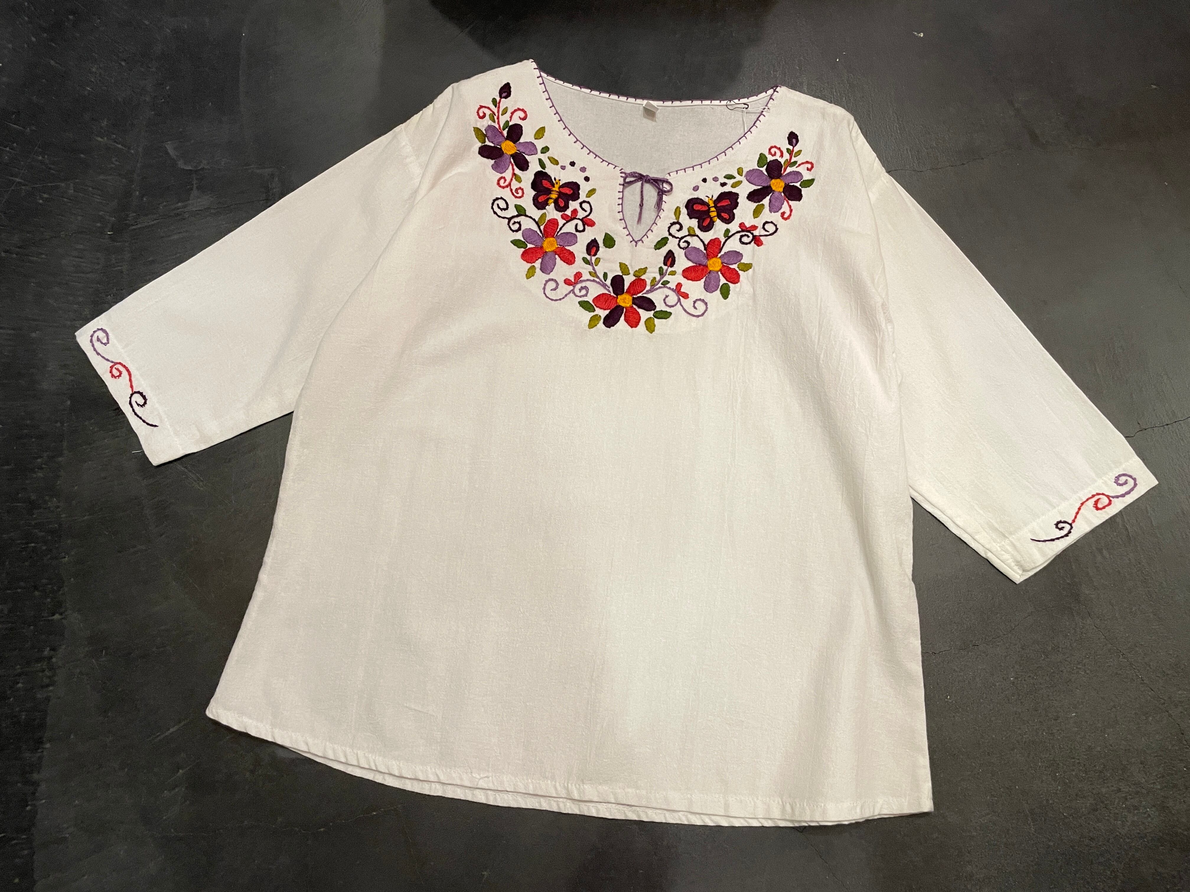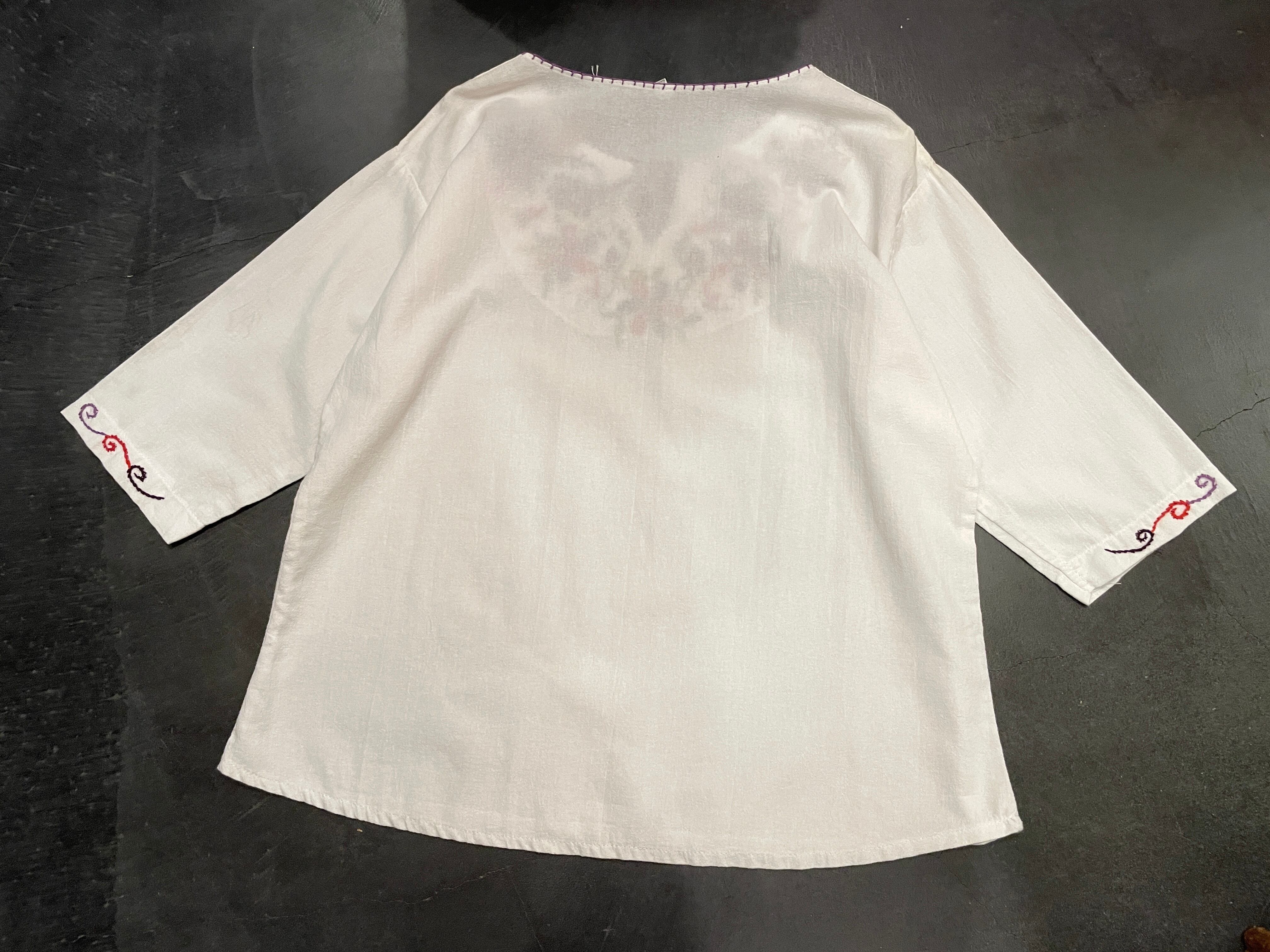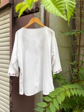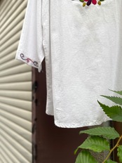 ホワイトボディにぷっくりとした刺繍が施された可愛らしいアイテム。