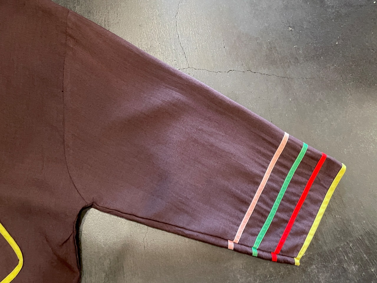ブラウンボディにカラフルなネックラインや胸ポケットなどデザイン性が高いスペシャルピース。