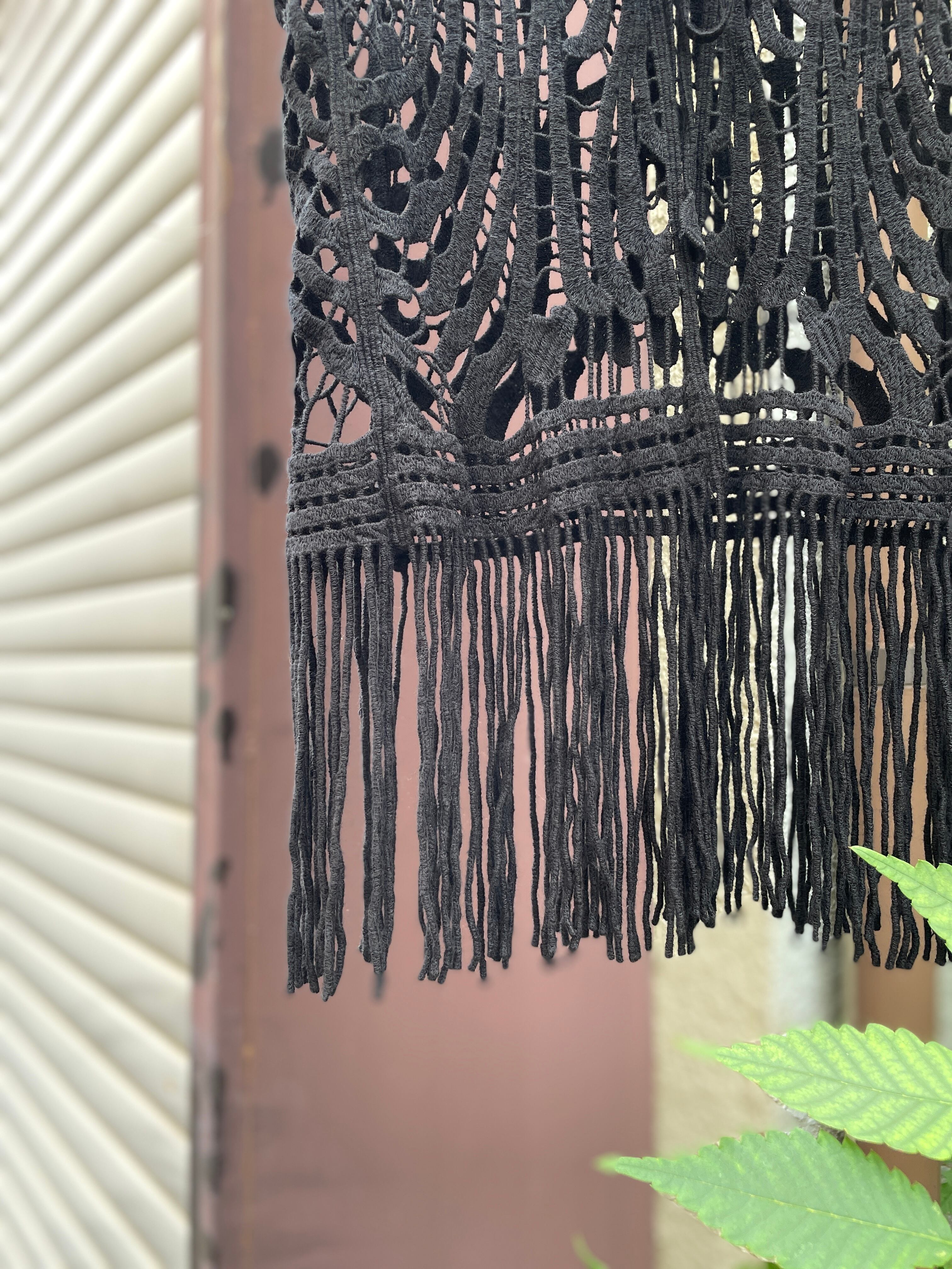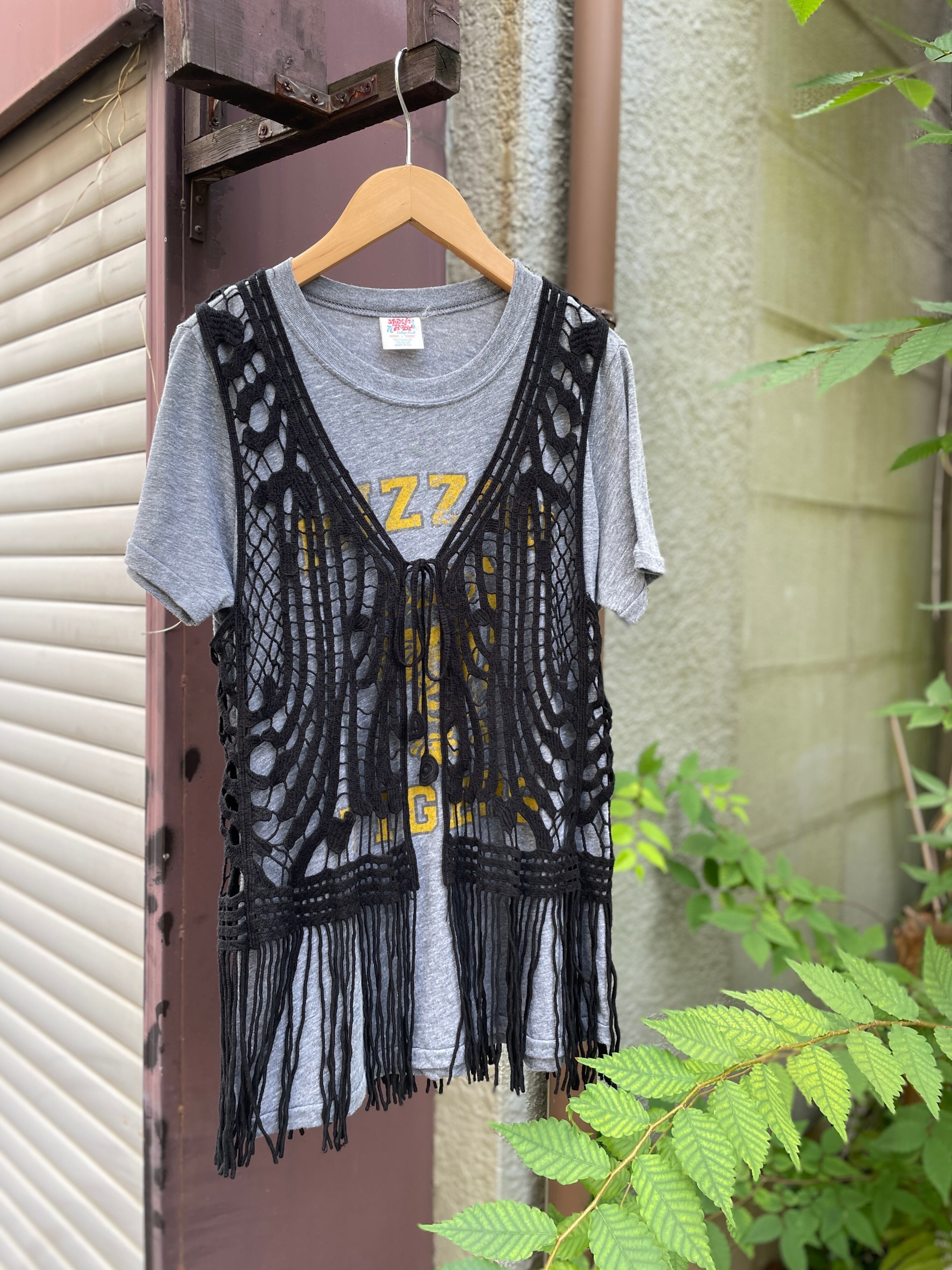 不思議なニュアンスモチーフに裾のフリンジが可愛らしいアイテム。