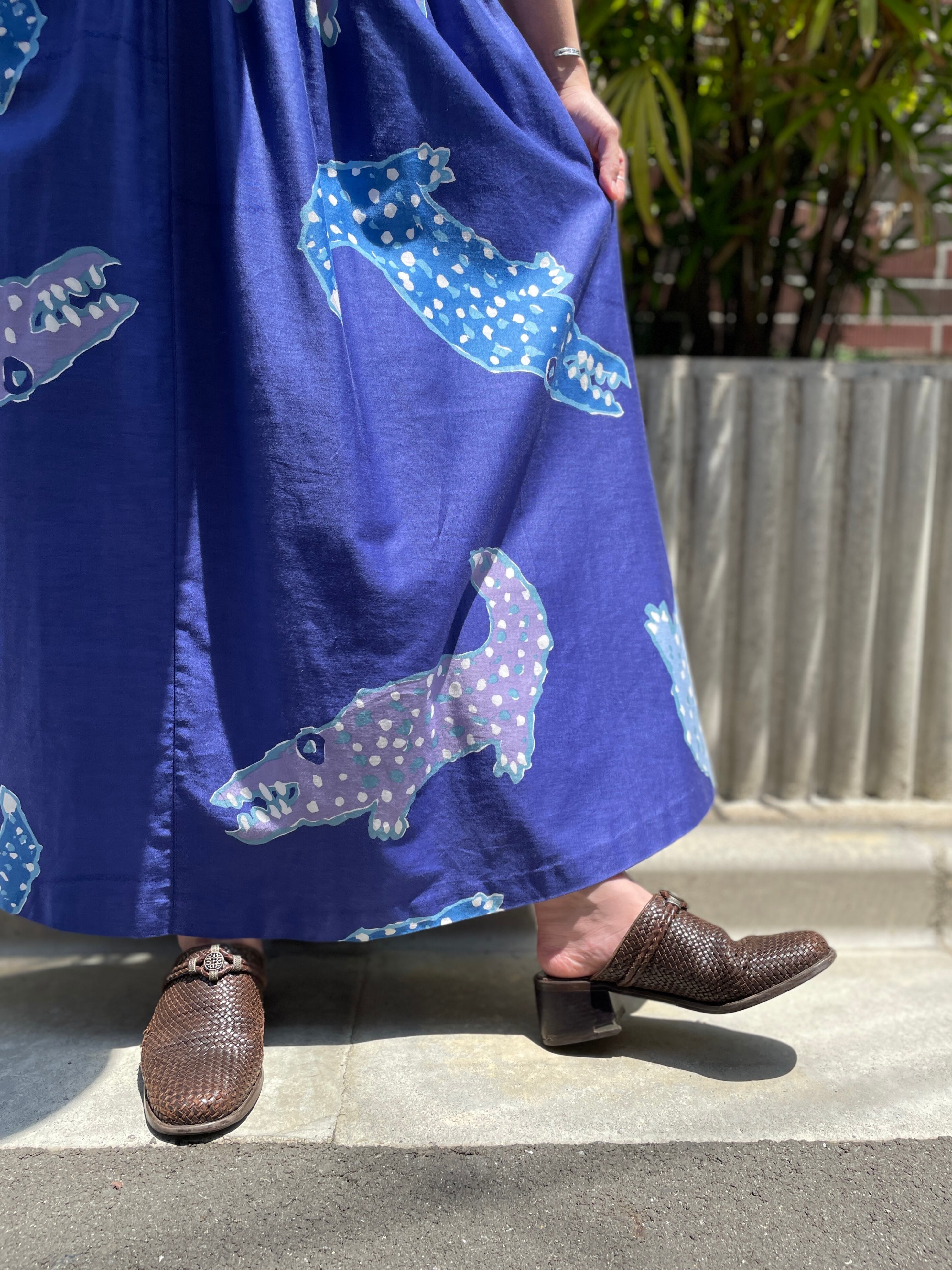 こちらはブルーボディに落書きタッチのアリゲータープリントが可愛らしいアイテム。