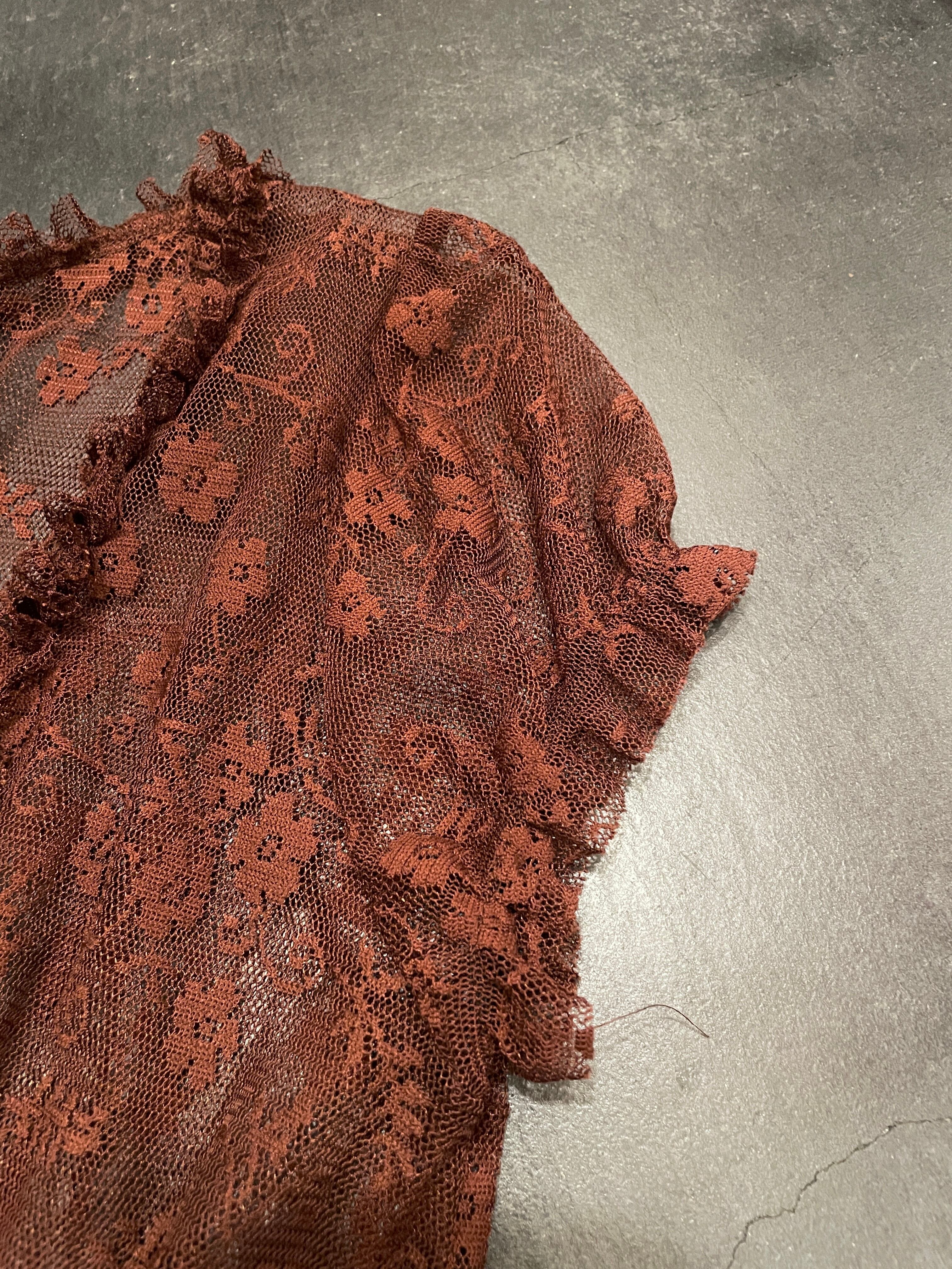ブラウンカラーなので甘くなりすぎず、Tシャツやワンピース等の上から重ねて透け感を楽しめます♪