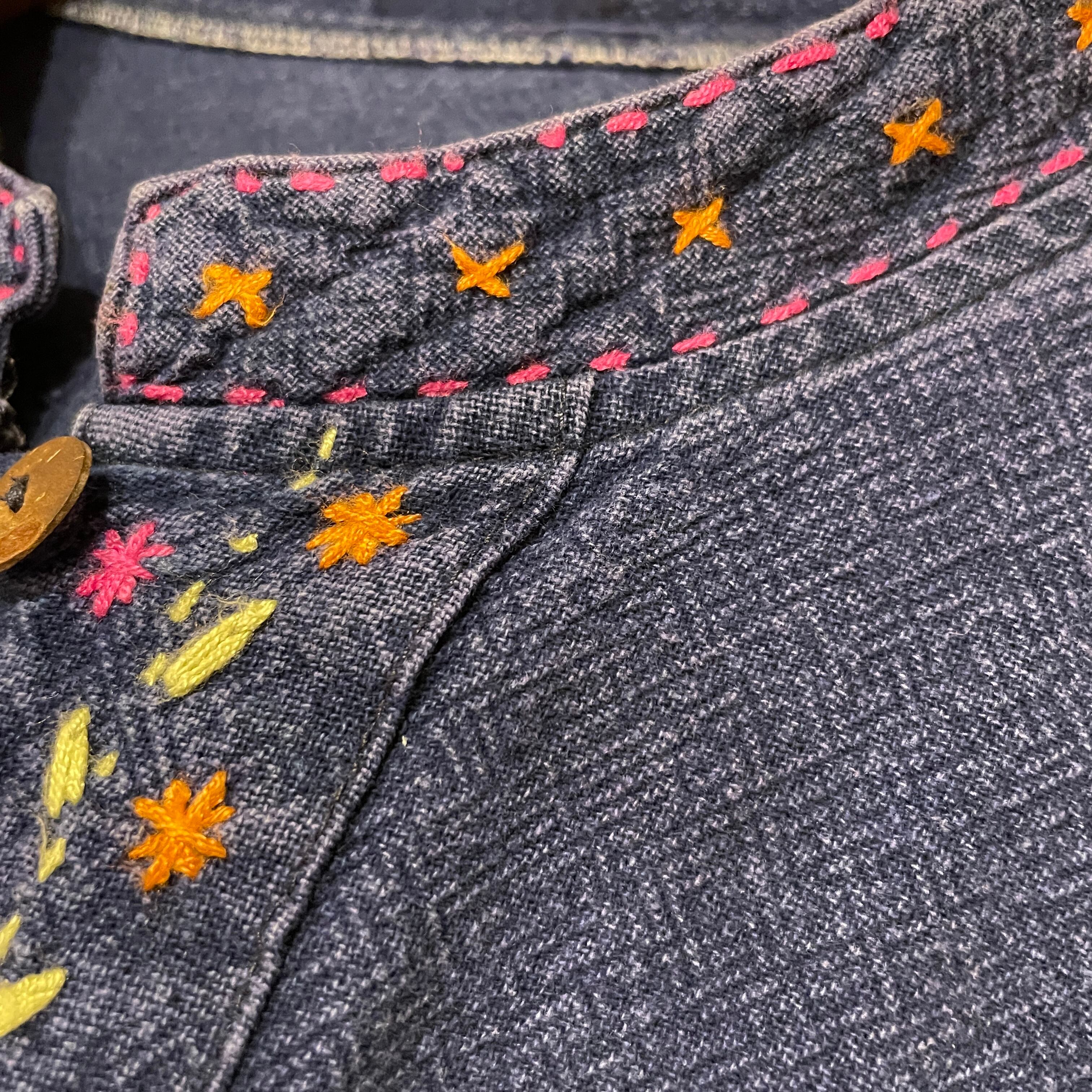 刺繍はひと針ひと針、手の込んだデザインが施されビンテージならではな雰囲気で素敵です !!!
