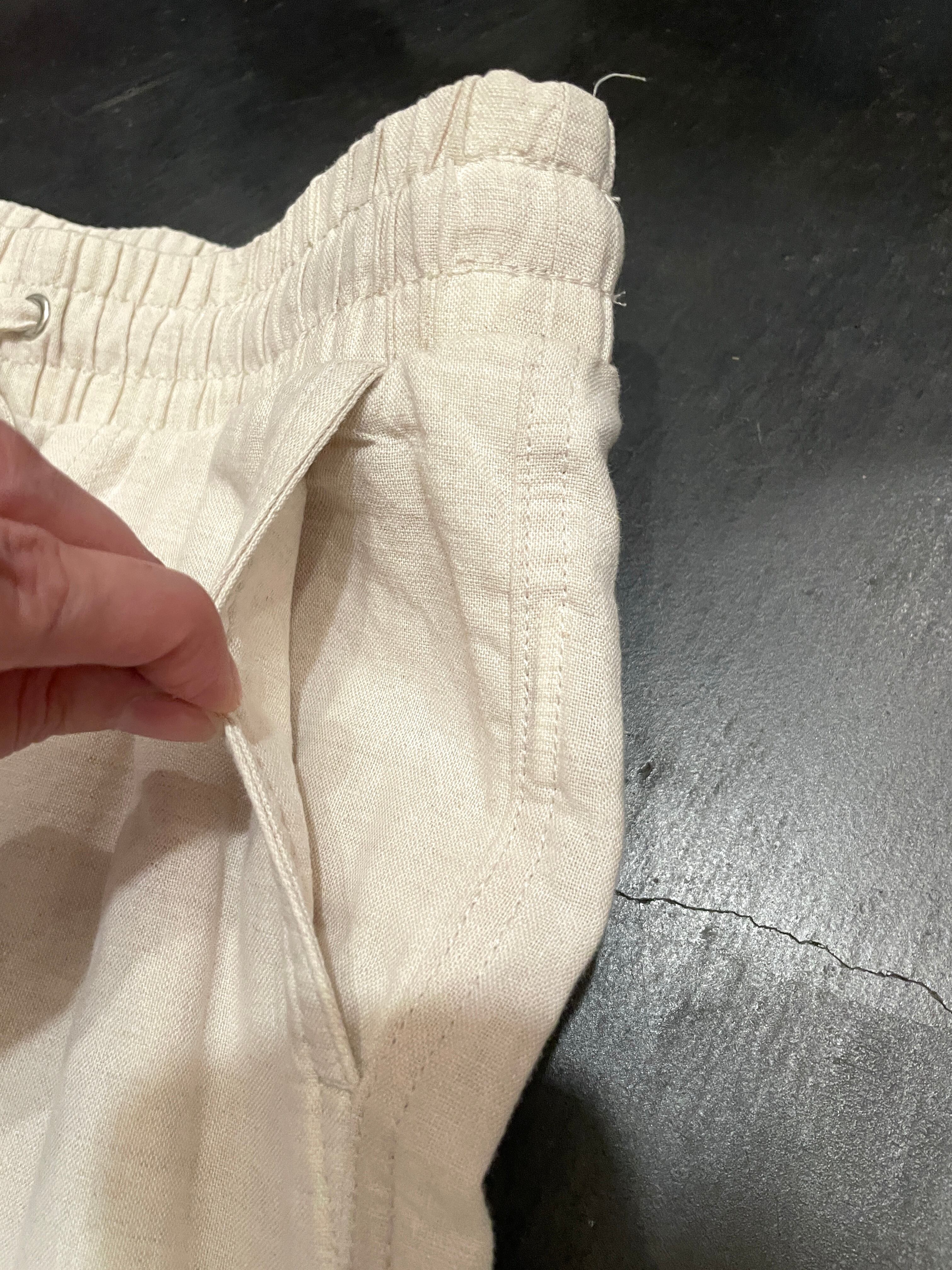 ウエストにはゴムが入り、ポケットのステッチも可愛らしくタックインしてもgood◎◎◎