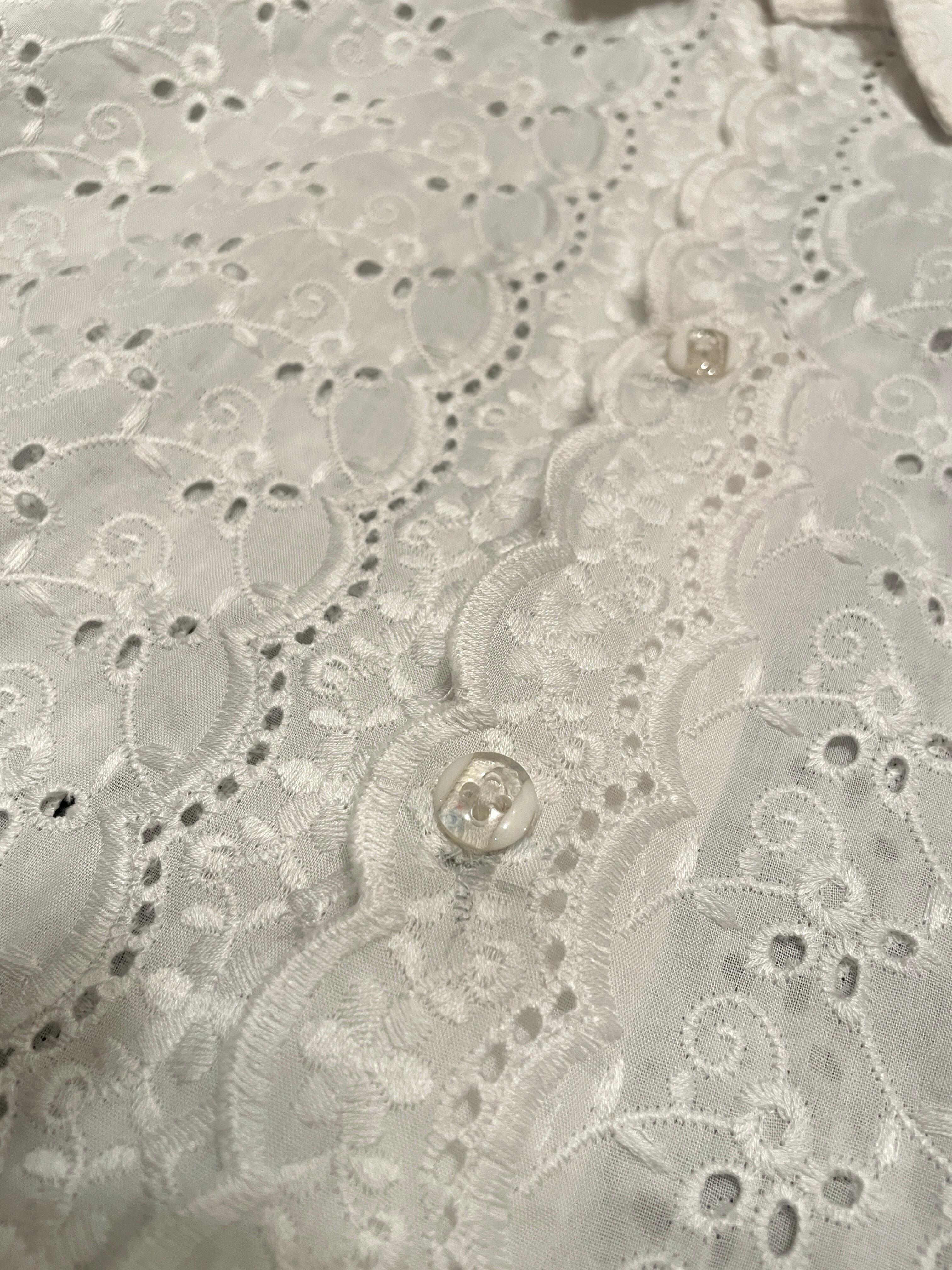 フロントや袖はスカラップデザインになっており、サイドにはスリット入りで、上品なボタン使いなどディテールもgood◎◎◎