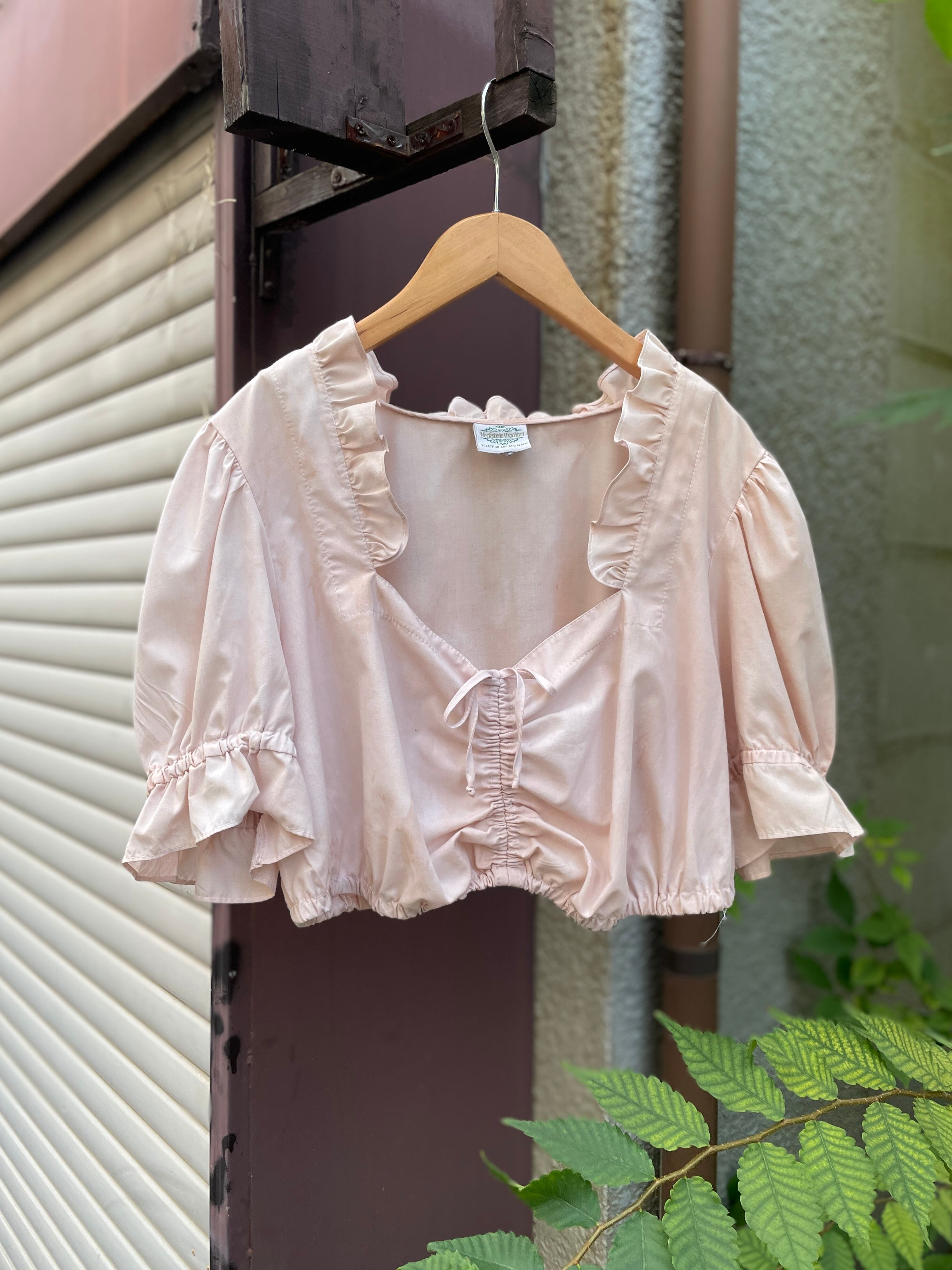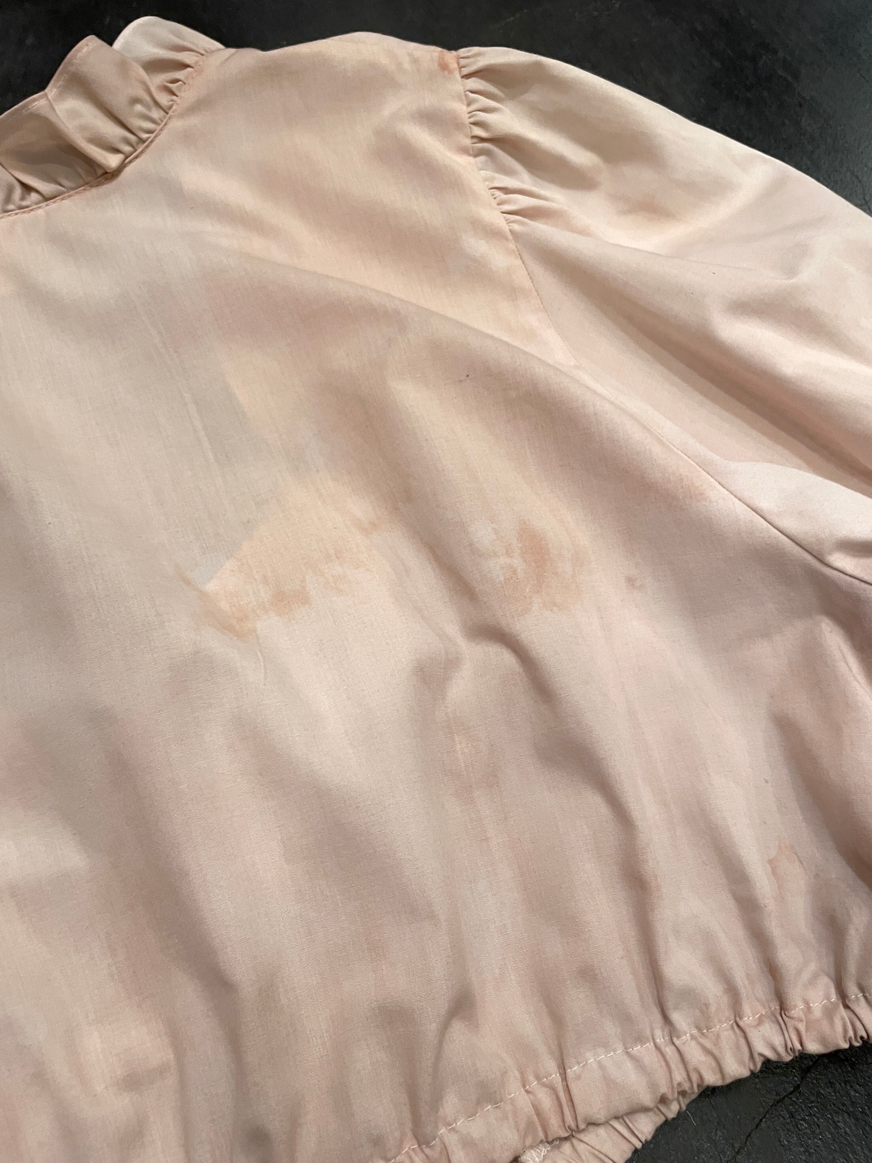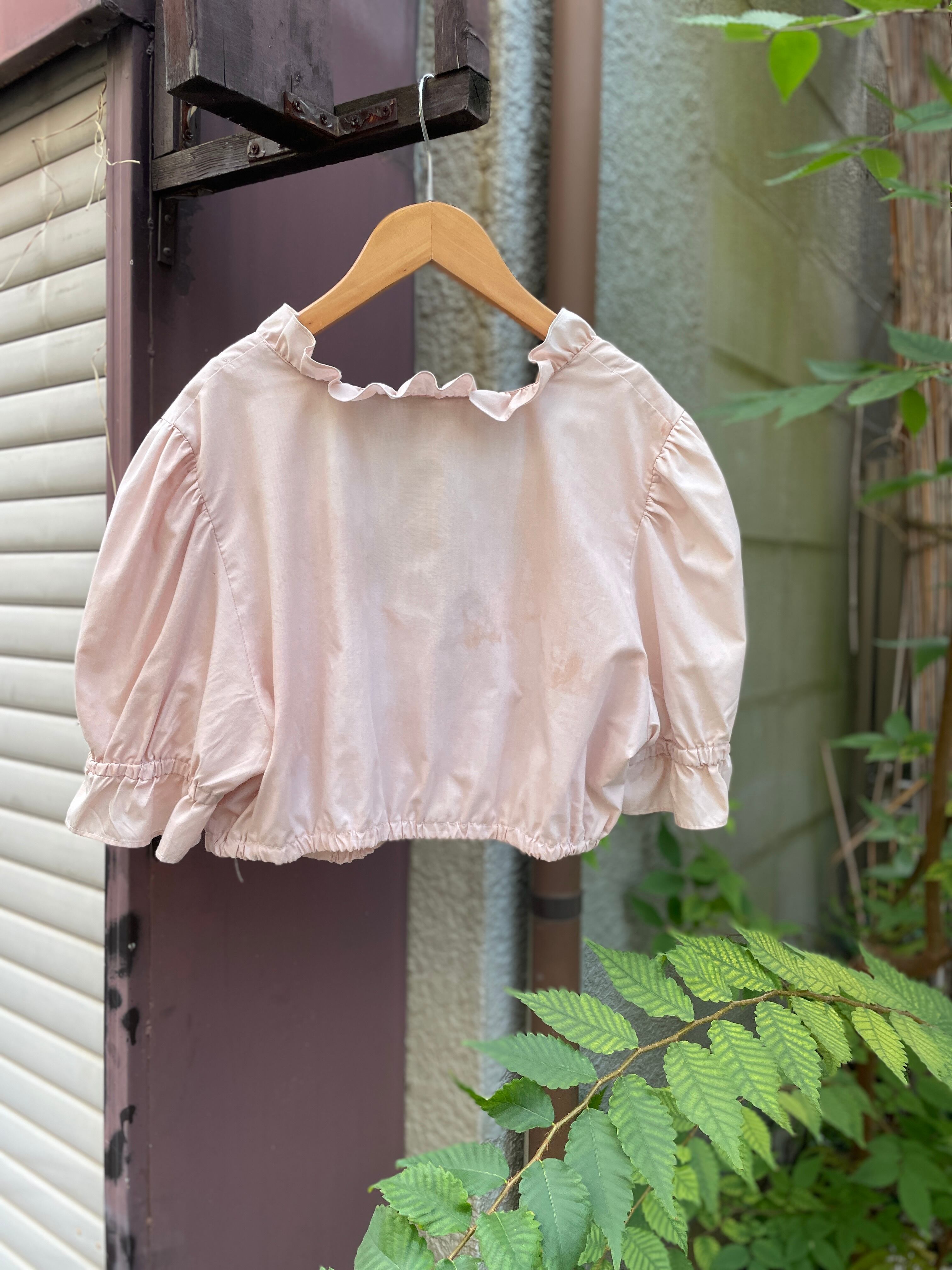 チロルブラウスに淡いピンクの後染めが施されたビンテージならではなアイテム。