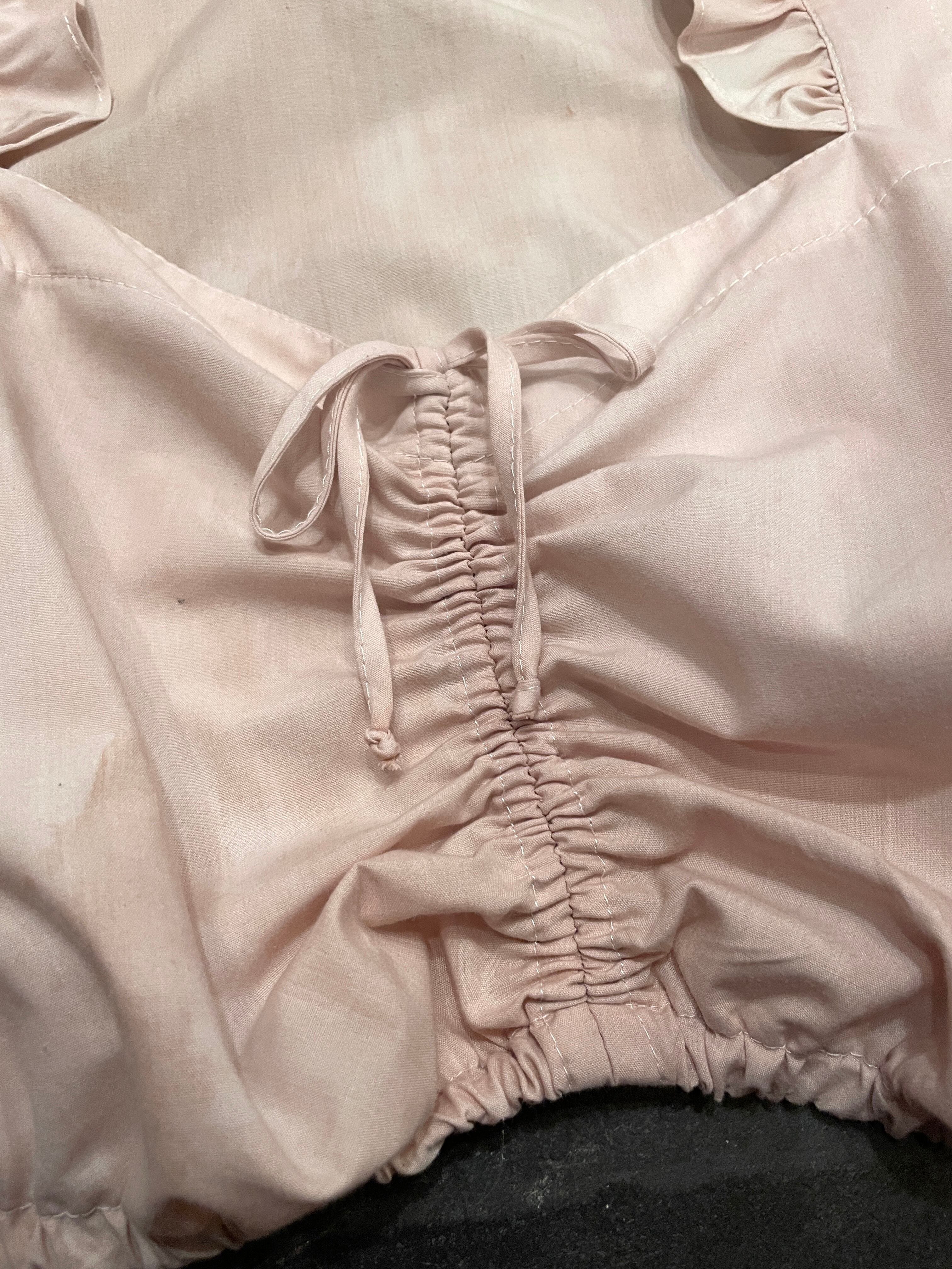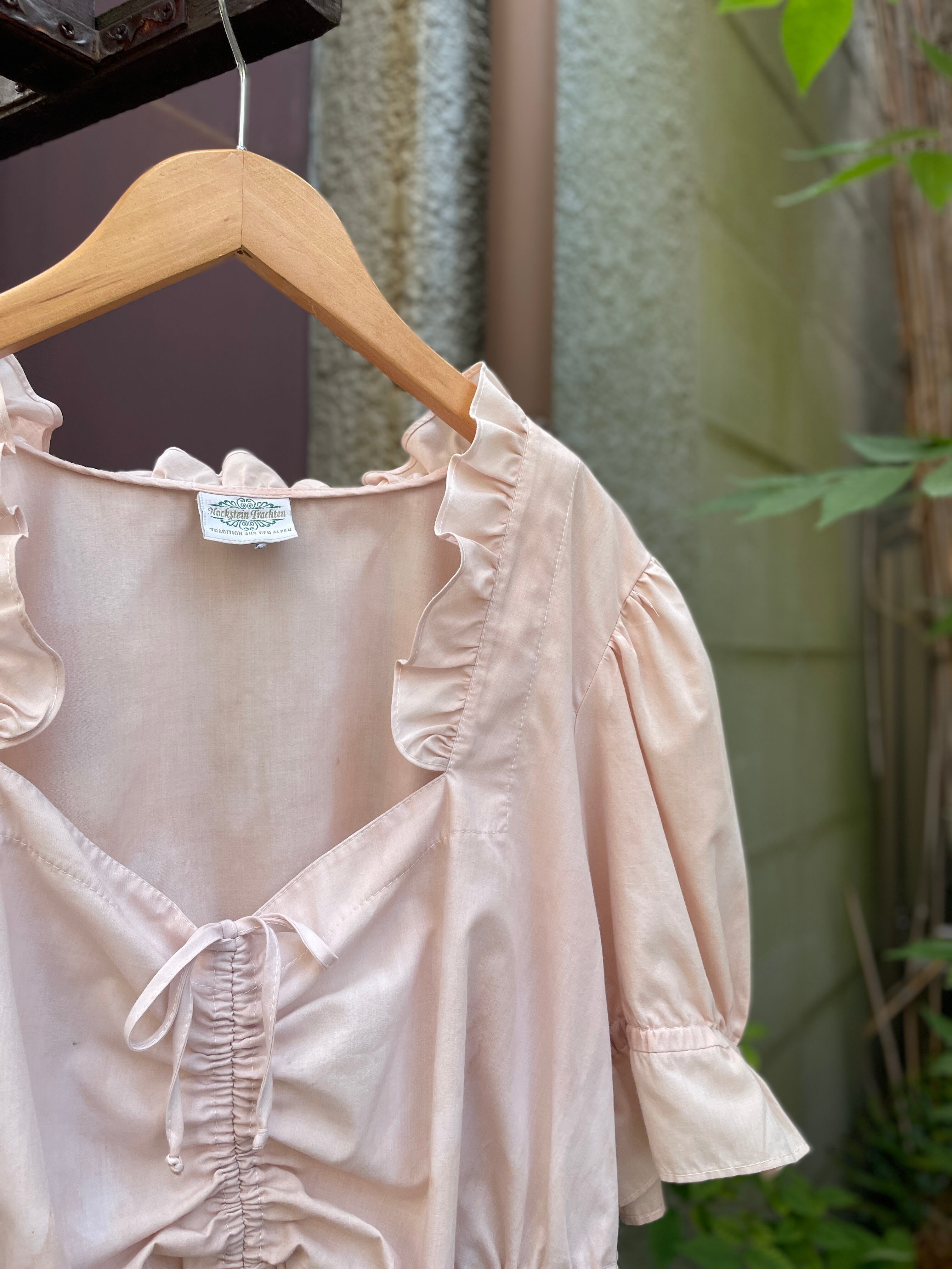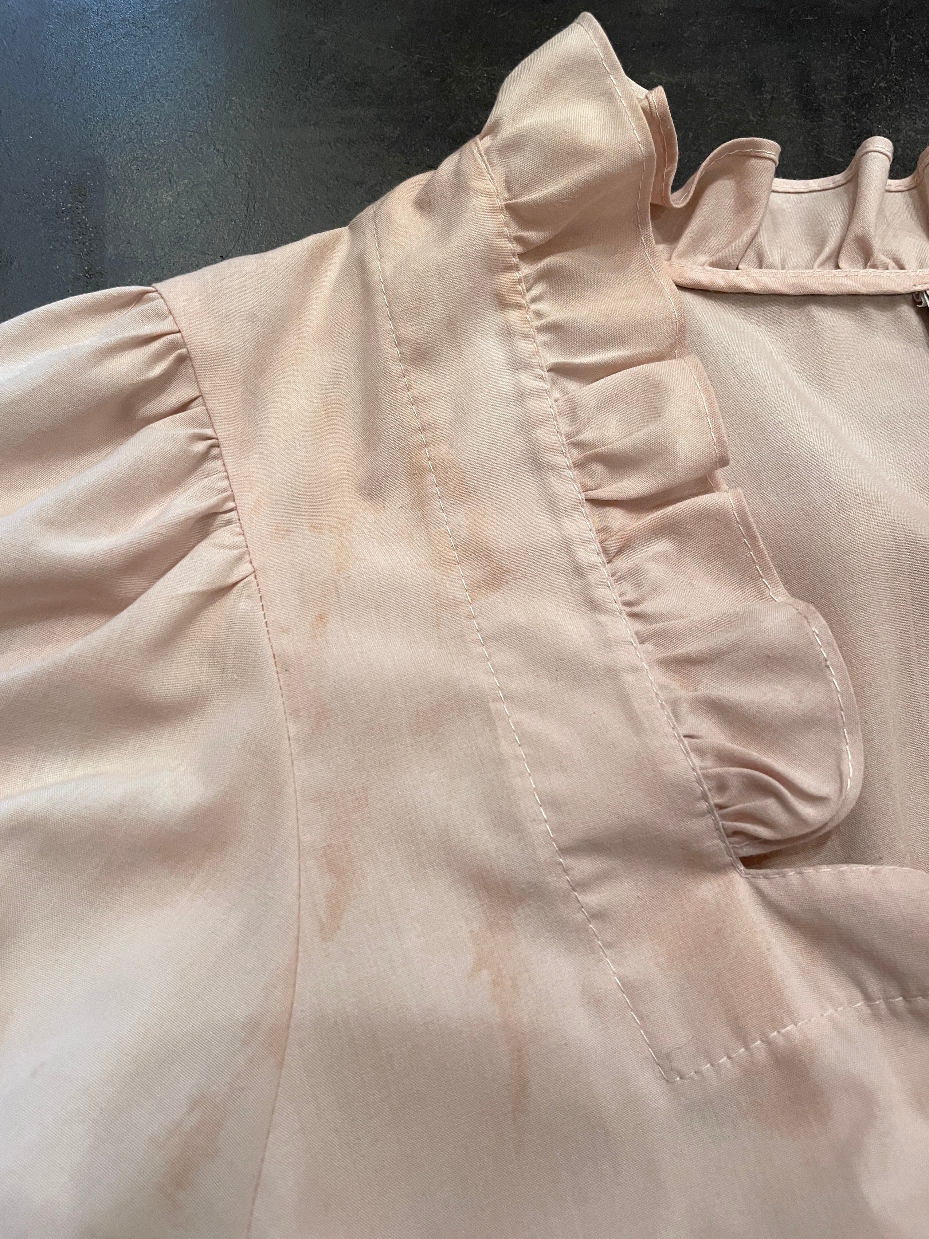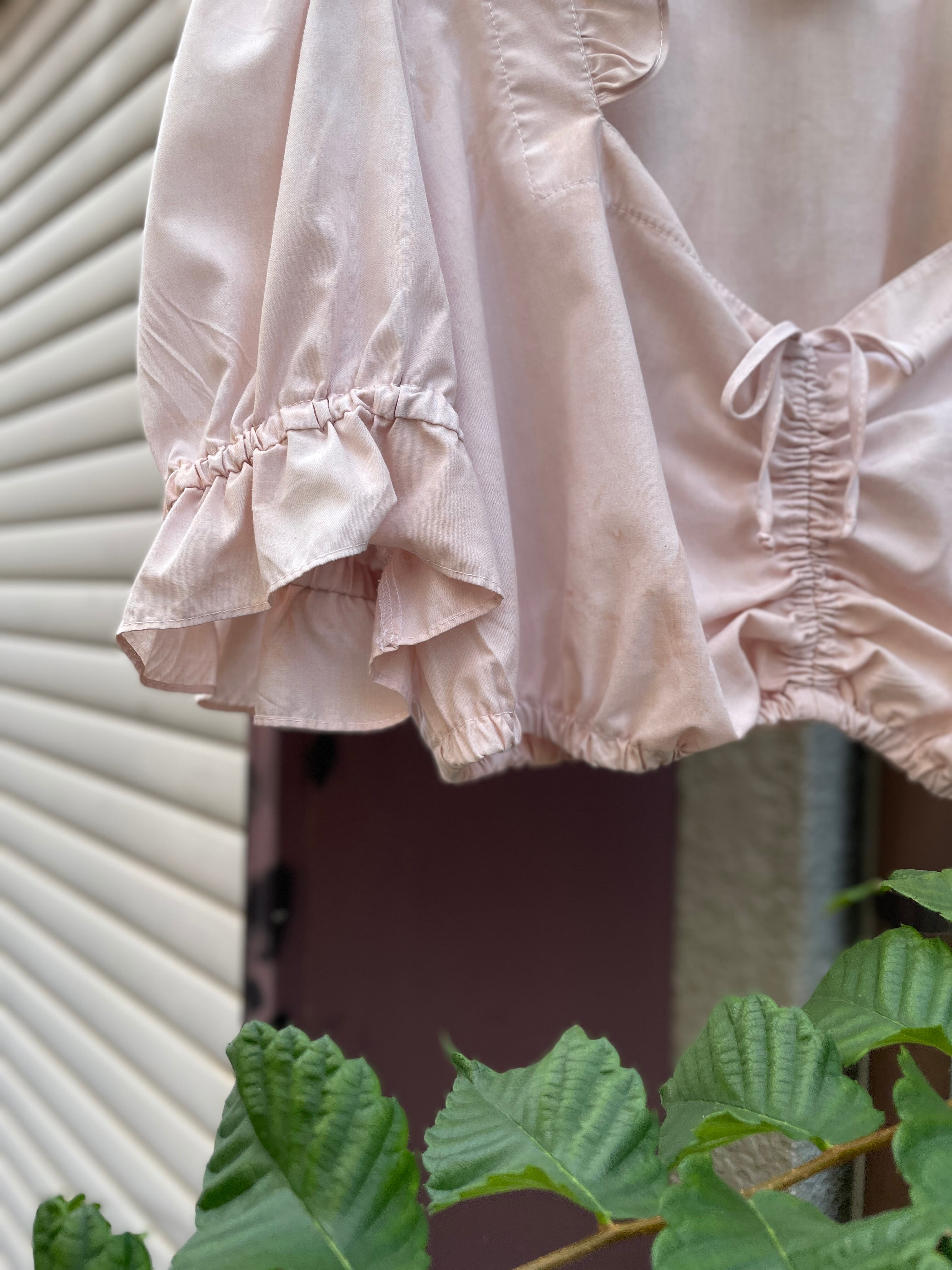 チロルブラウスに淡いピンクの後染めが施されたビンテージならではなアイテム。