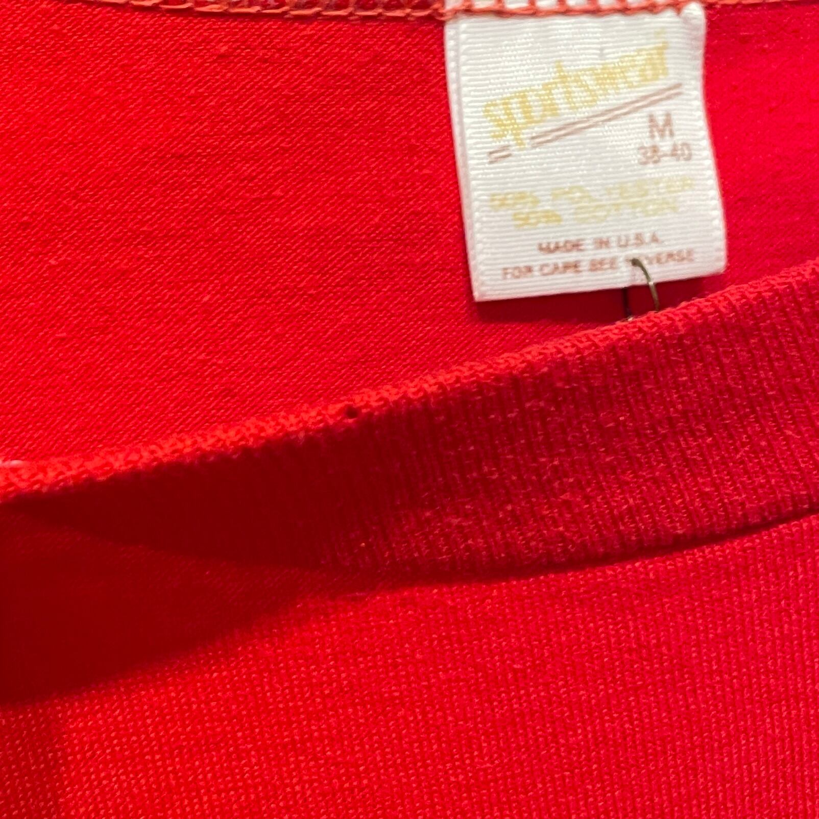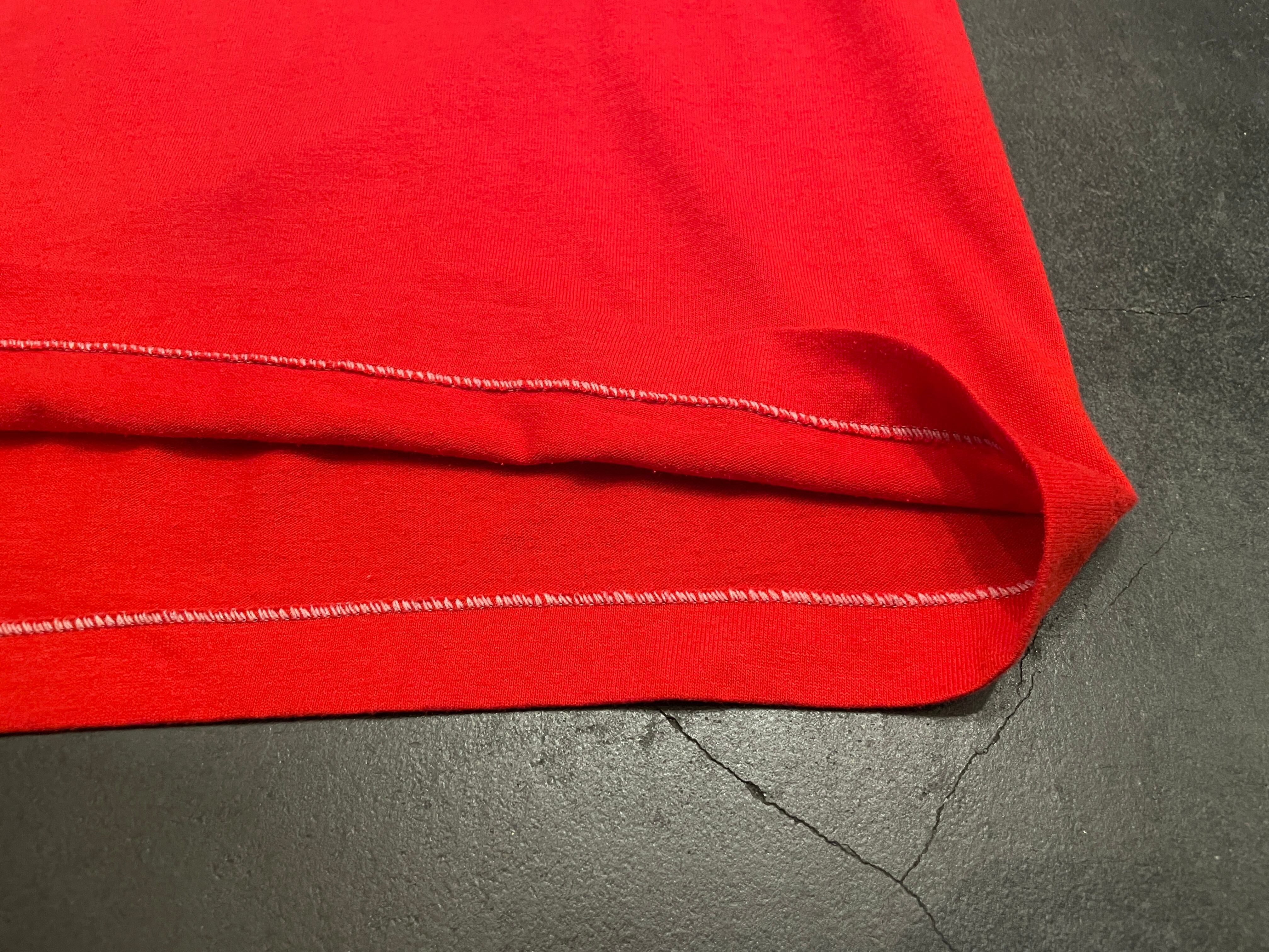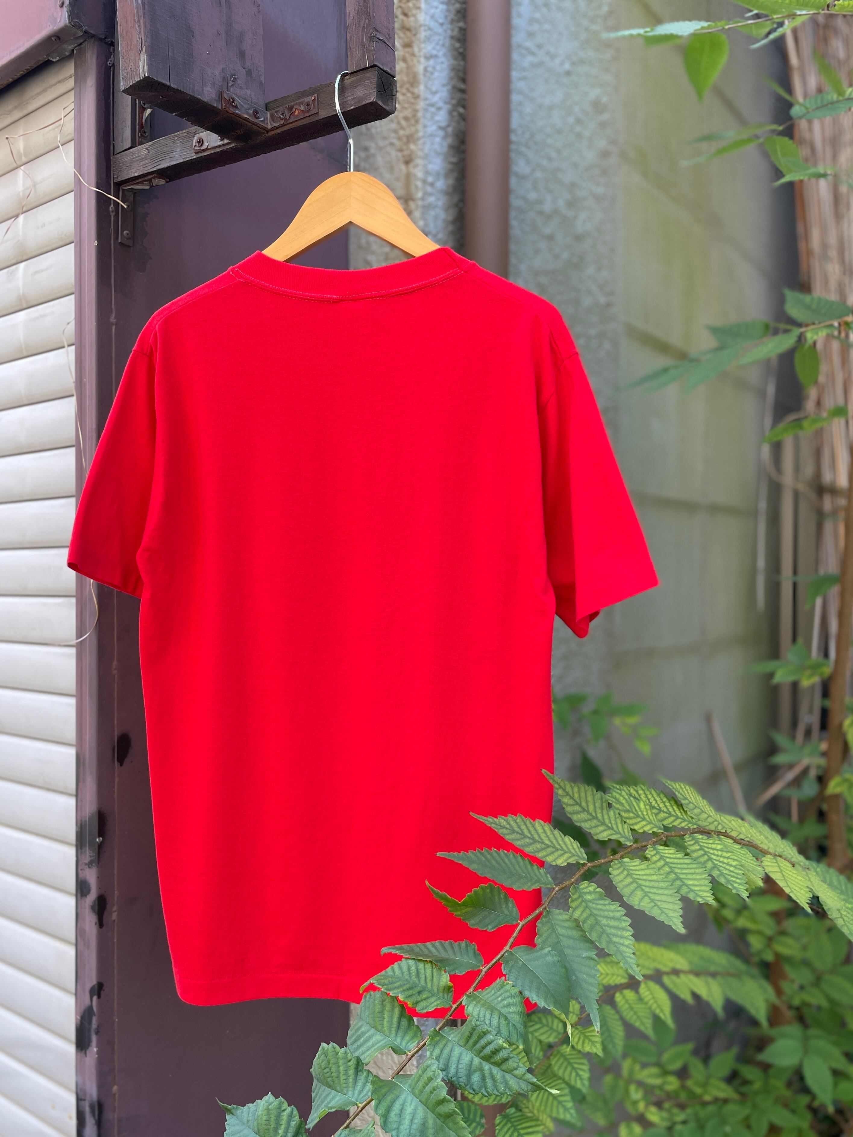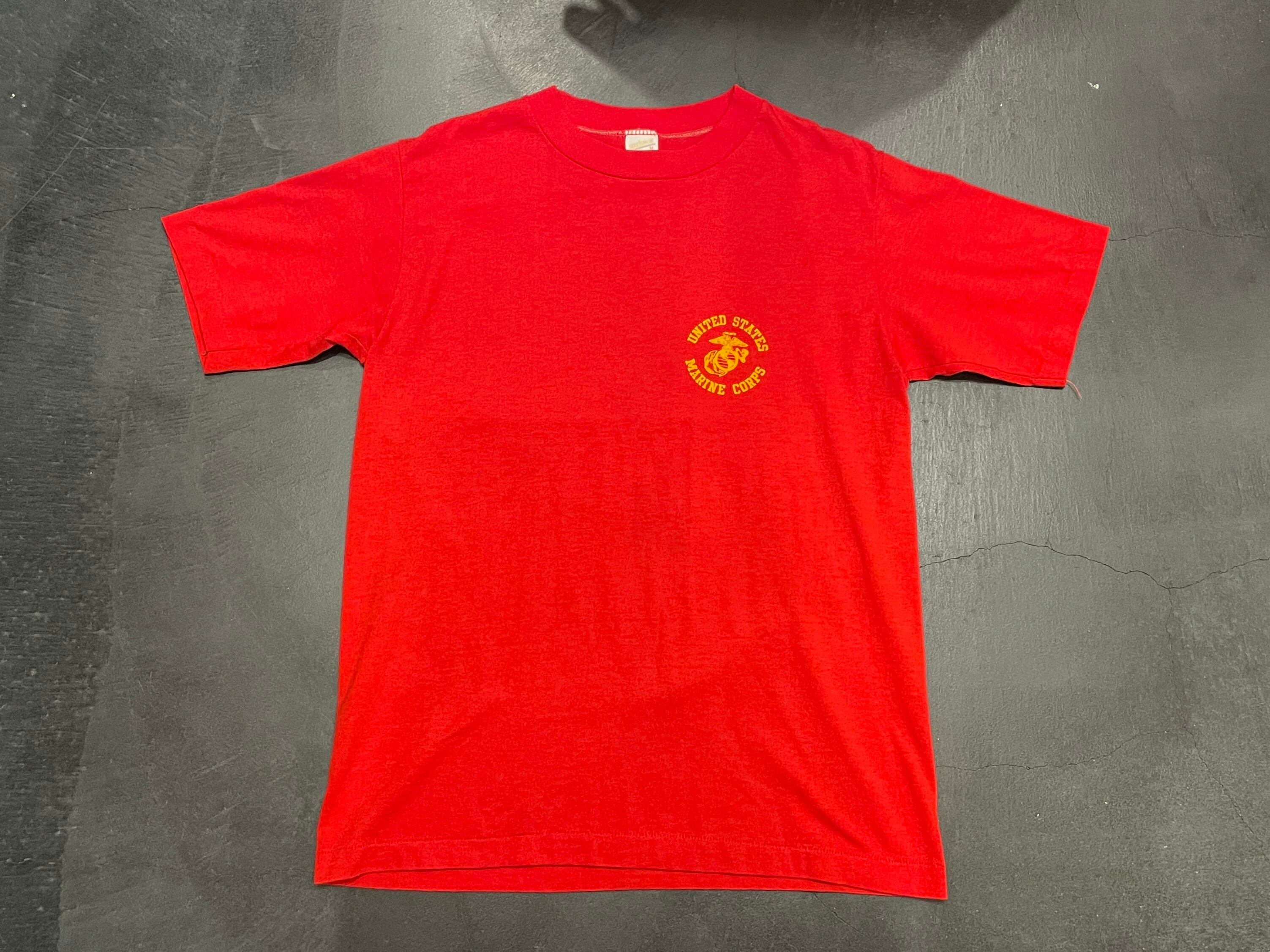 レッドボディに胸元にUSMCのワンポイントプリントが施されたアイテム。