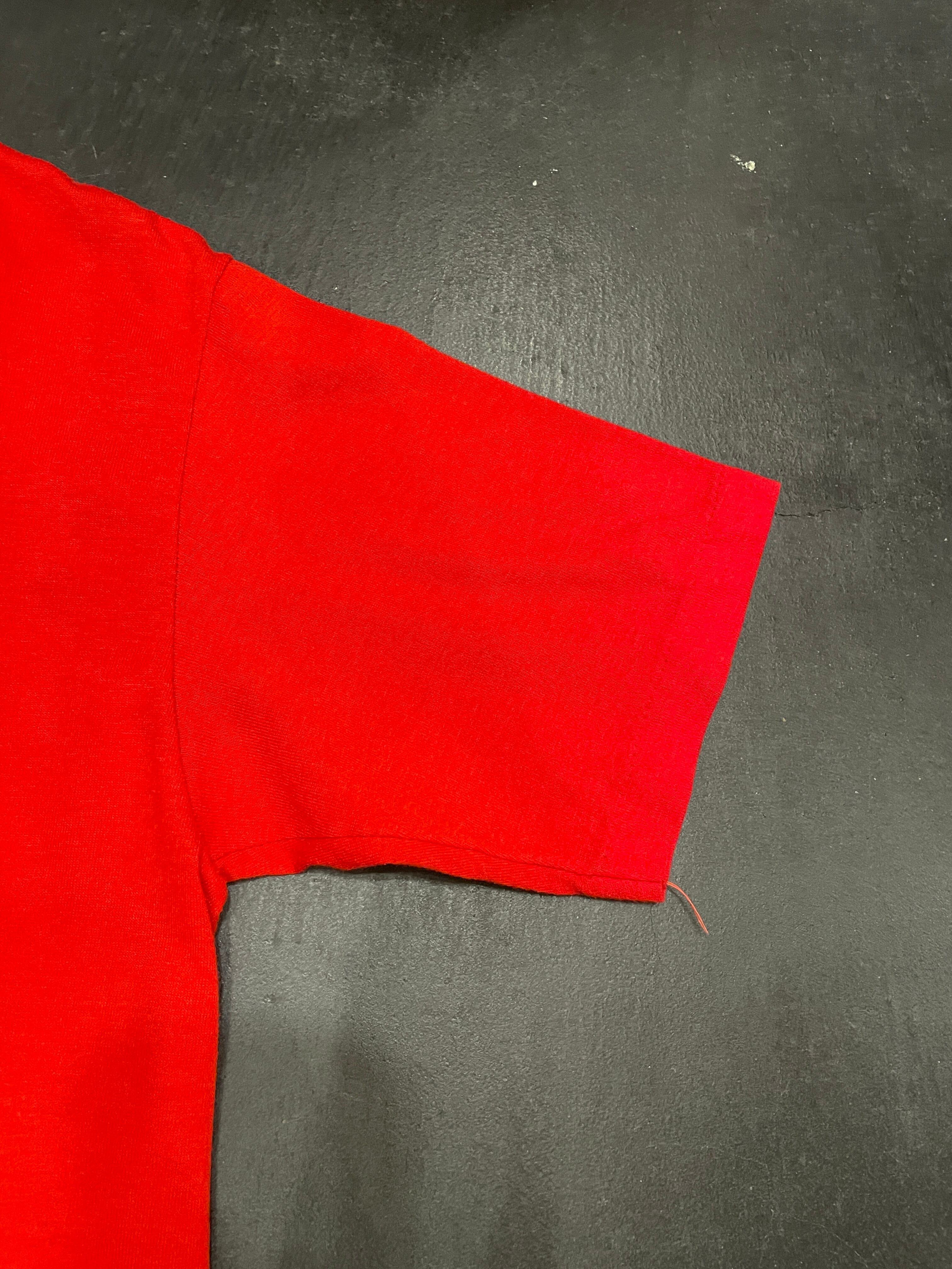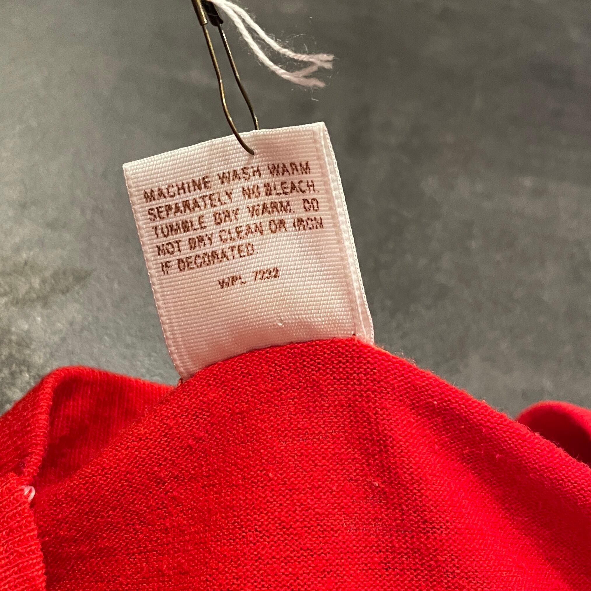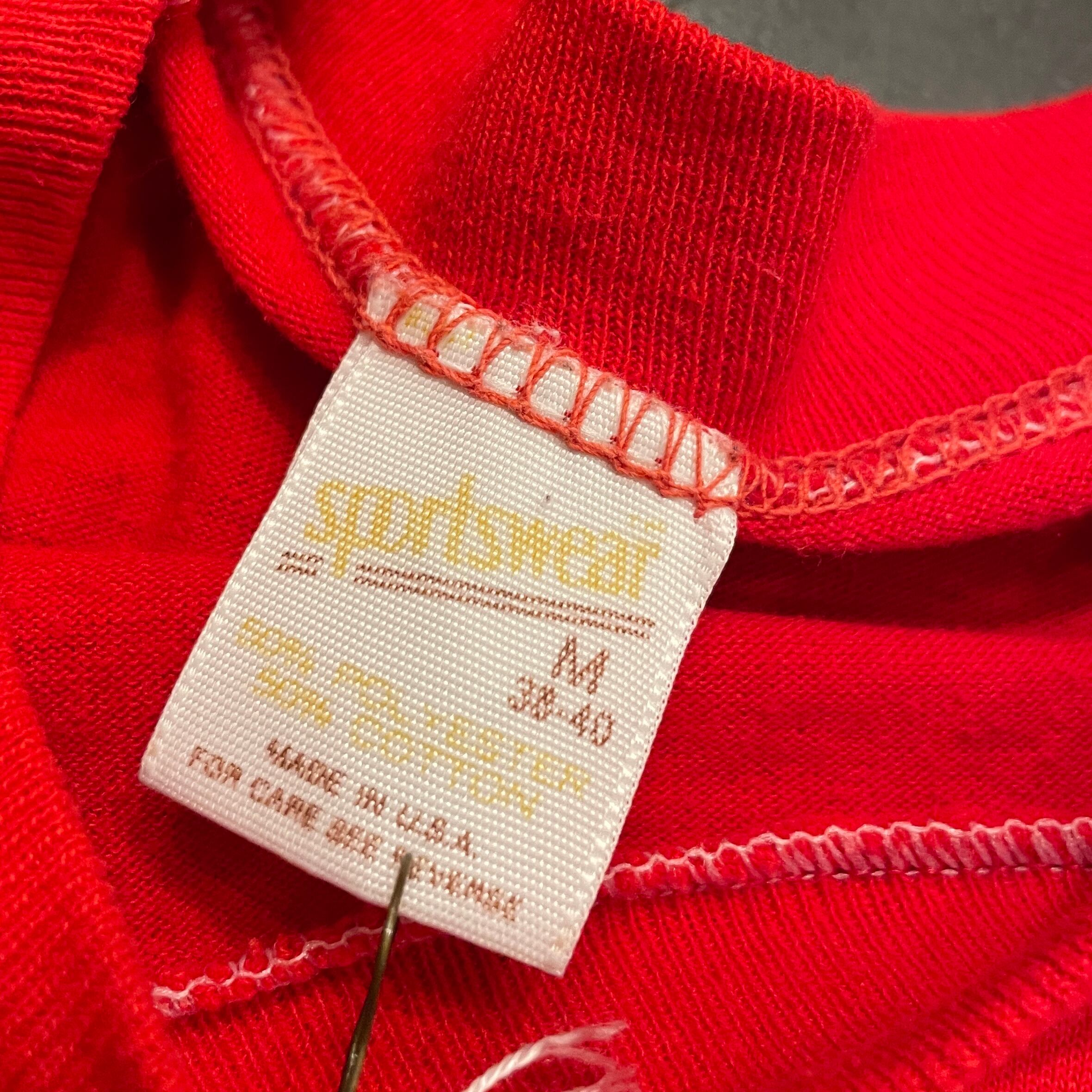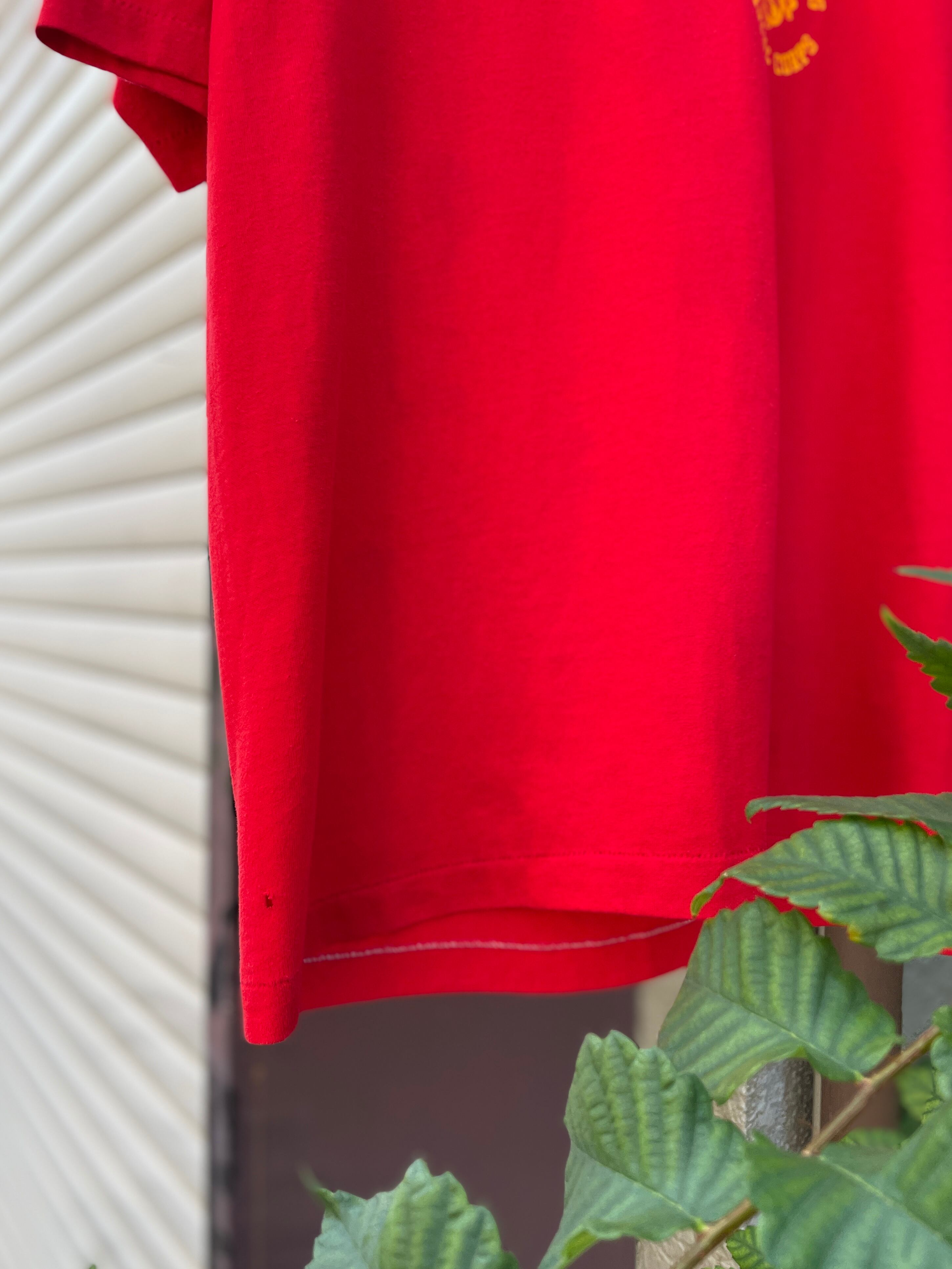 レッドボディに胸元にUSMCのワンポイントプリントが施されたアイテム。