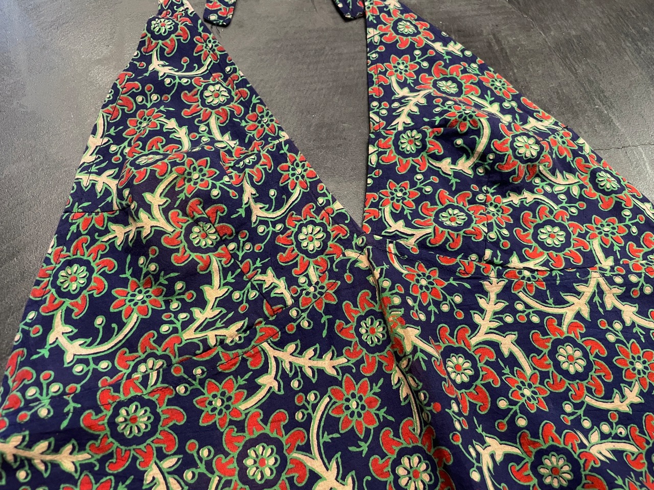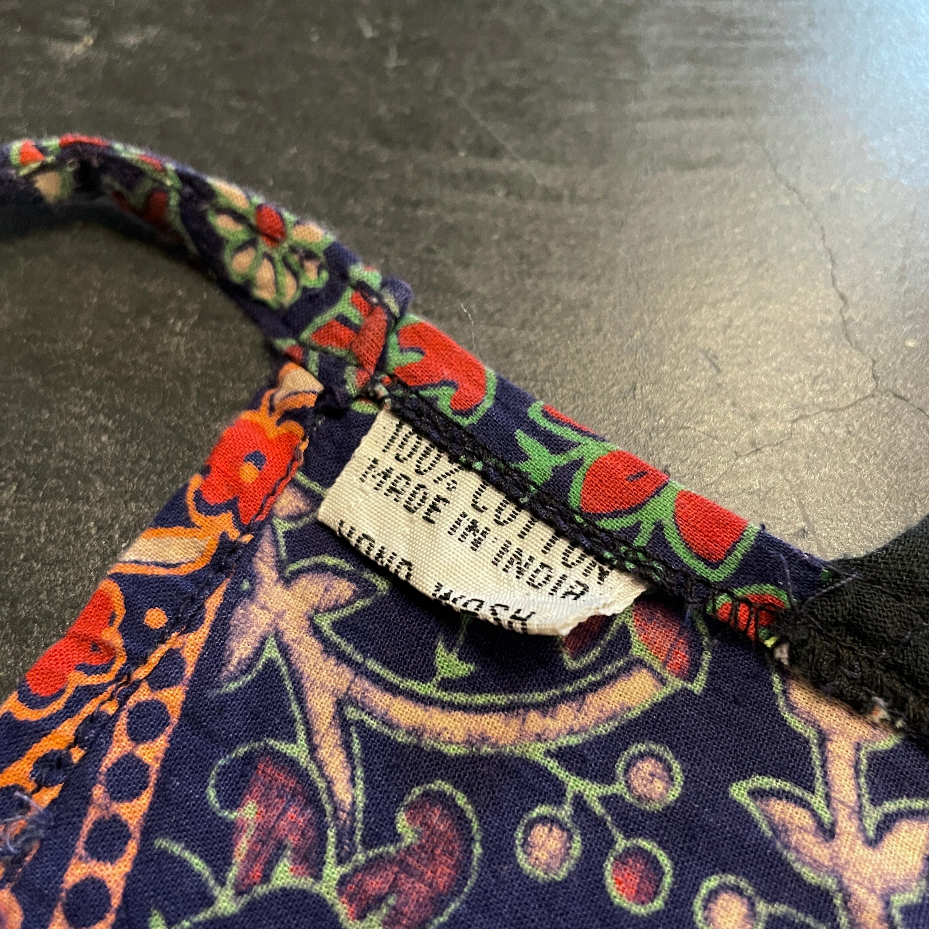 ネイビーボディにインドらしい花柄のプリントが素敵なアイテム。