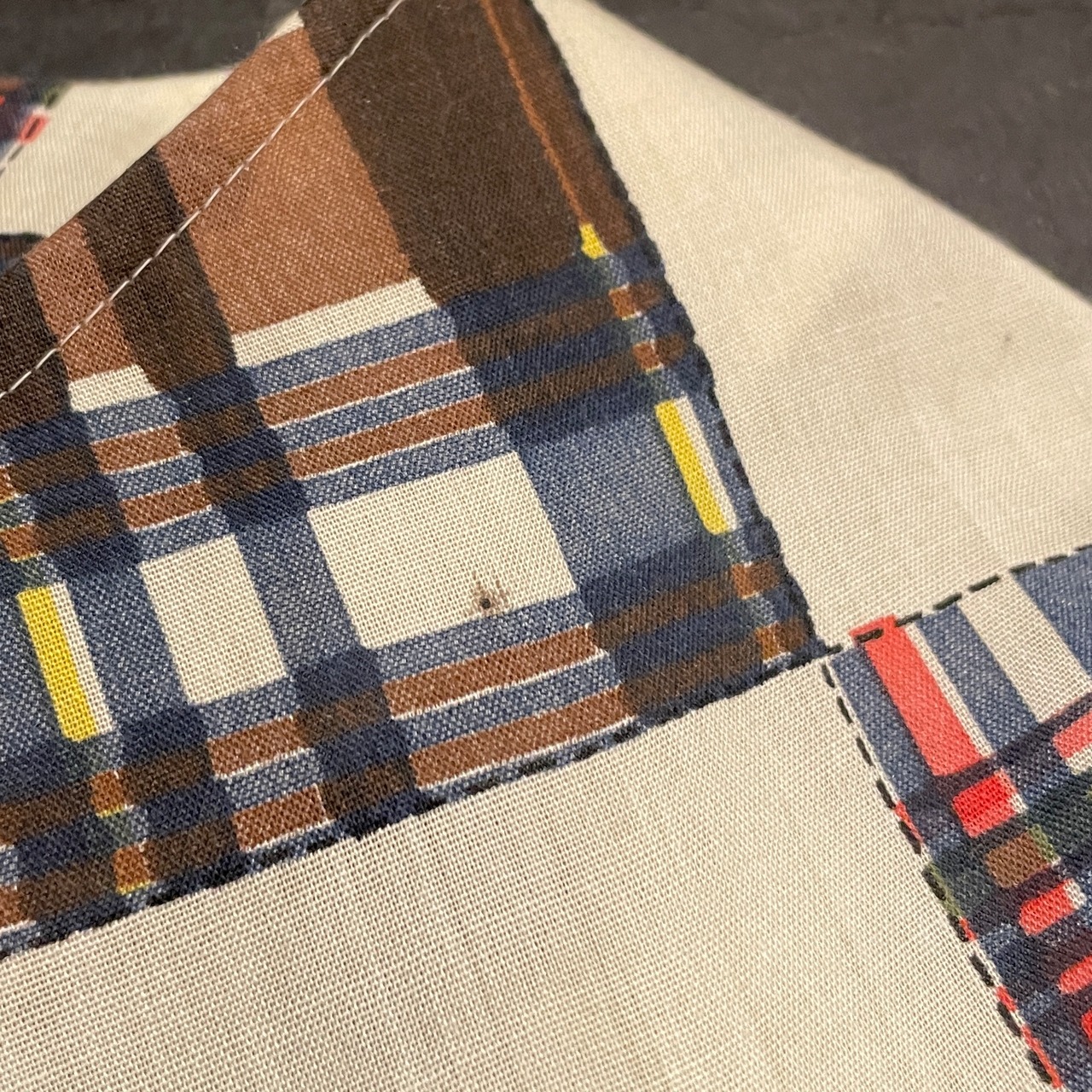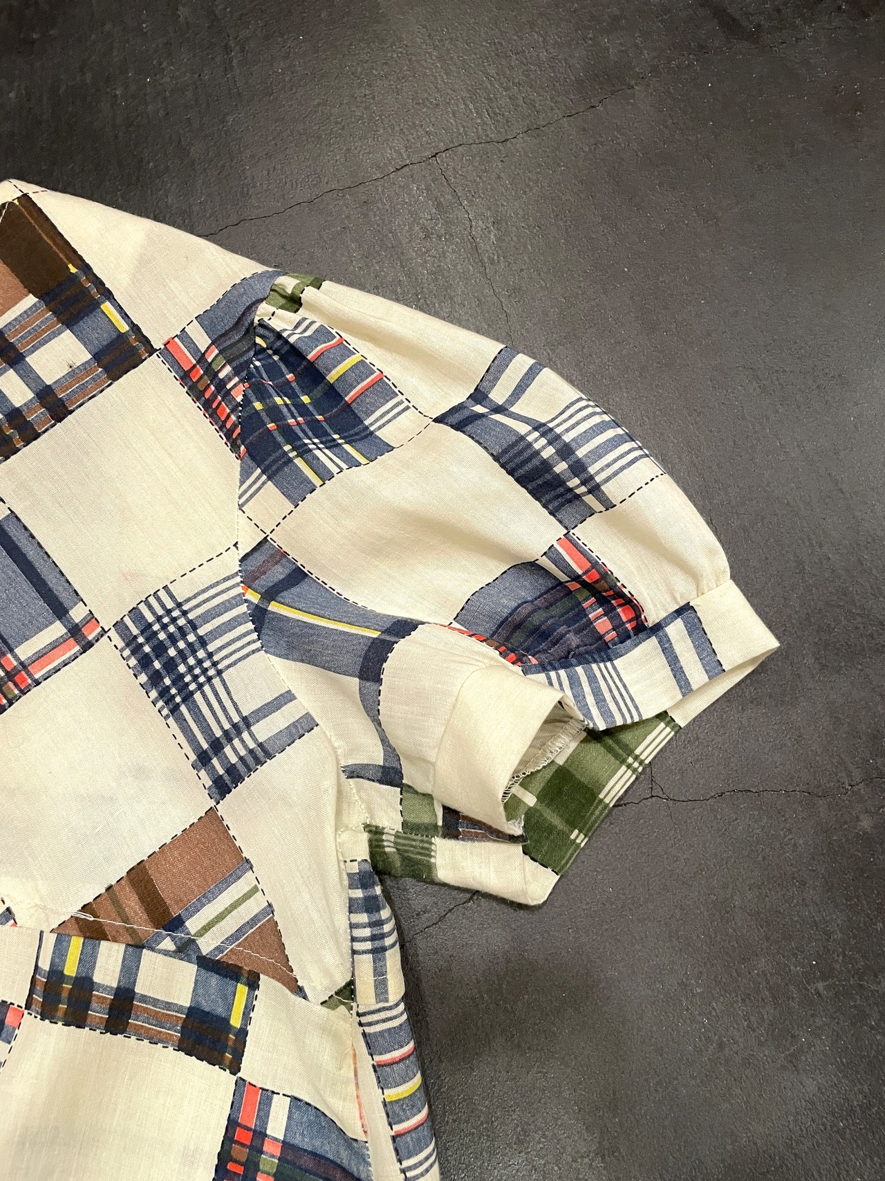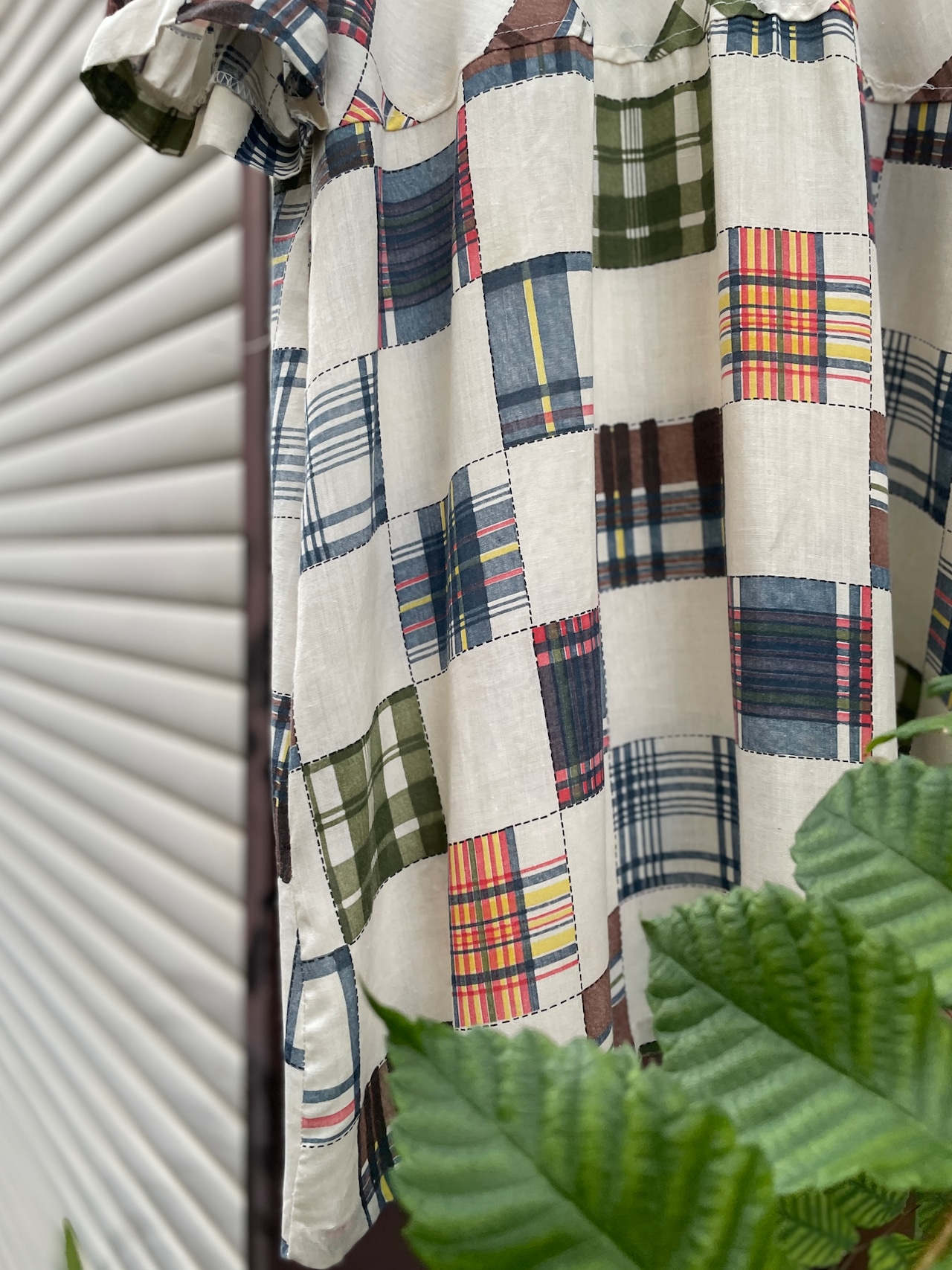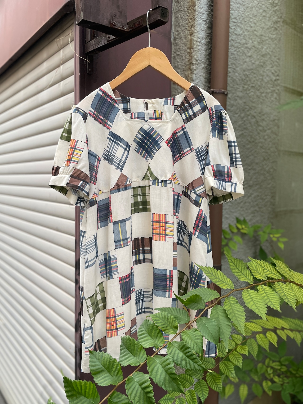 マルチチェックとホワイトの可愛らしいパッチワークパターンが素敵なアイテム。