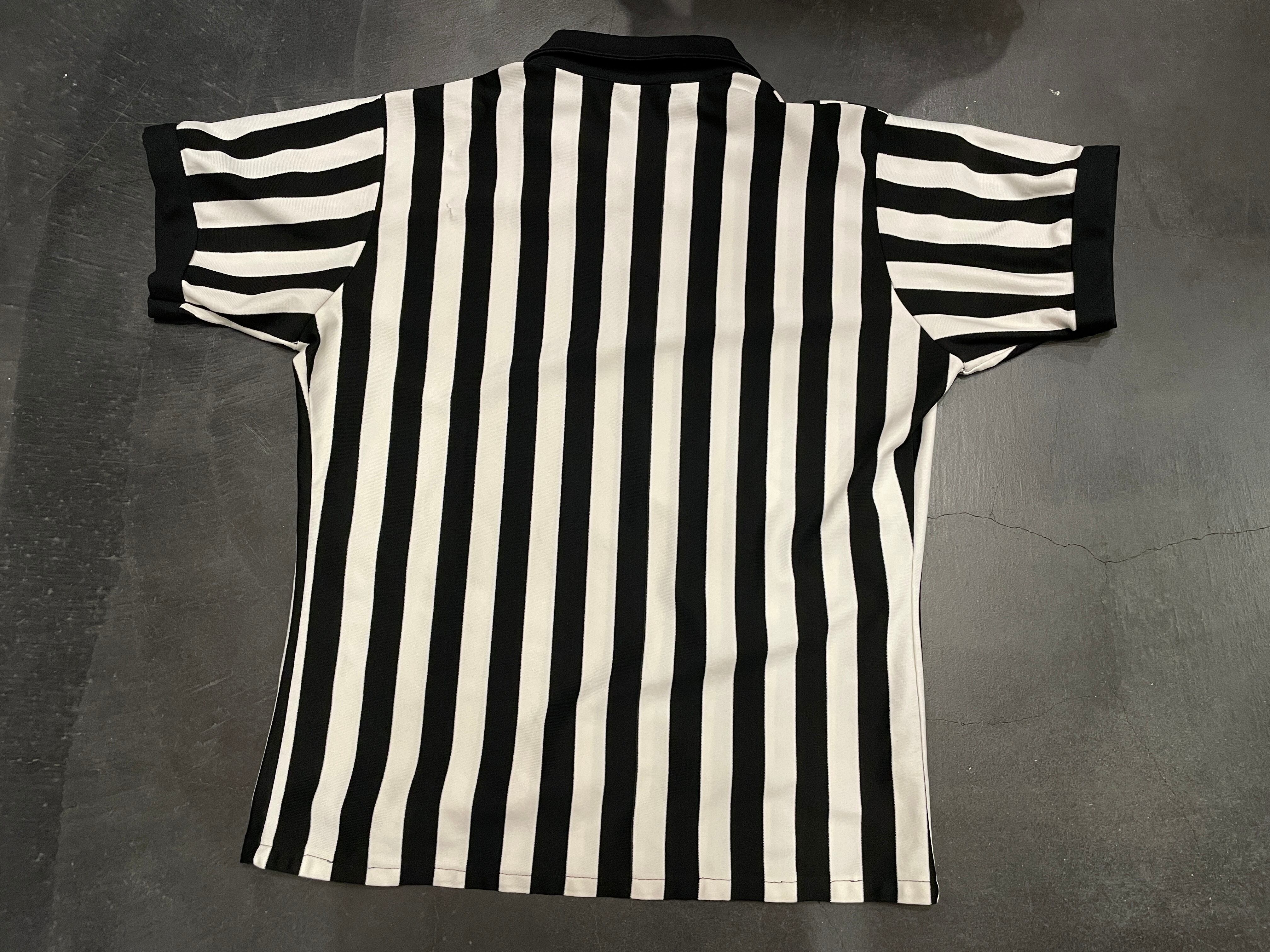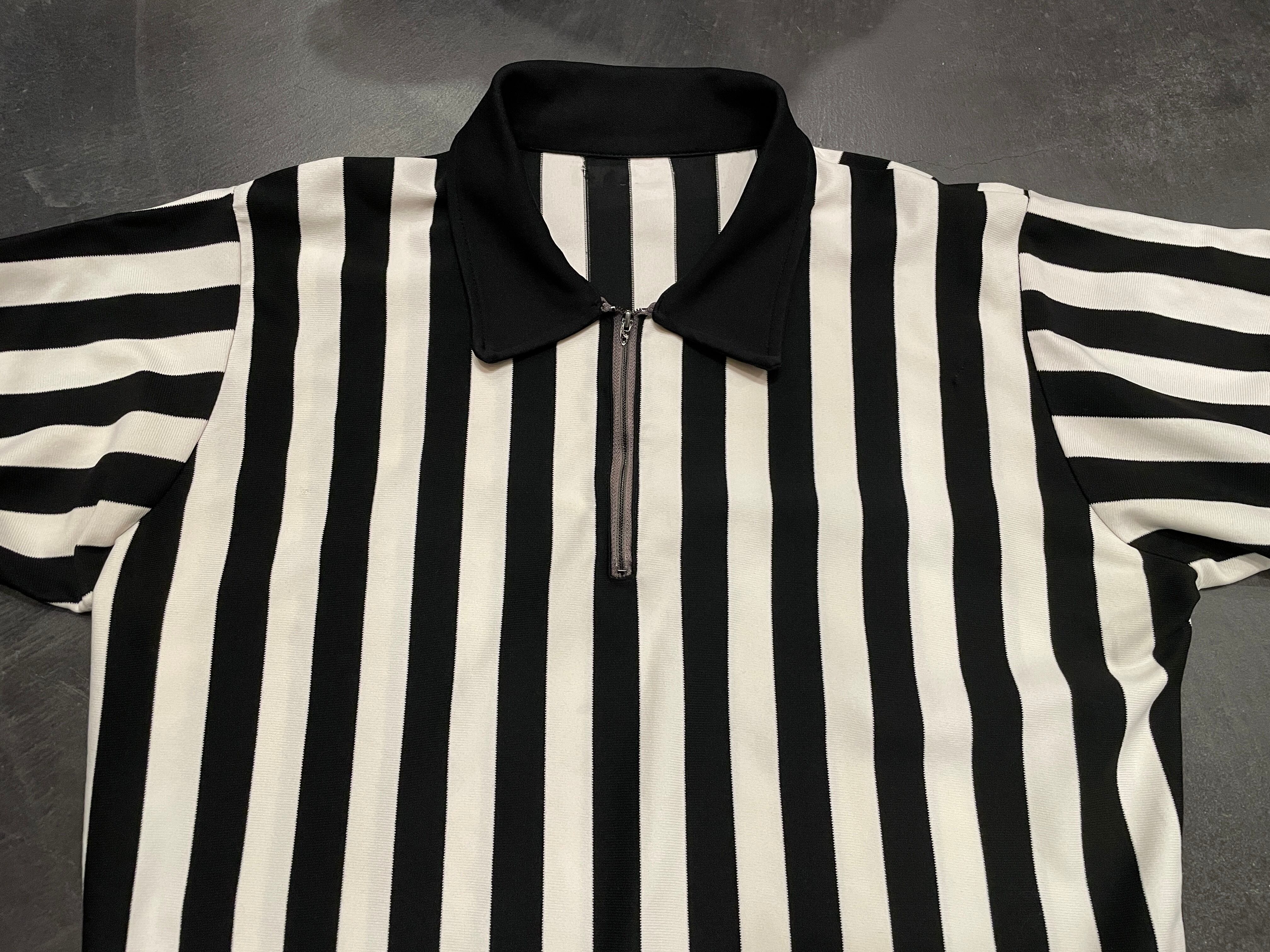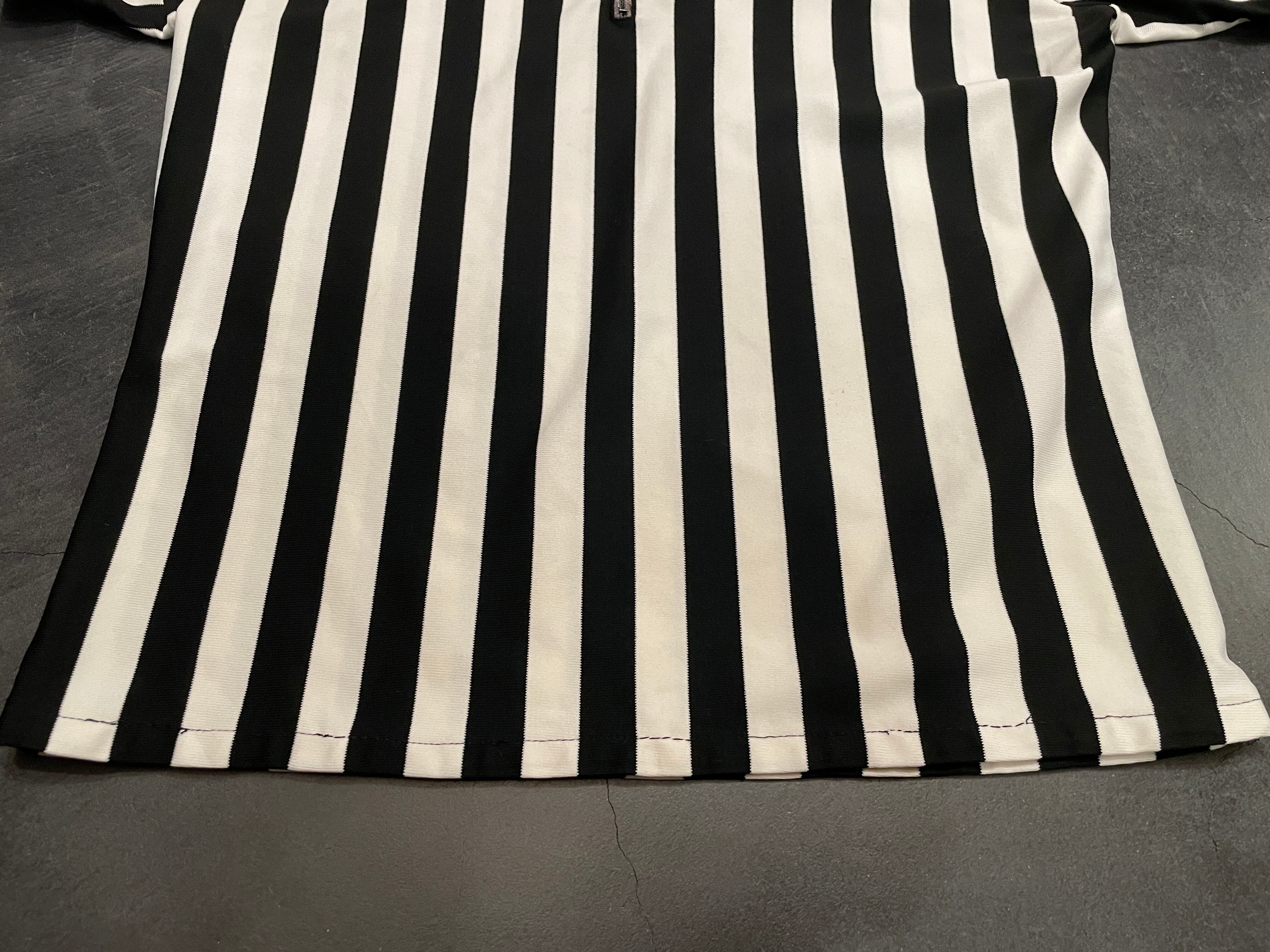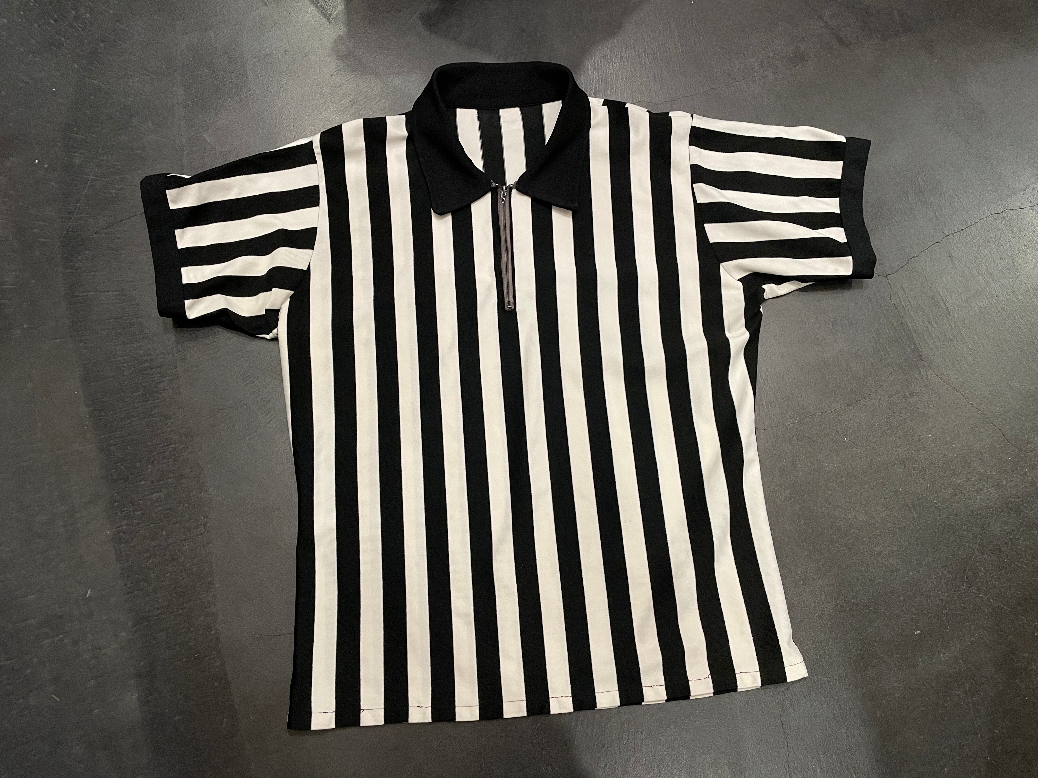 ホワイト×ブラックのストライプボディに襟元と袖リブが効いたアイテム。