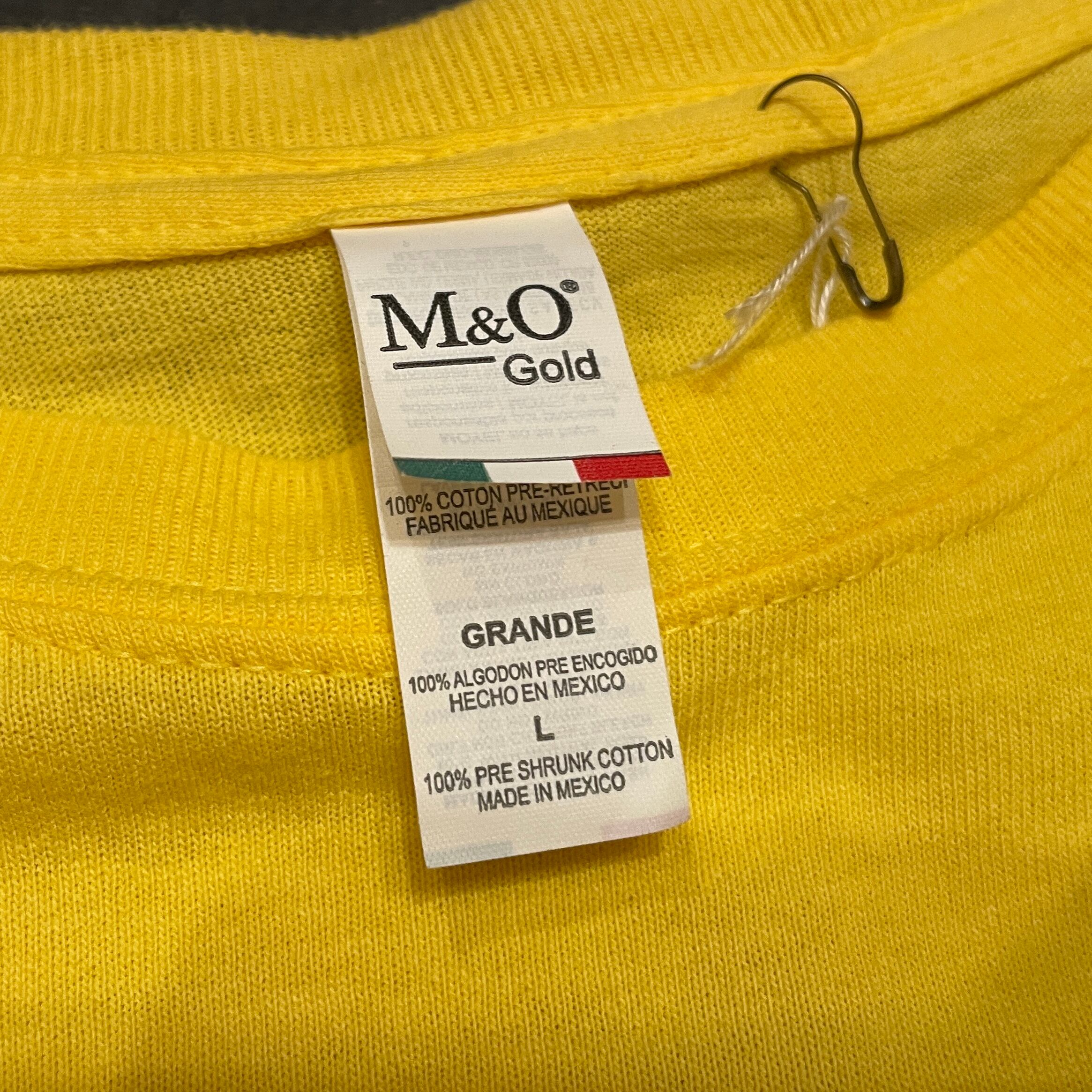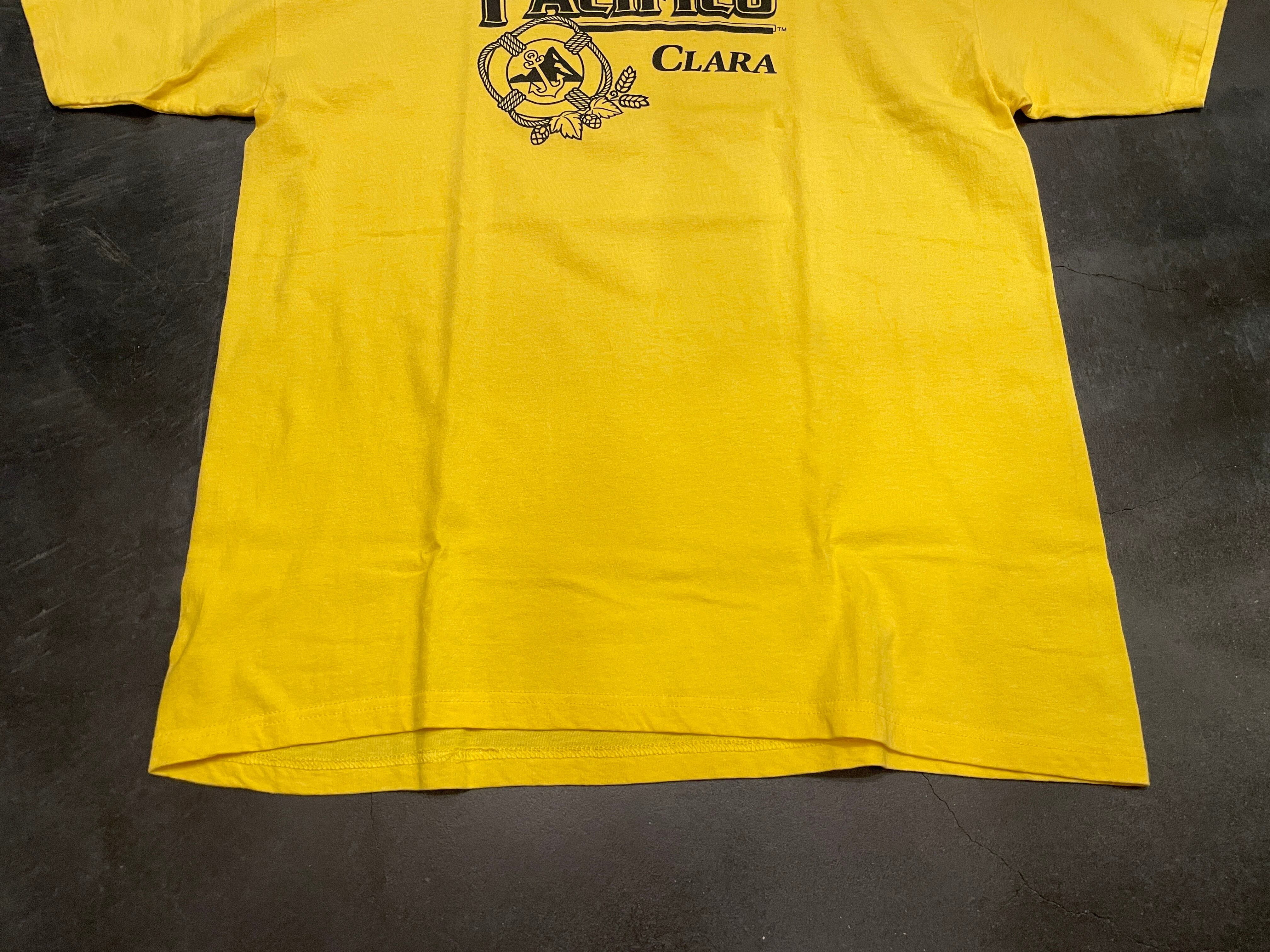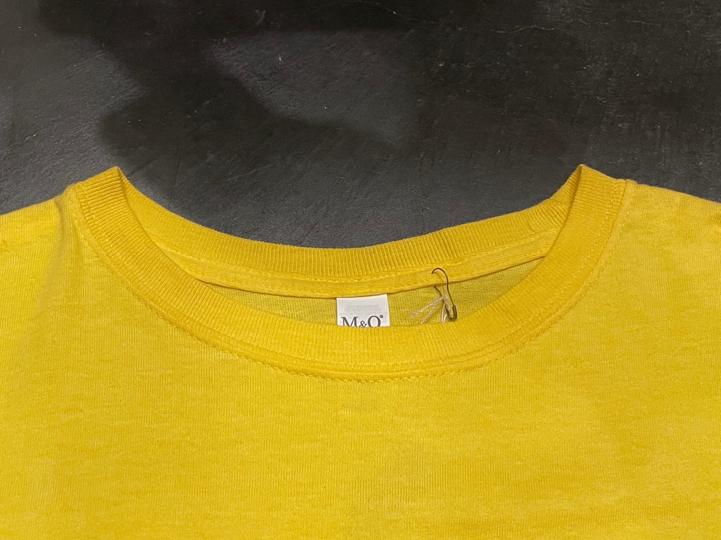 レモンイエローボディにアドバタイシングプリントが施されたアイテム。