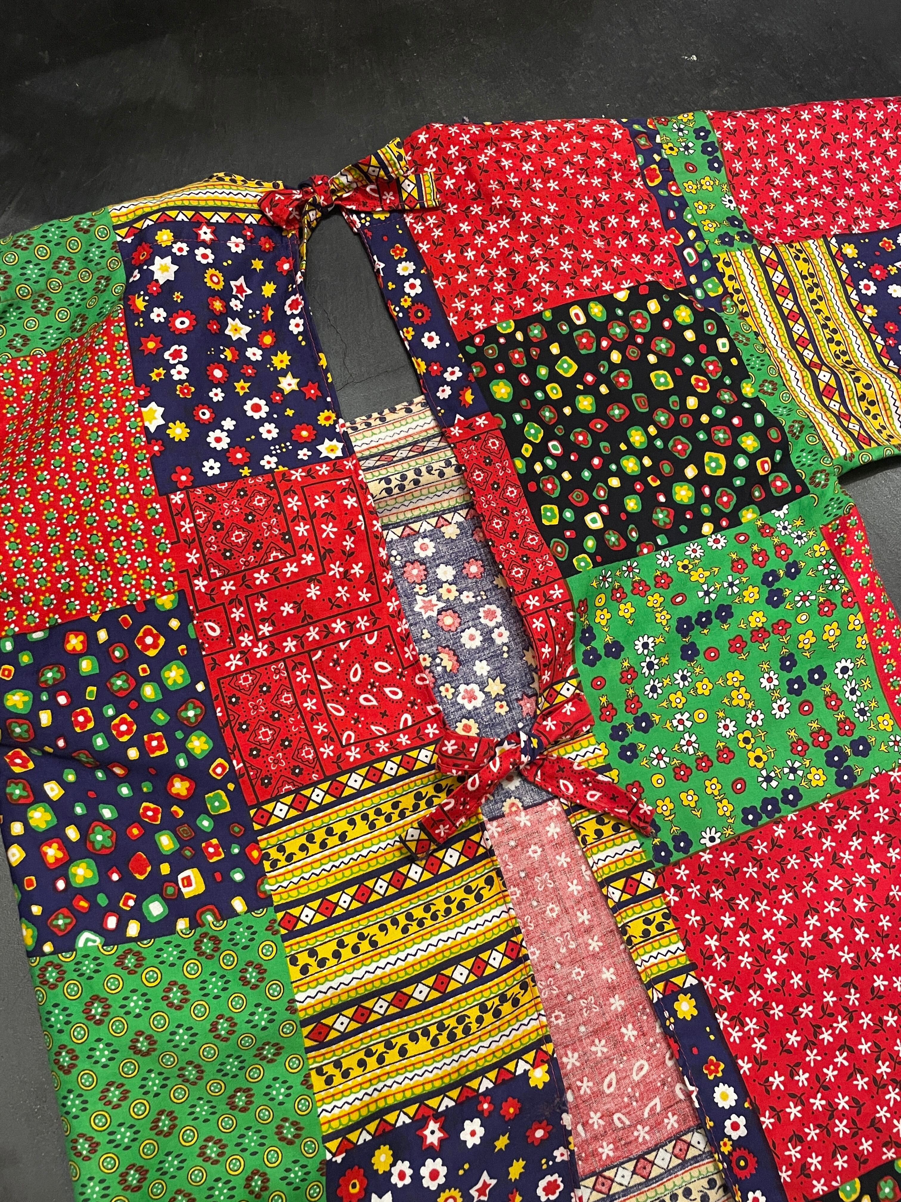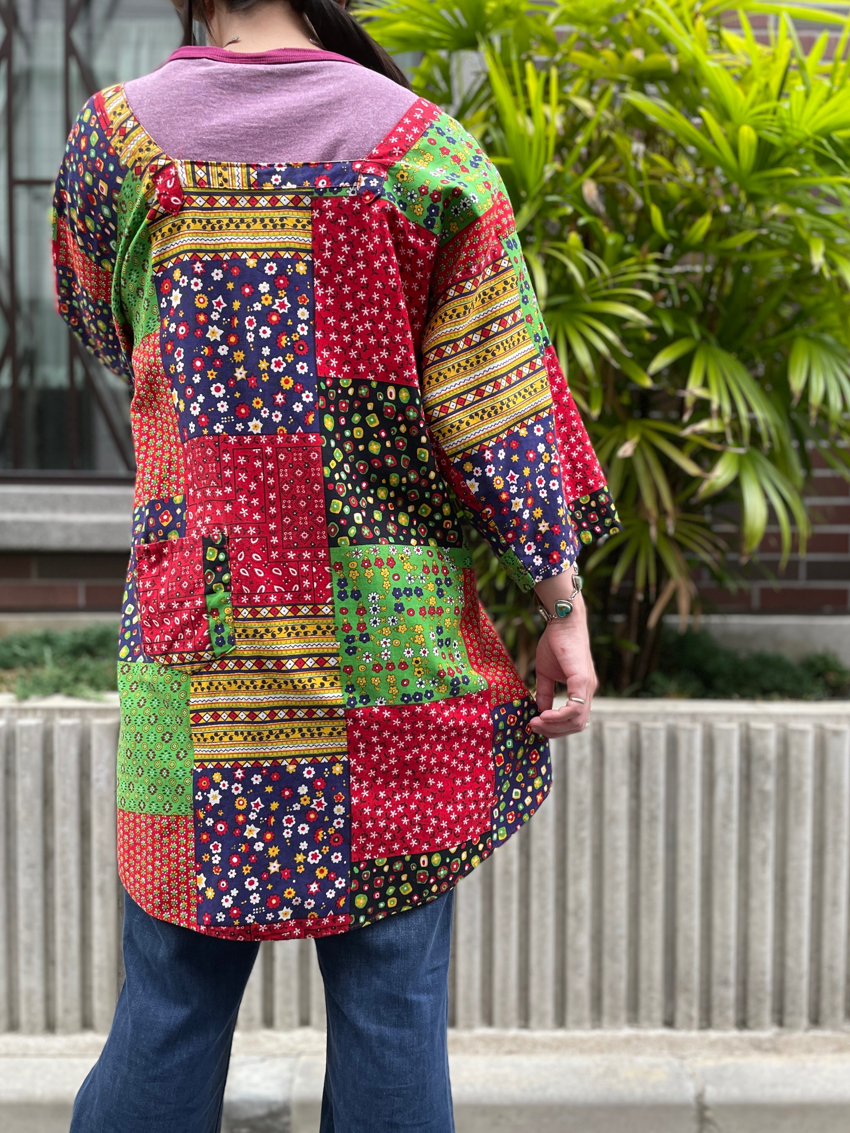 カラフルなパッチワークプリントが堪らない魅力的なアイテム。