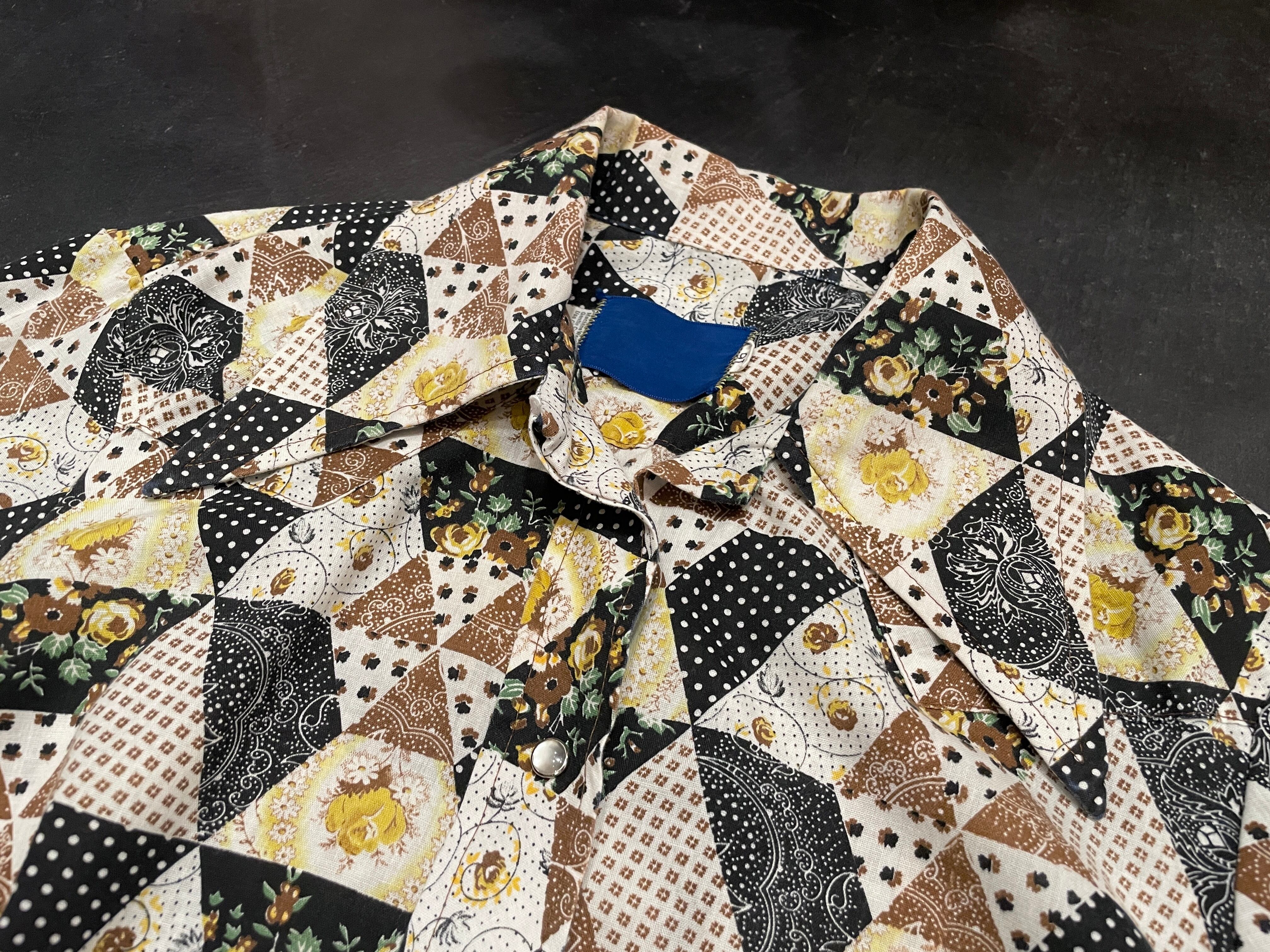70s vintage patchwork pattern shirt【844】