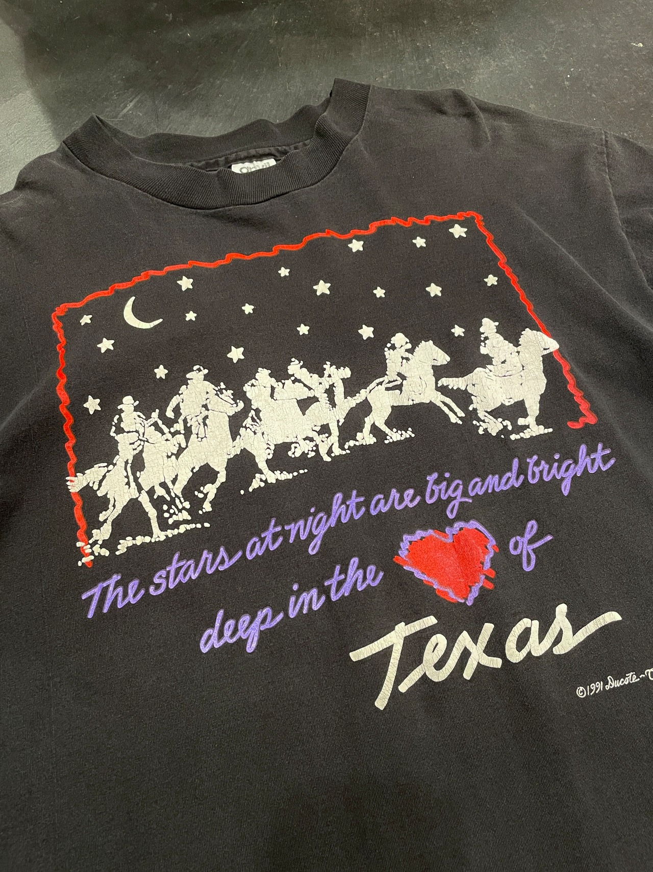 こちらは星空の下で馬乗りをしている様子のシルエットプリントや、大胆な大きいハートにTEXASのプリントなどが目を惹きます◎◎◎