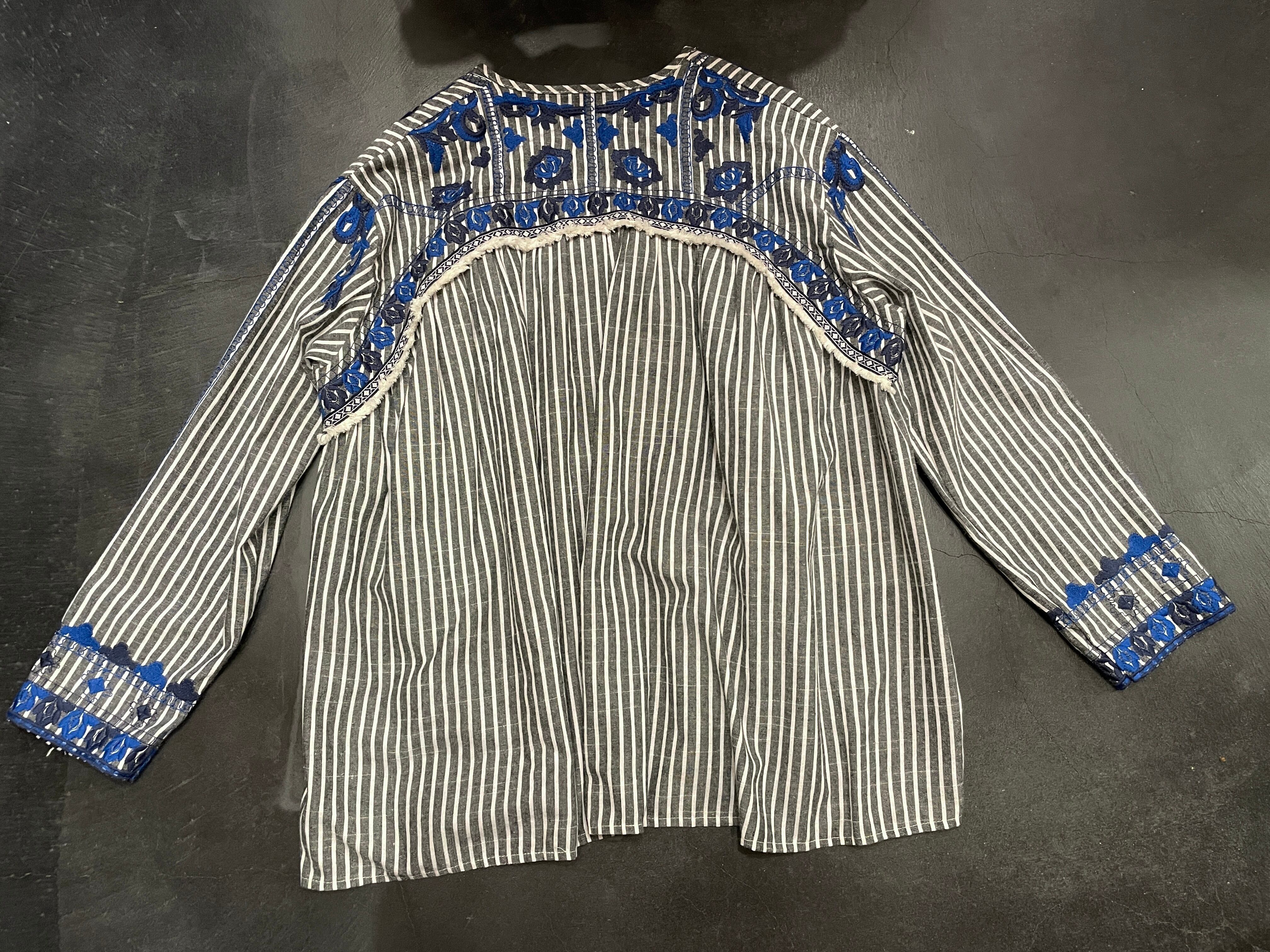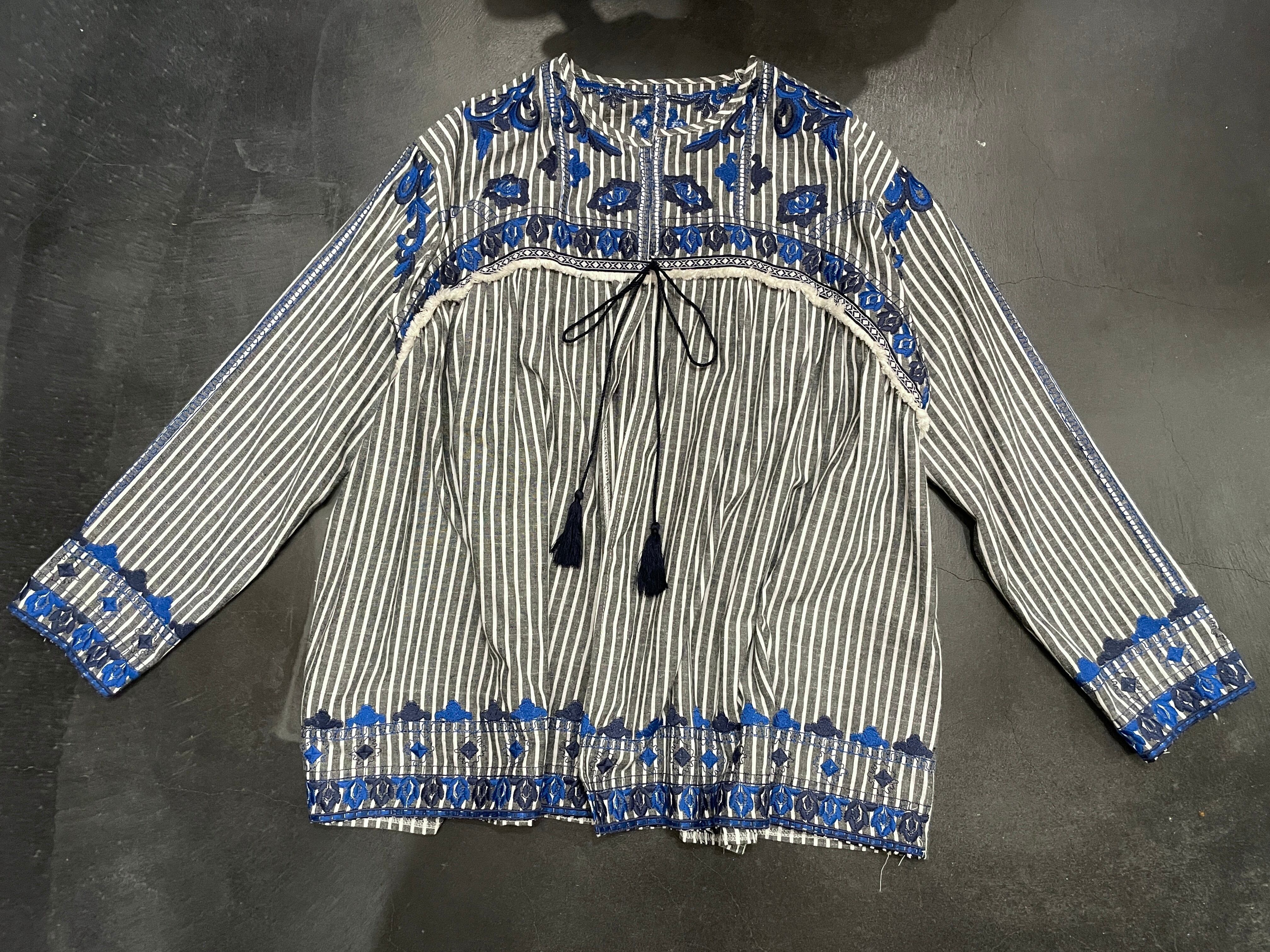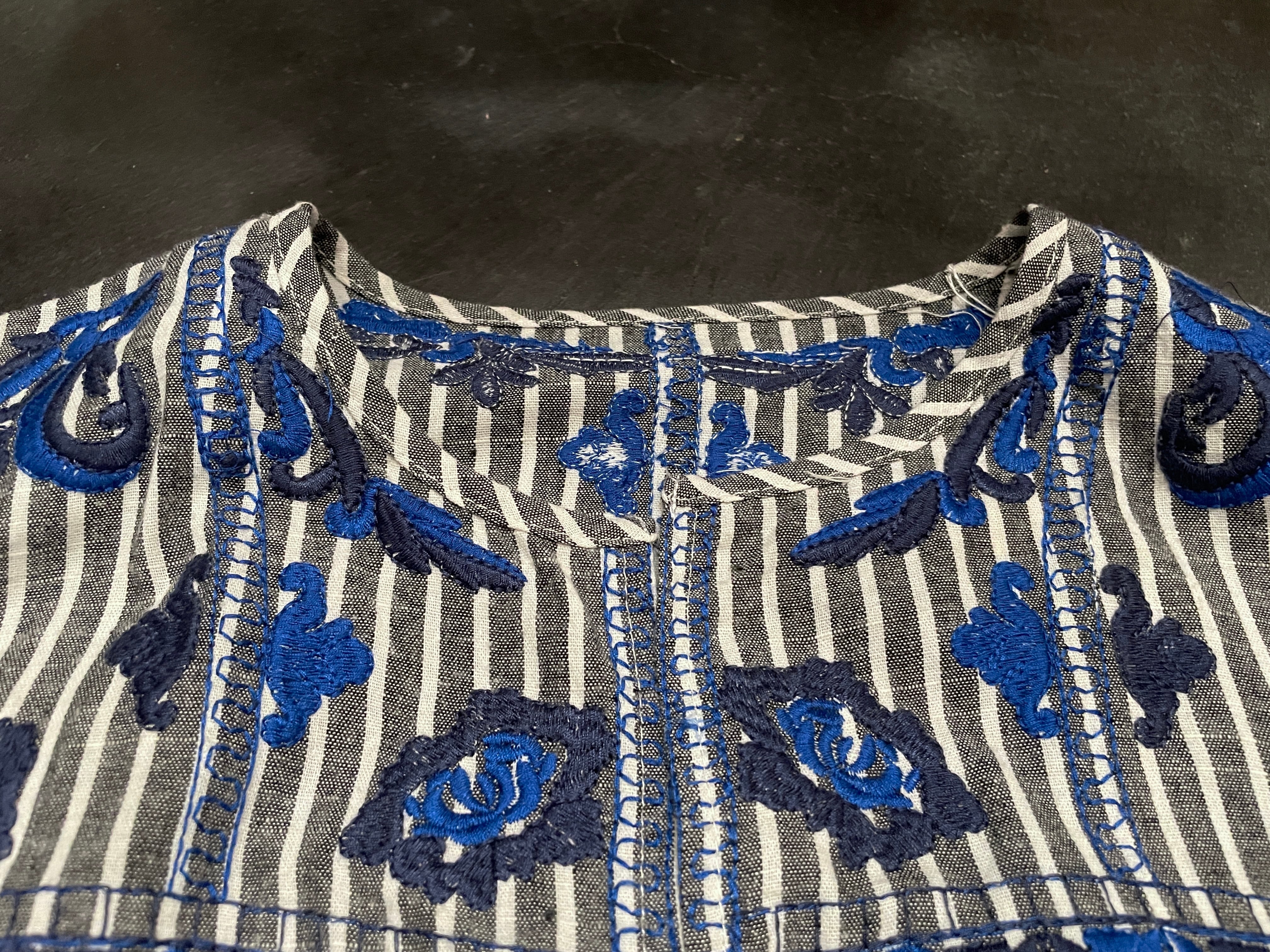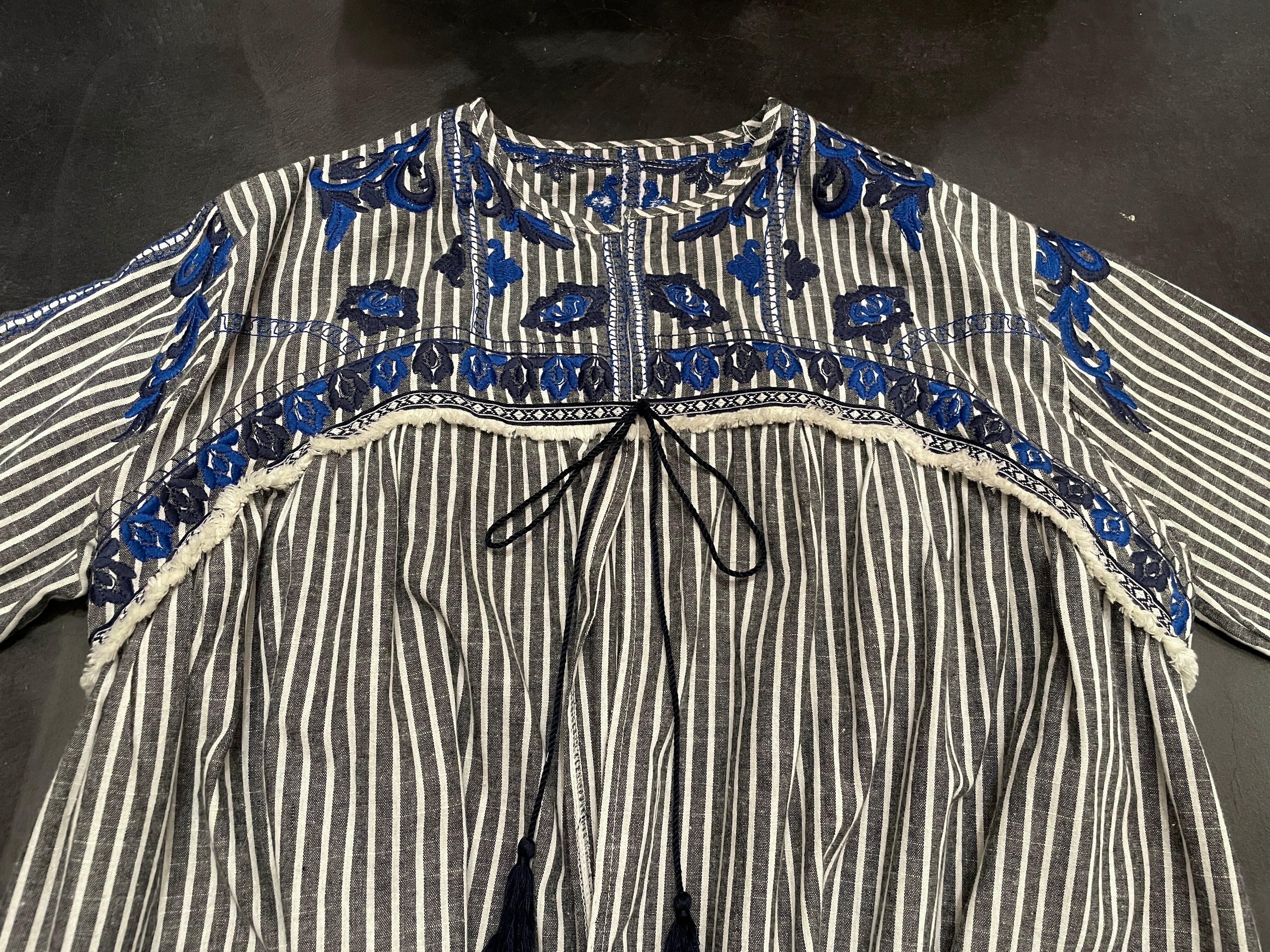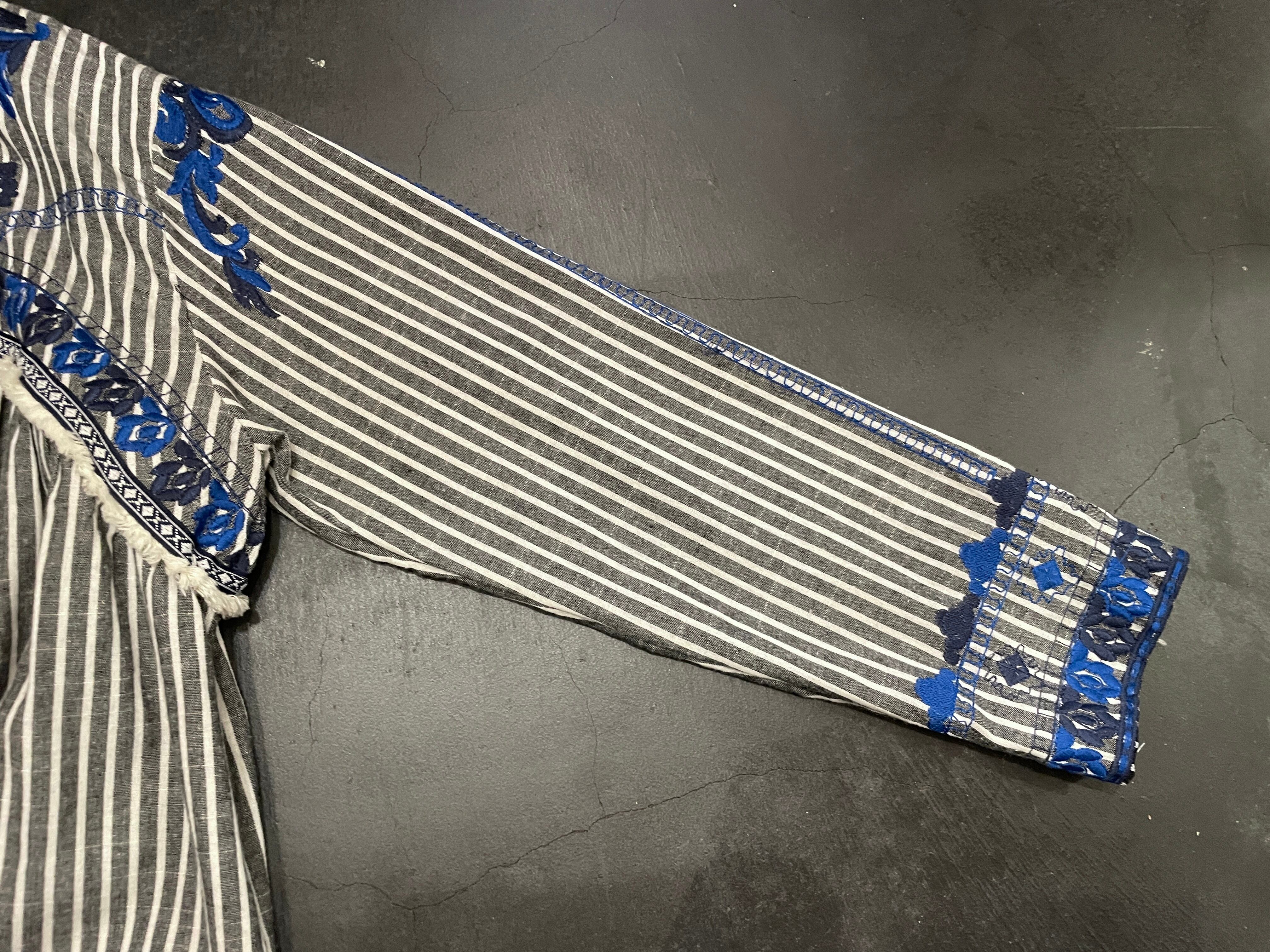 フロント、袖、背中に抜かりなく刺繍が施され、切り替え箇所にはミニフリンジも付き、手の込んだグッドデザイン◎◎◎