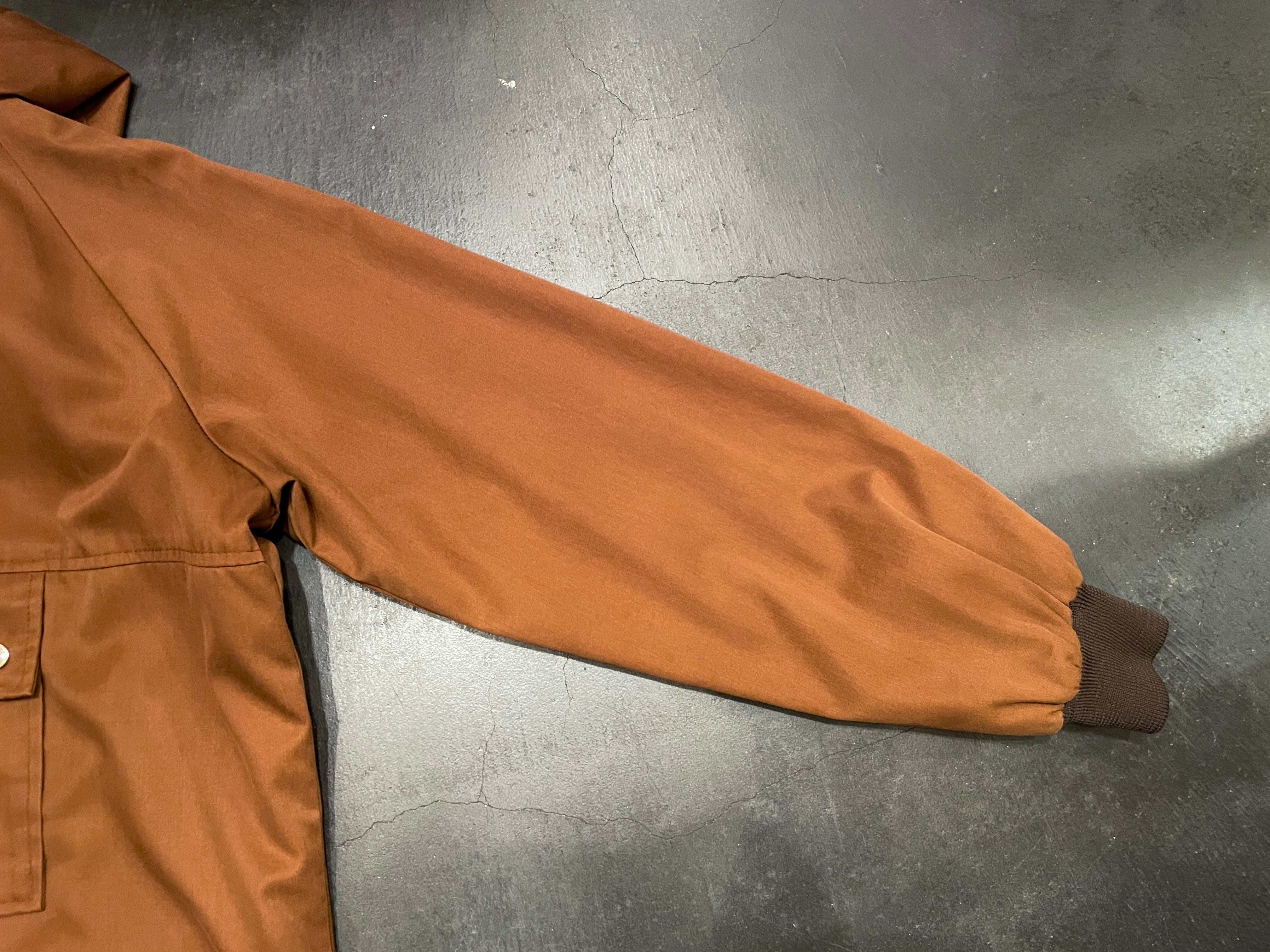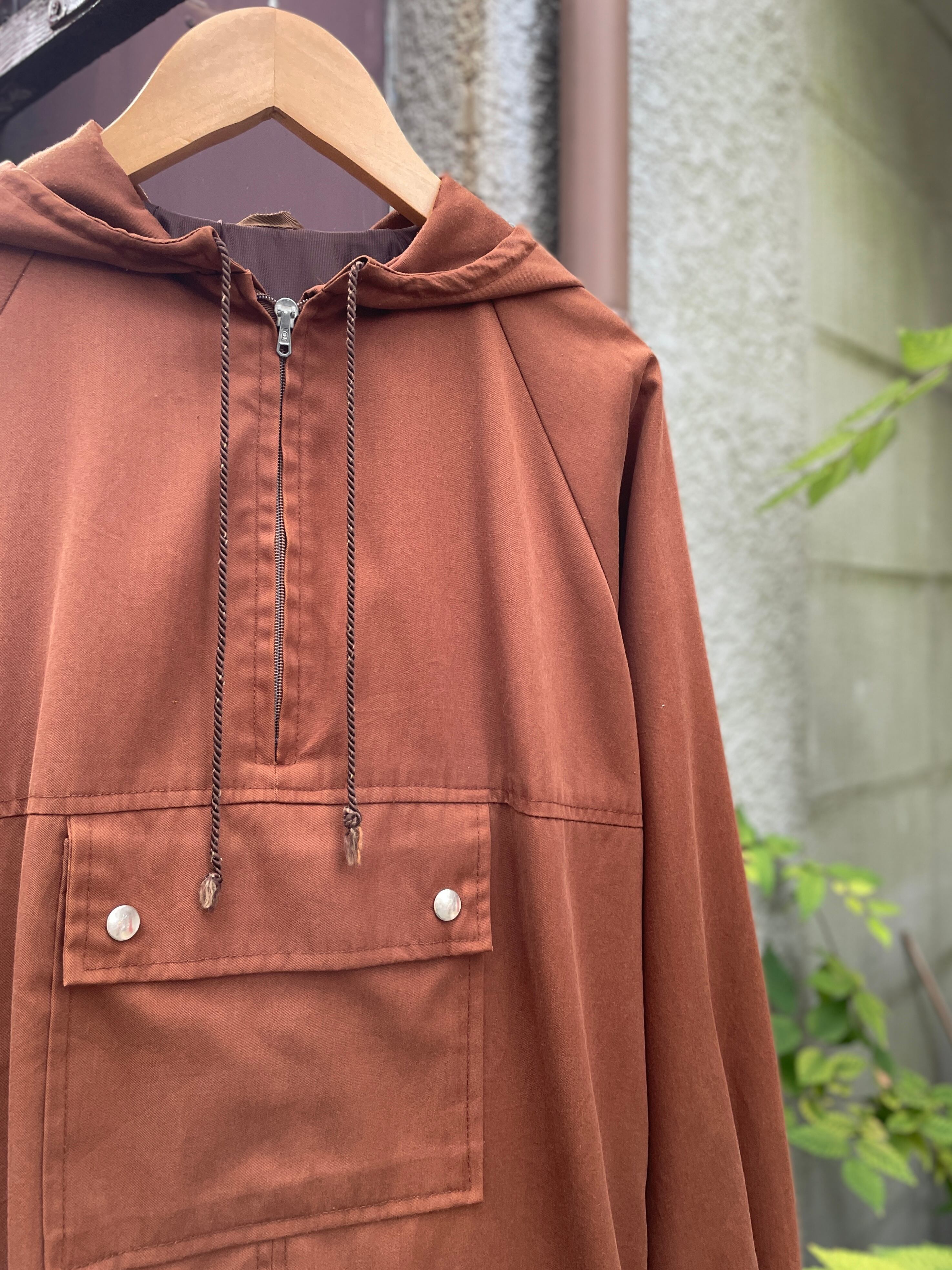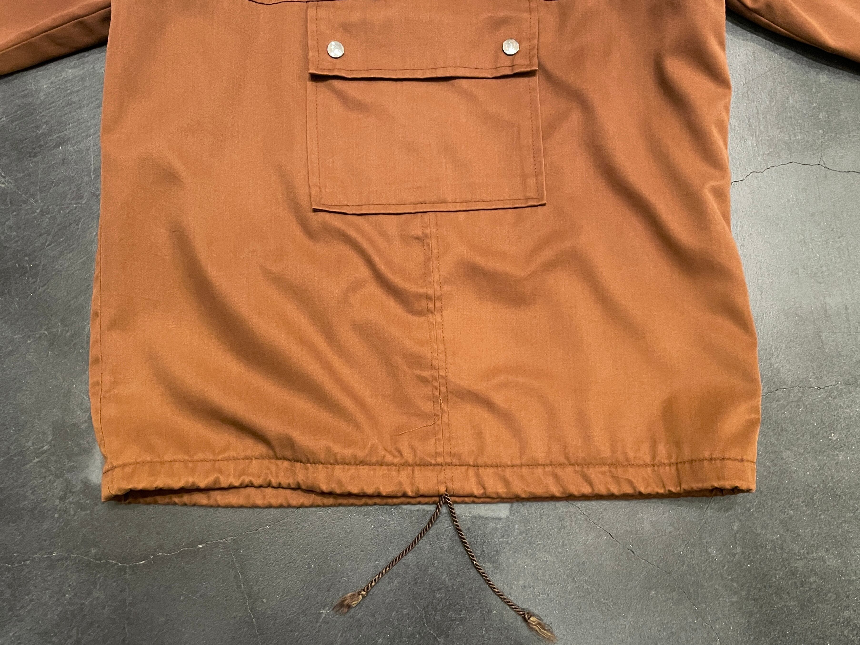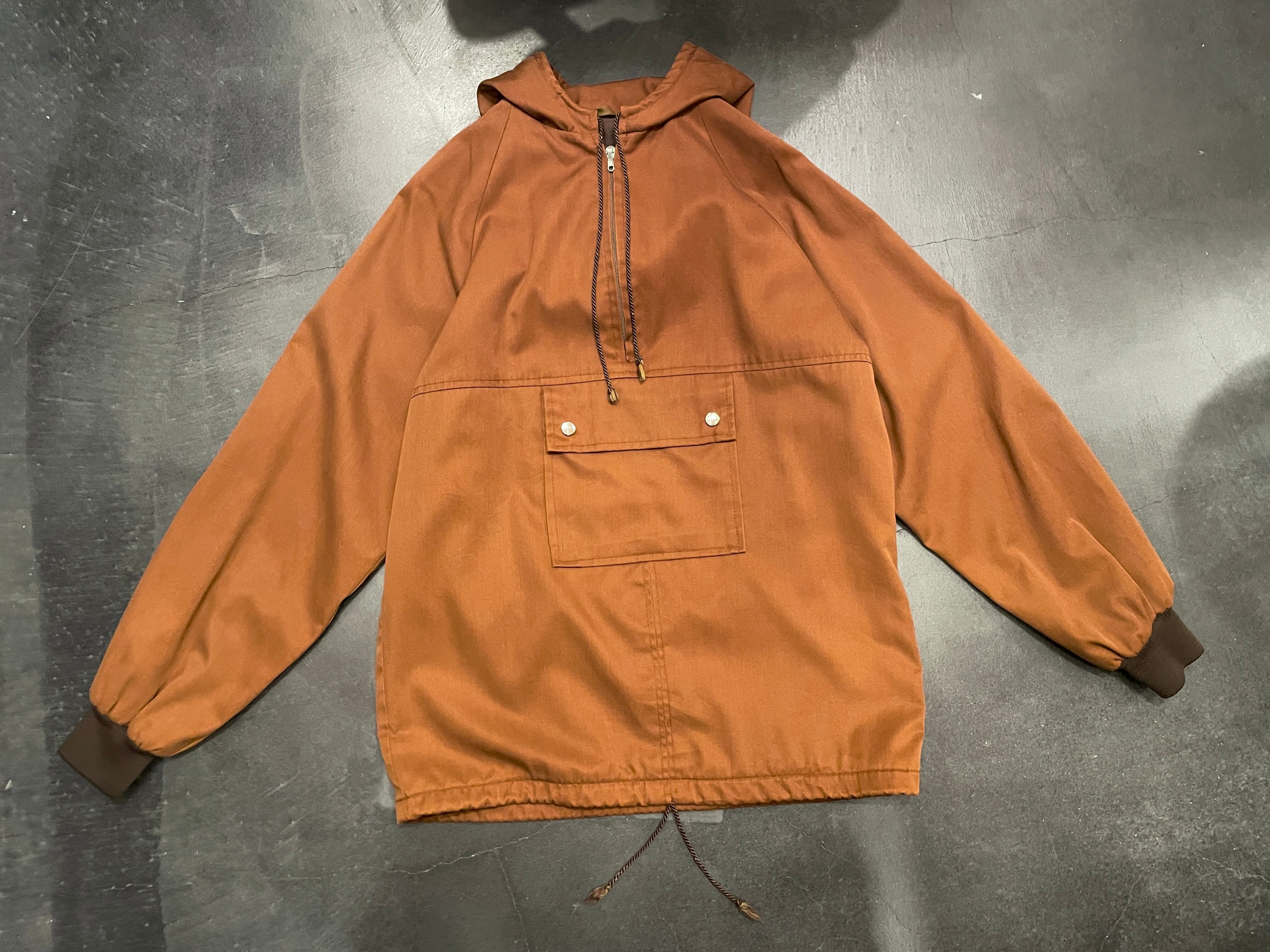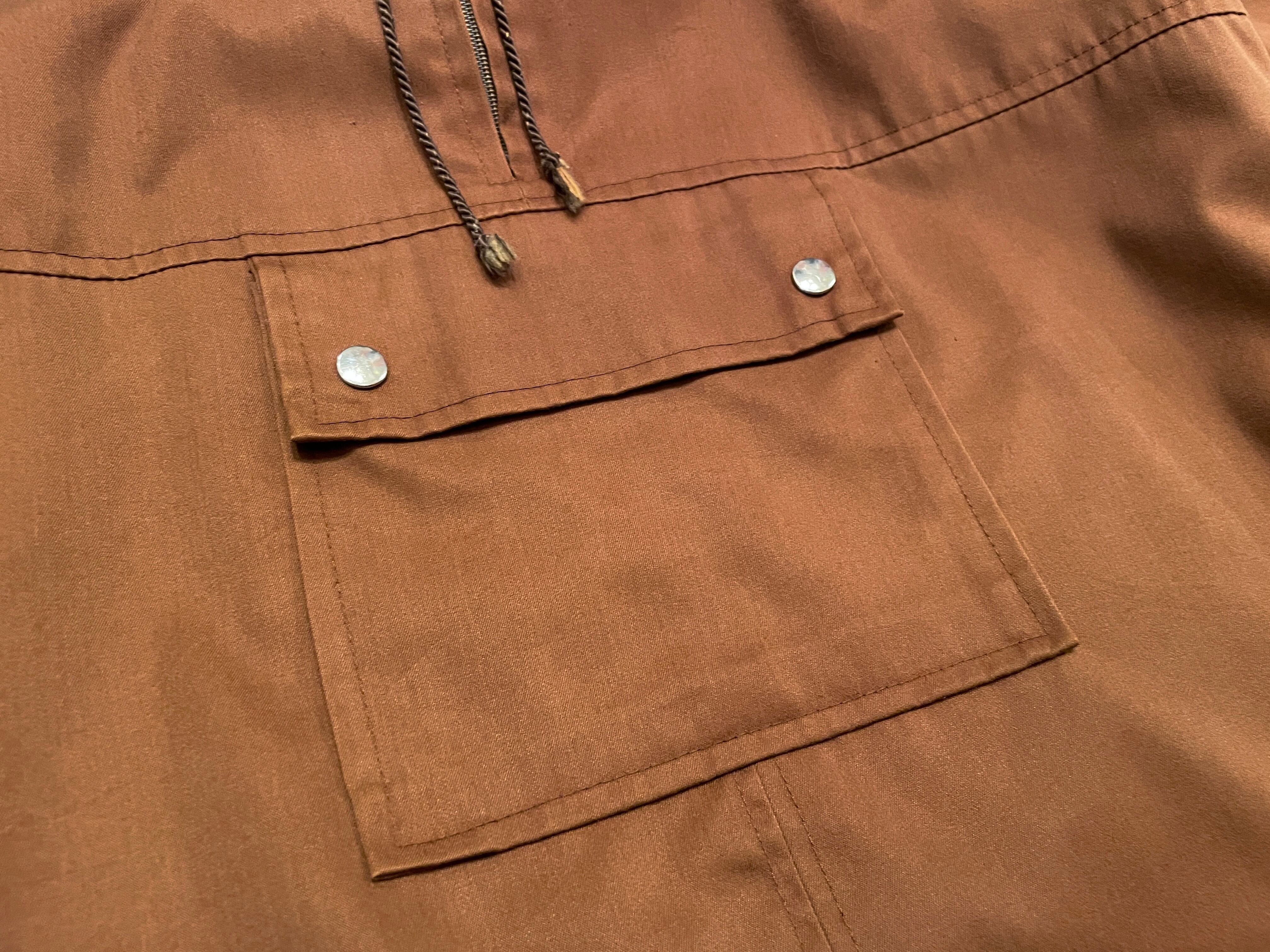 落ち着いたブラウンカラーにフロントのフラップポケットが効いたアイテム。