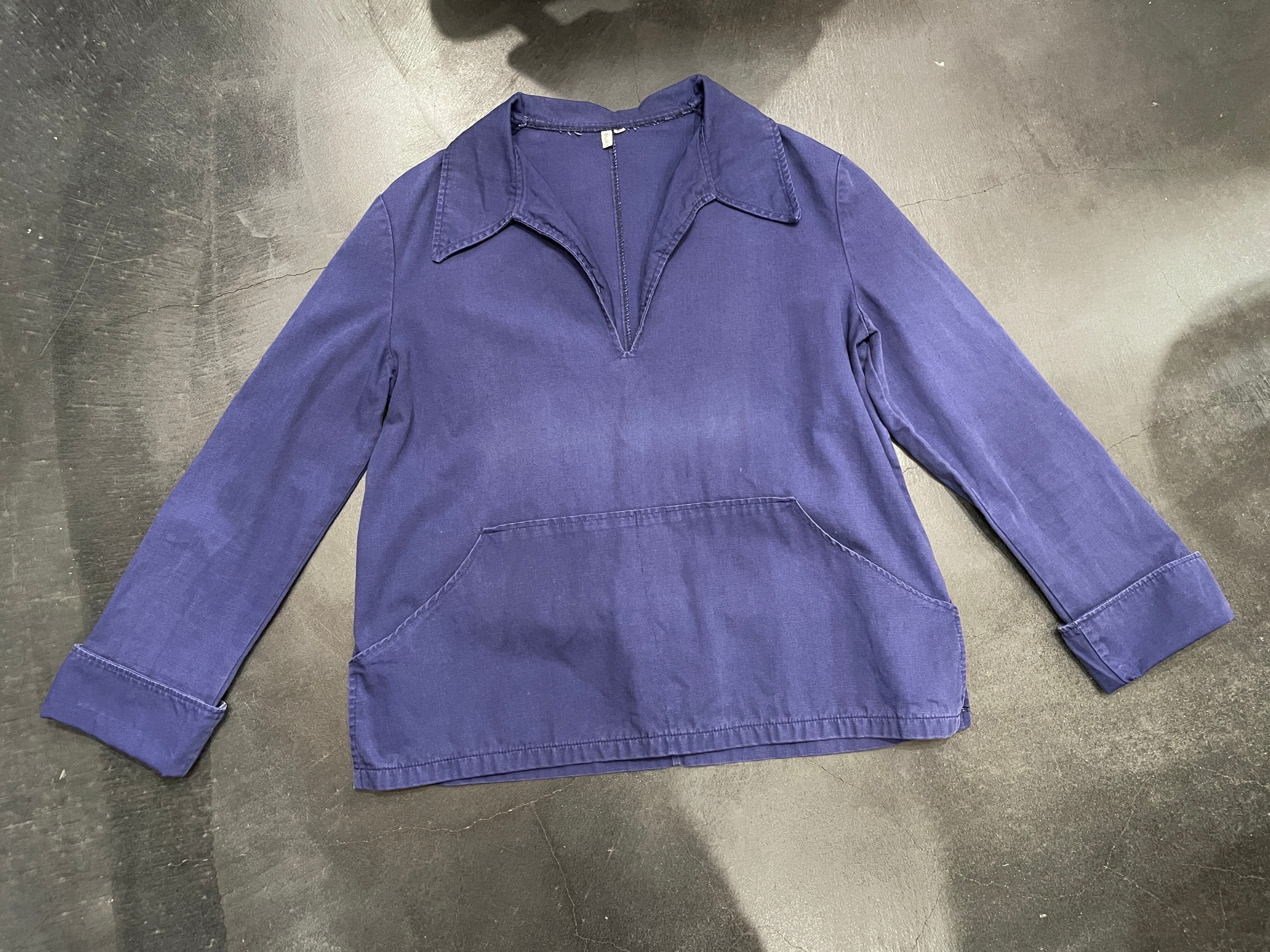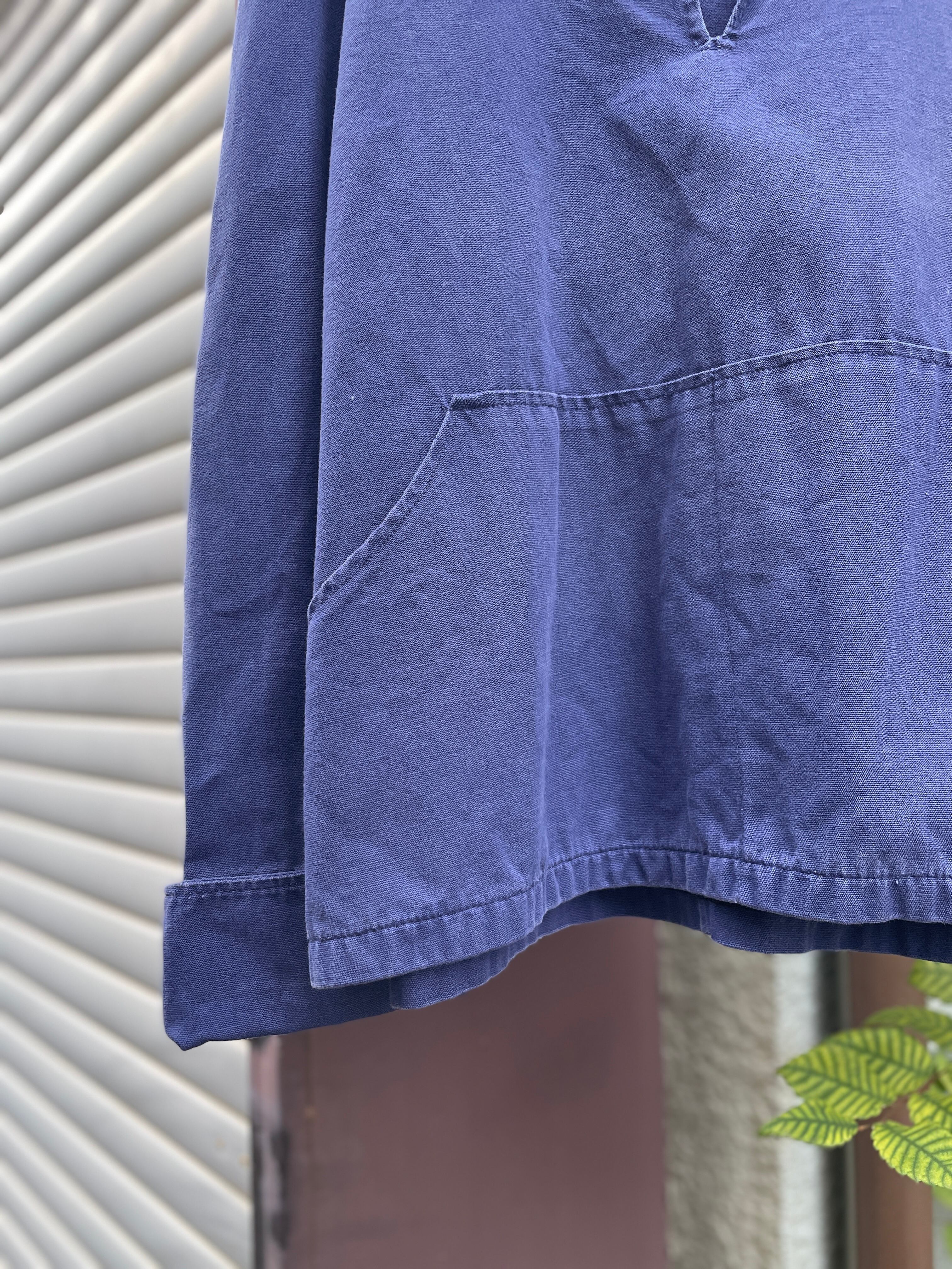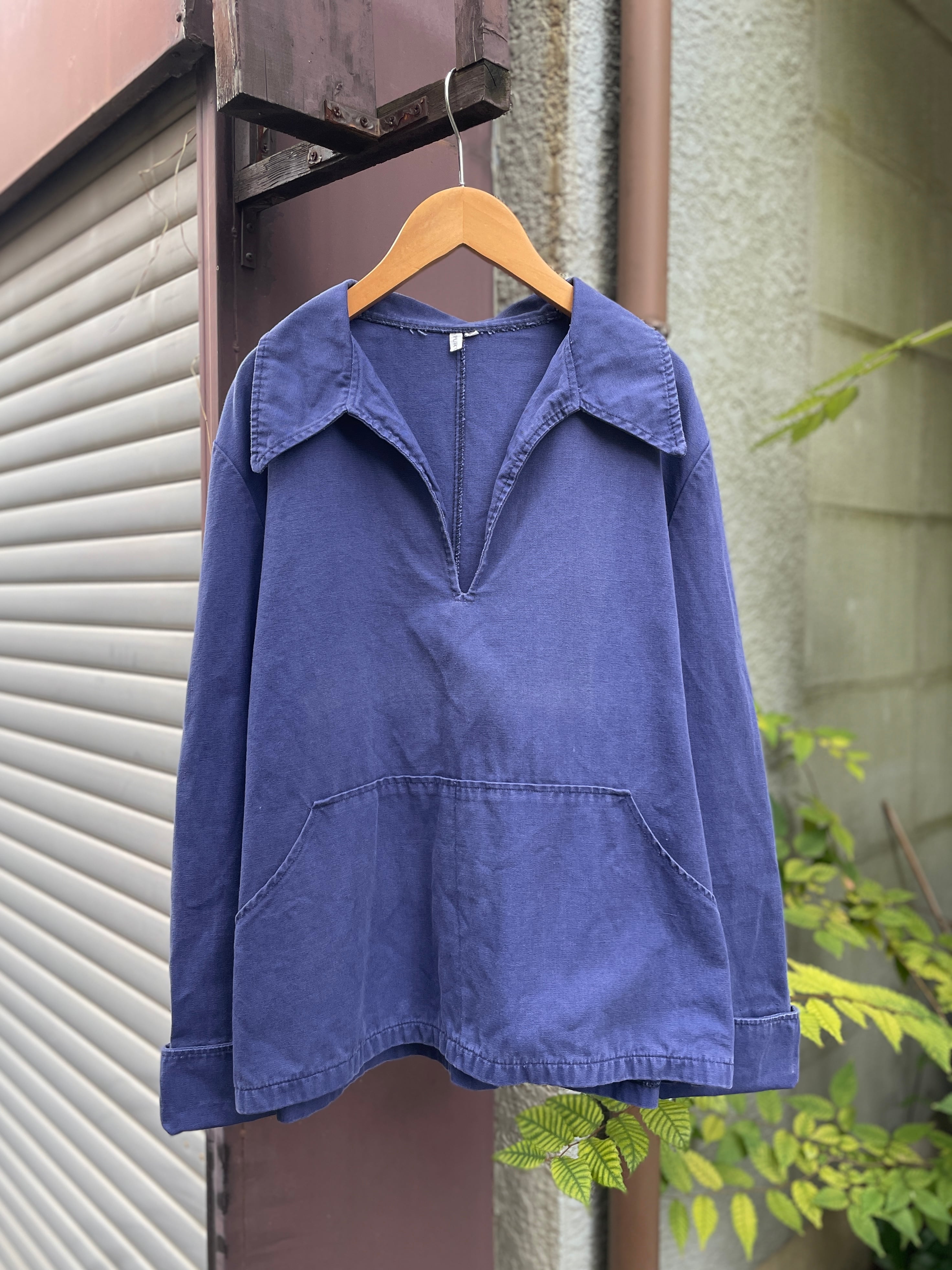 コットンキャンバスのようなしっかりとしたボディに、大ぶりな襟元や大きなフロントポケットが素敵なアイテム。