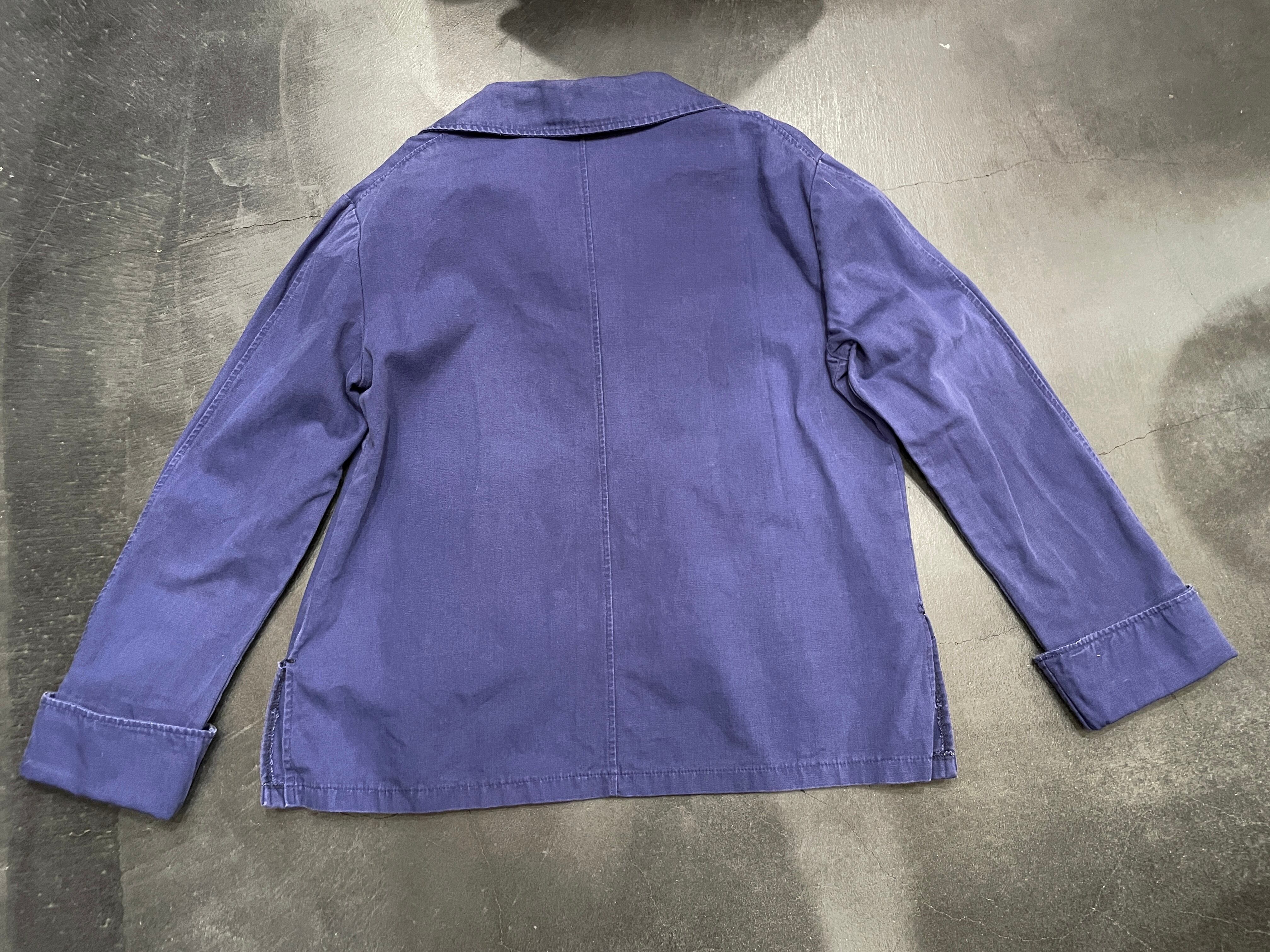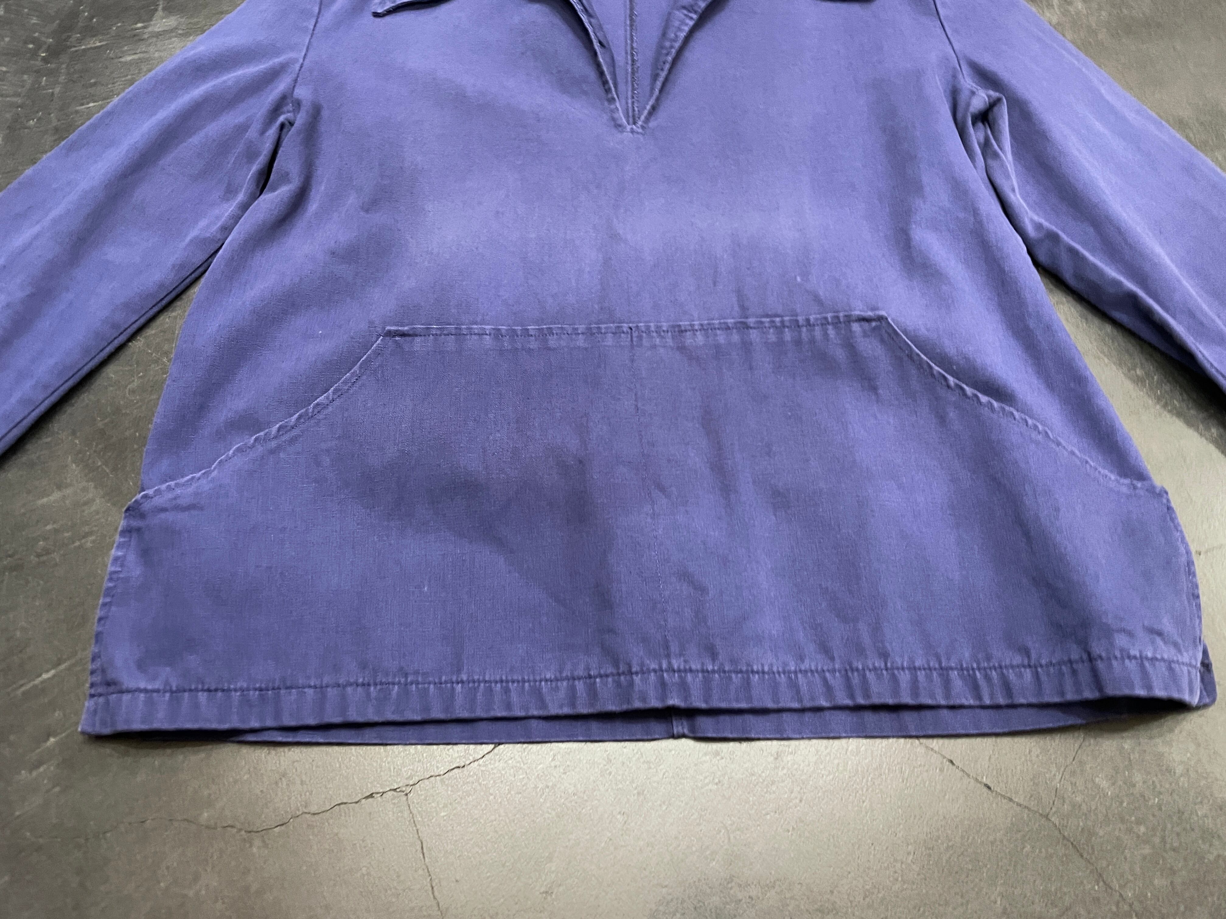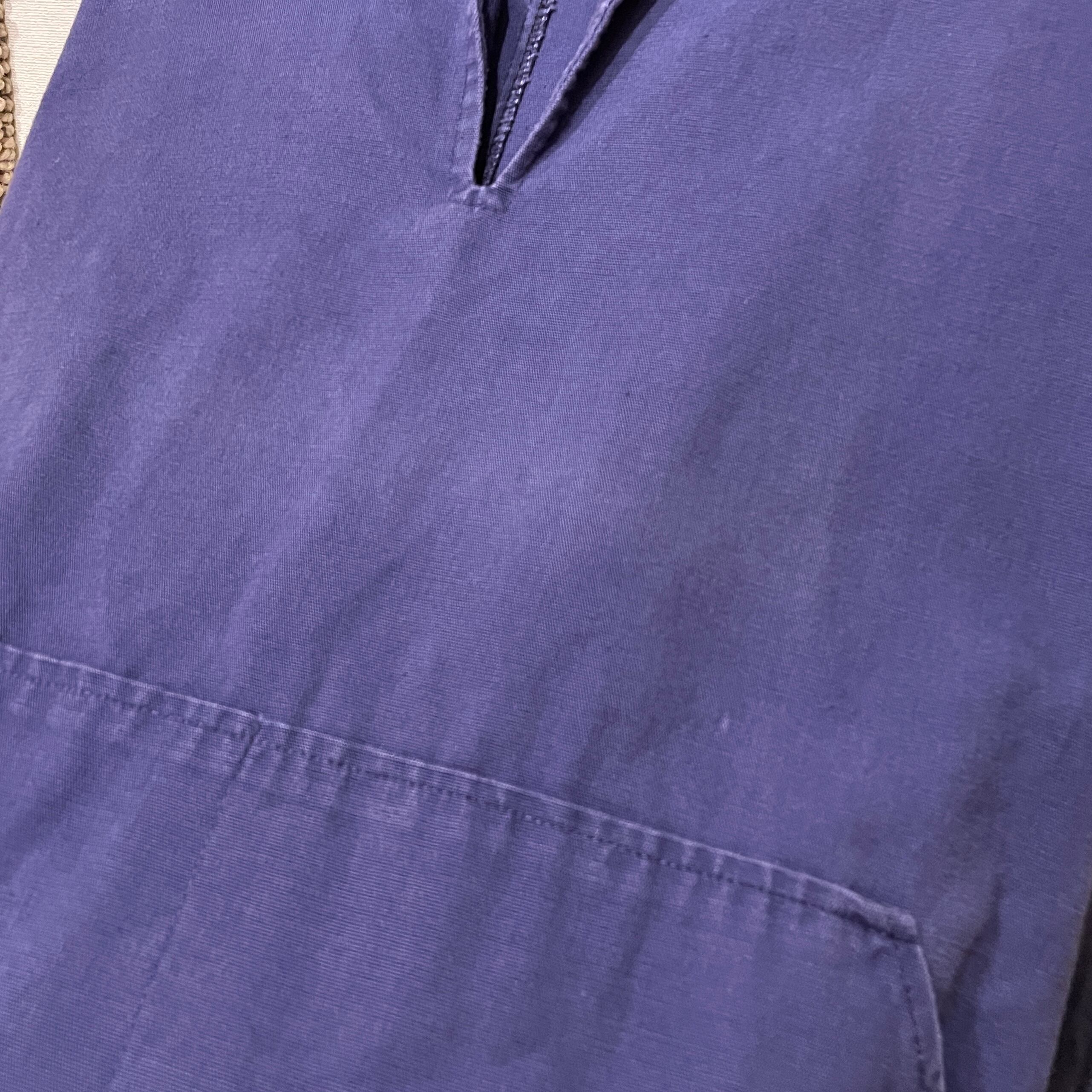 コットンキャンバスのようなしっかりとしたボディに、大ぶりな襟元や大きなフロントポケットが素敵なアイテム。