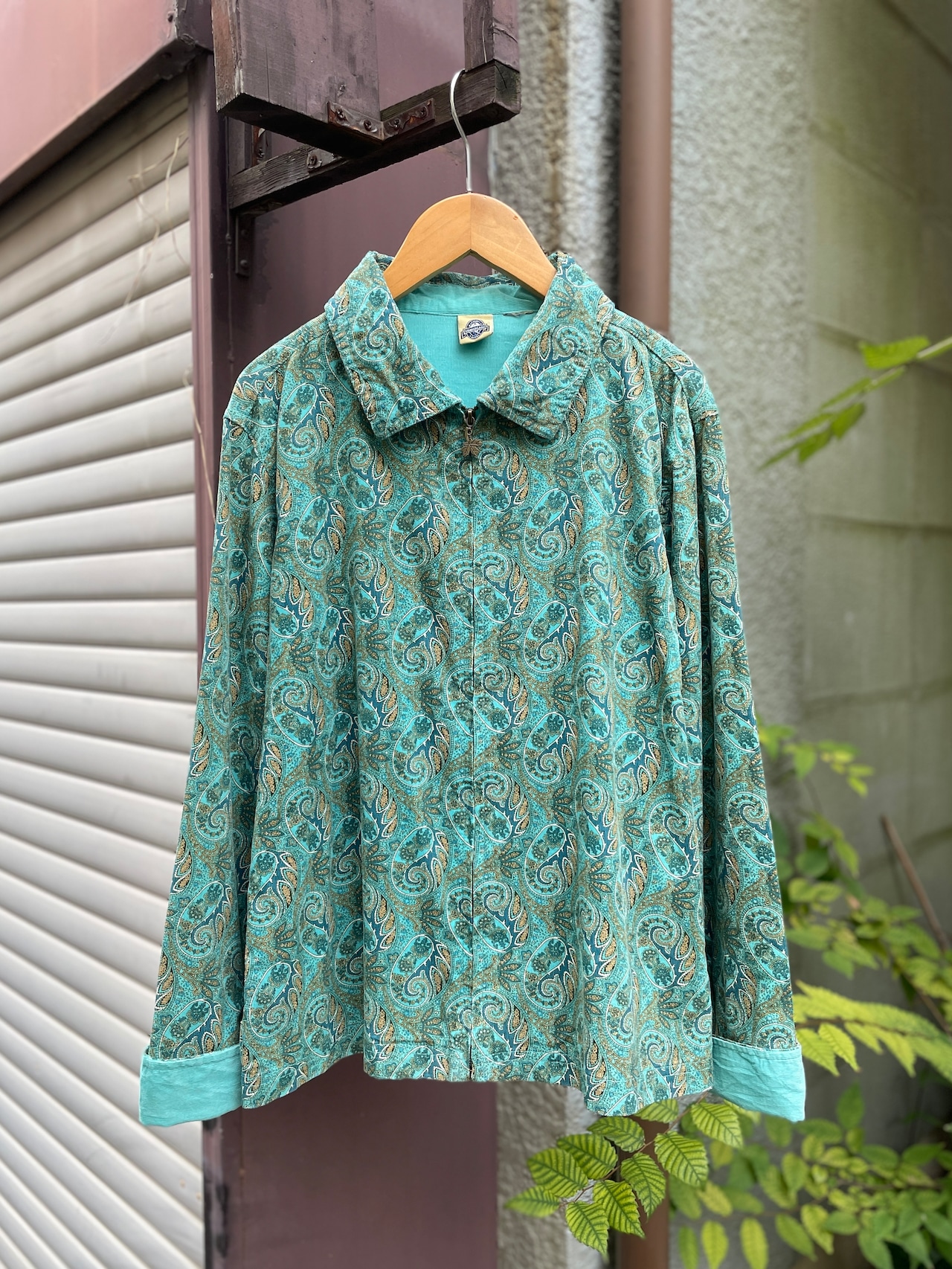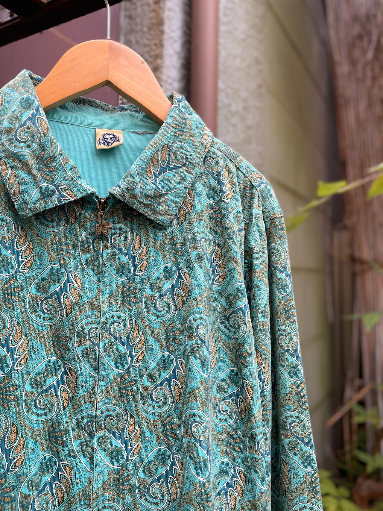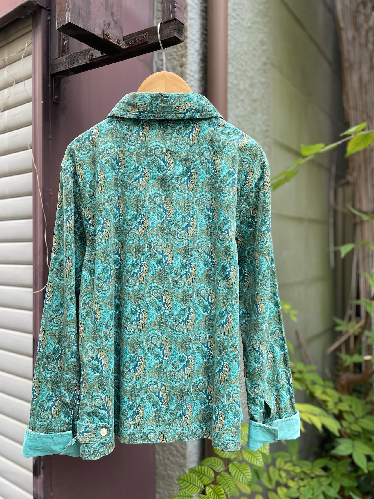 綺麗なグリーンを基調にしたペイズリー柄が目を惹くアイテム。