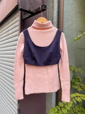 伸縮性のある生地感ですので、インナーやタートルなどと重ね着が楽しめそうです♪