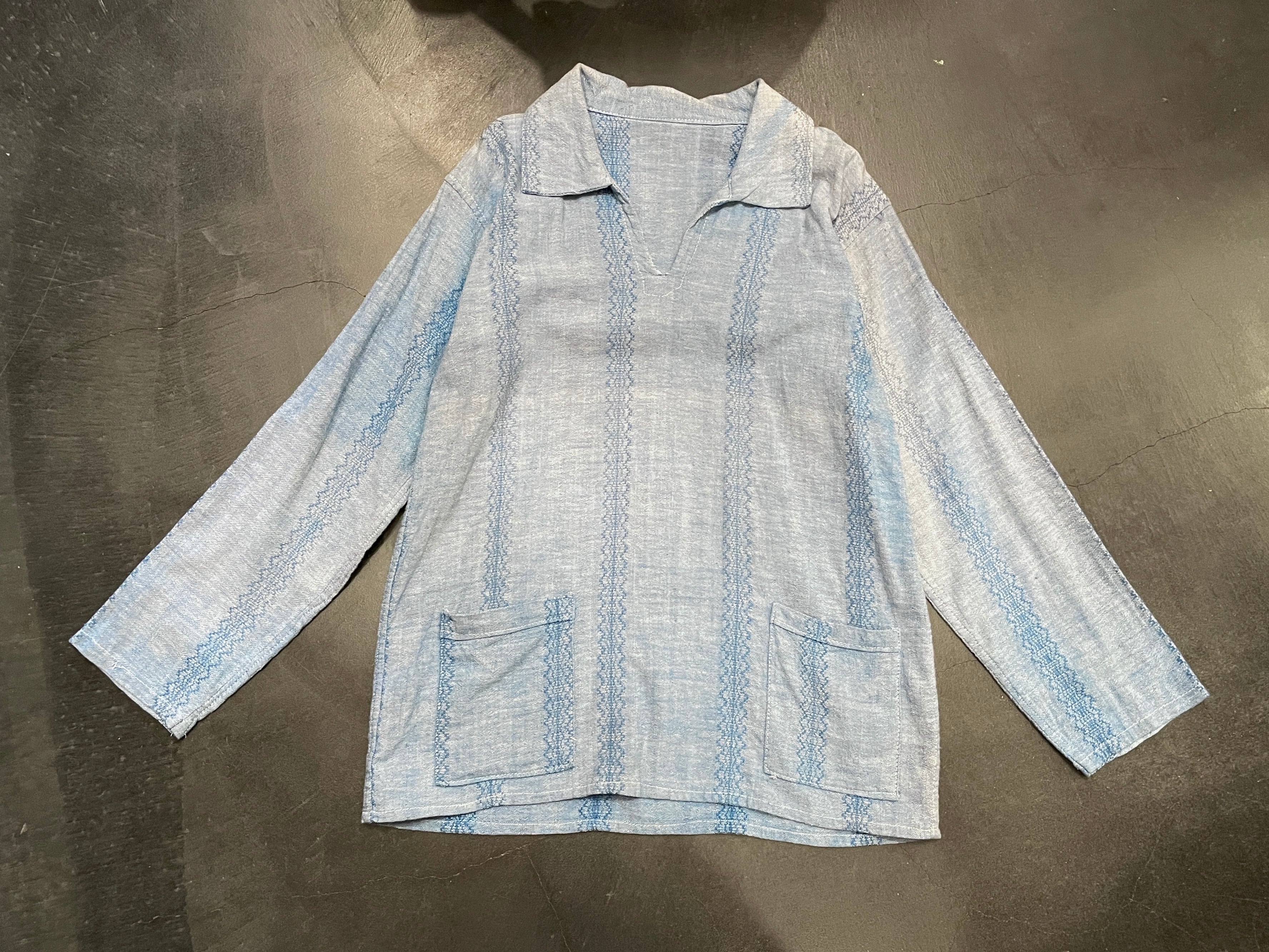 風合いのあるブルーボディにさりげないネイティブ模様が素敵なアイテム。