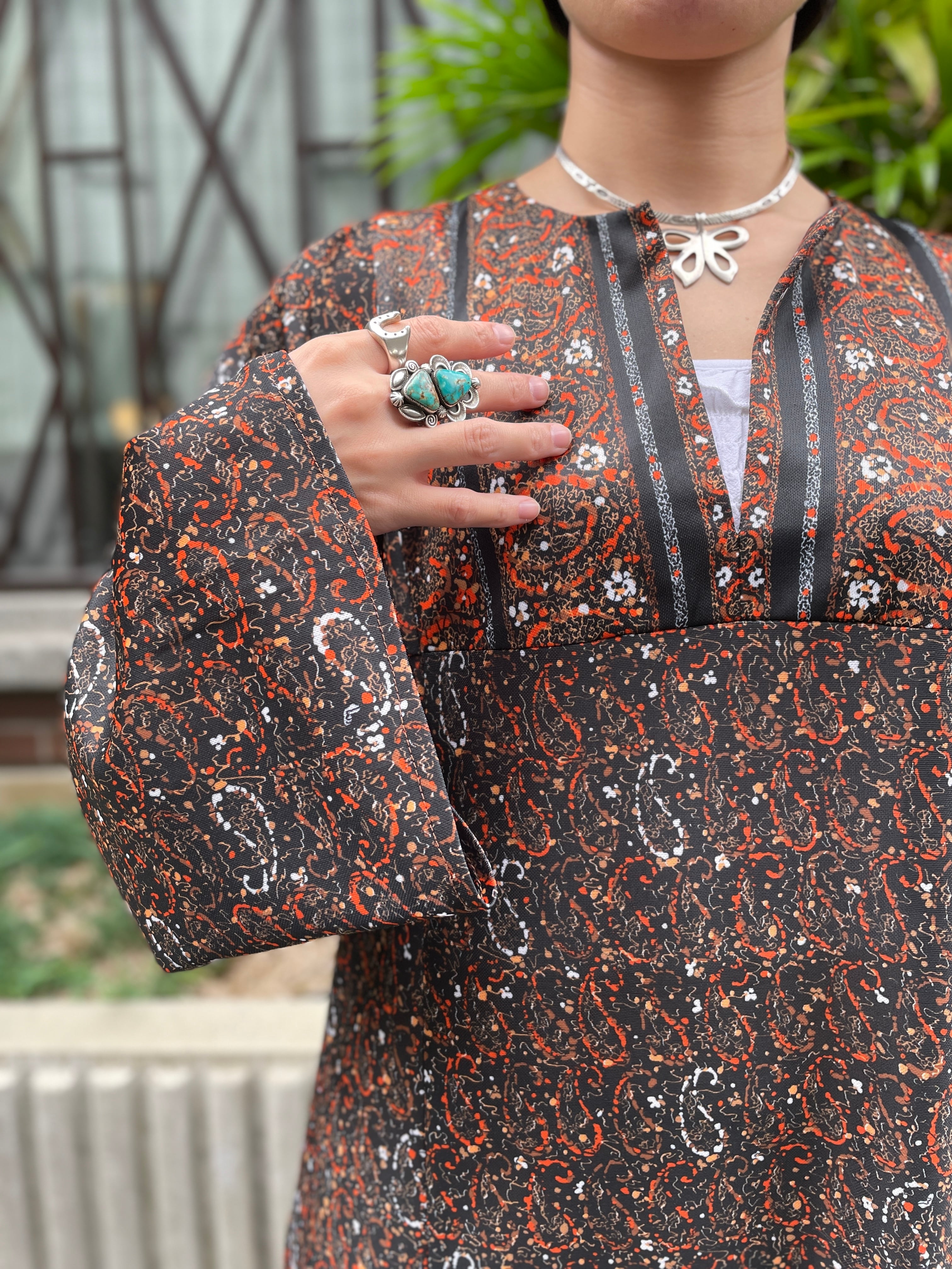 ペイズリーと不思議なニュアンスパターンが魅力的なアイテム。