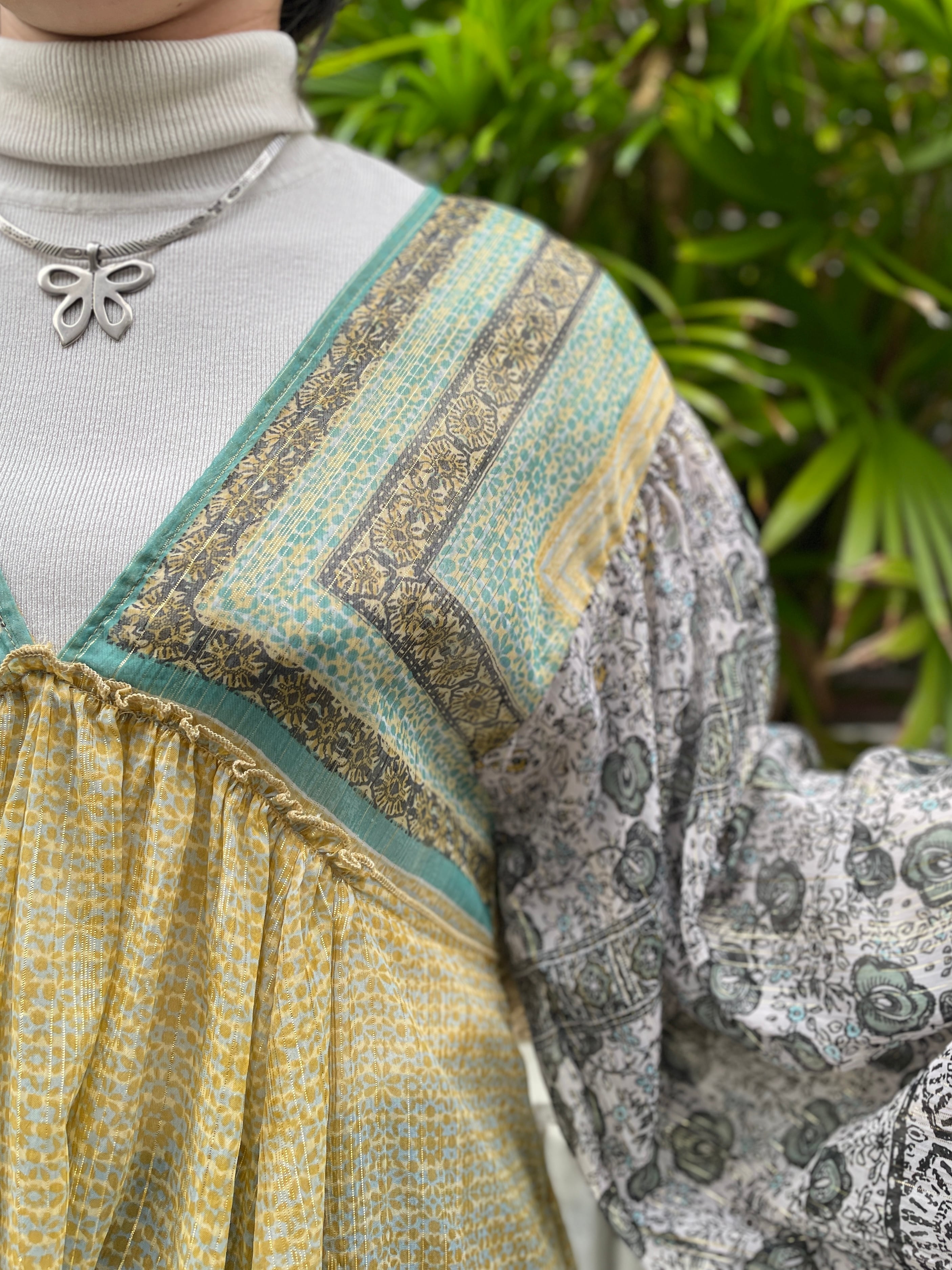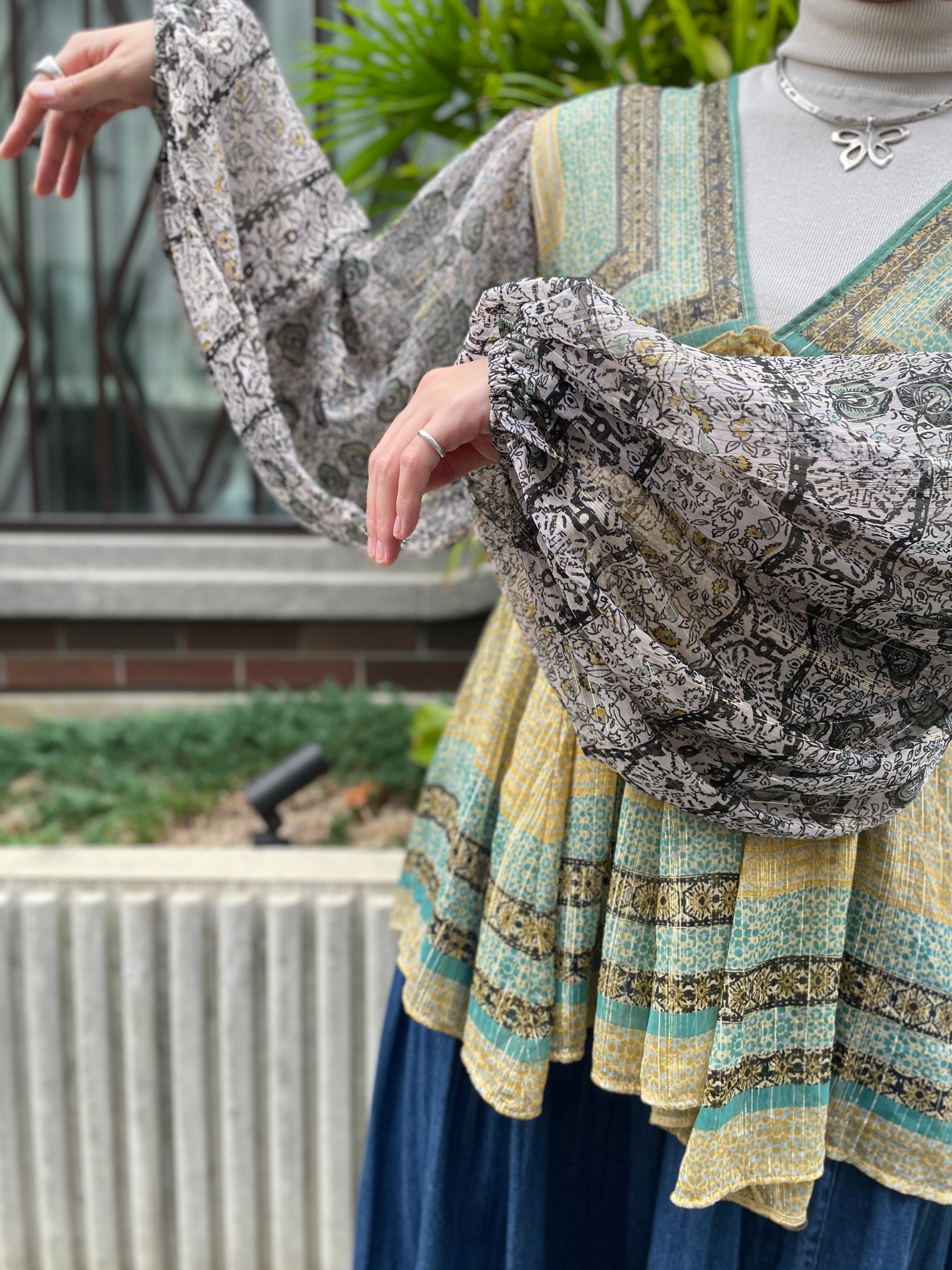 ウエストの切替箇所にはギャザーが寄っておりメリハリが出て、何より生地たっぷりなバルーンスリーブが最高です !!!