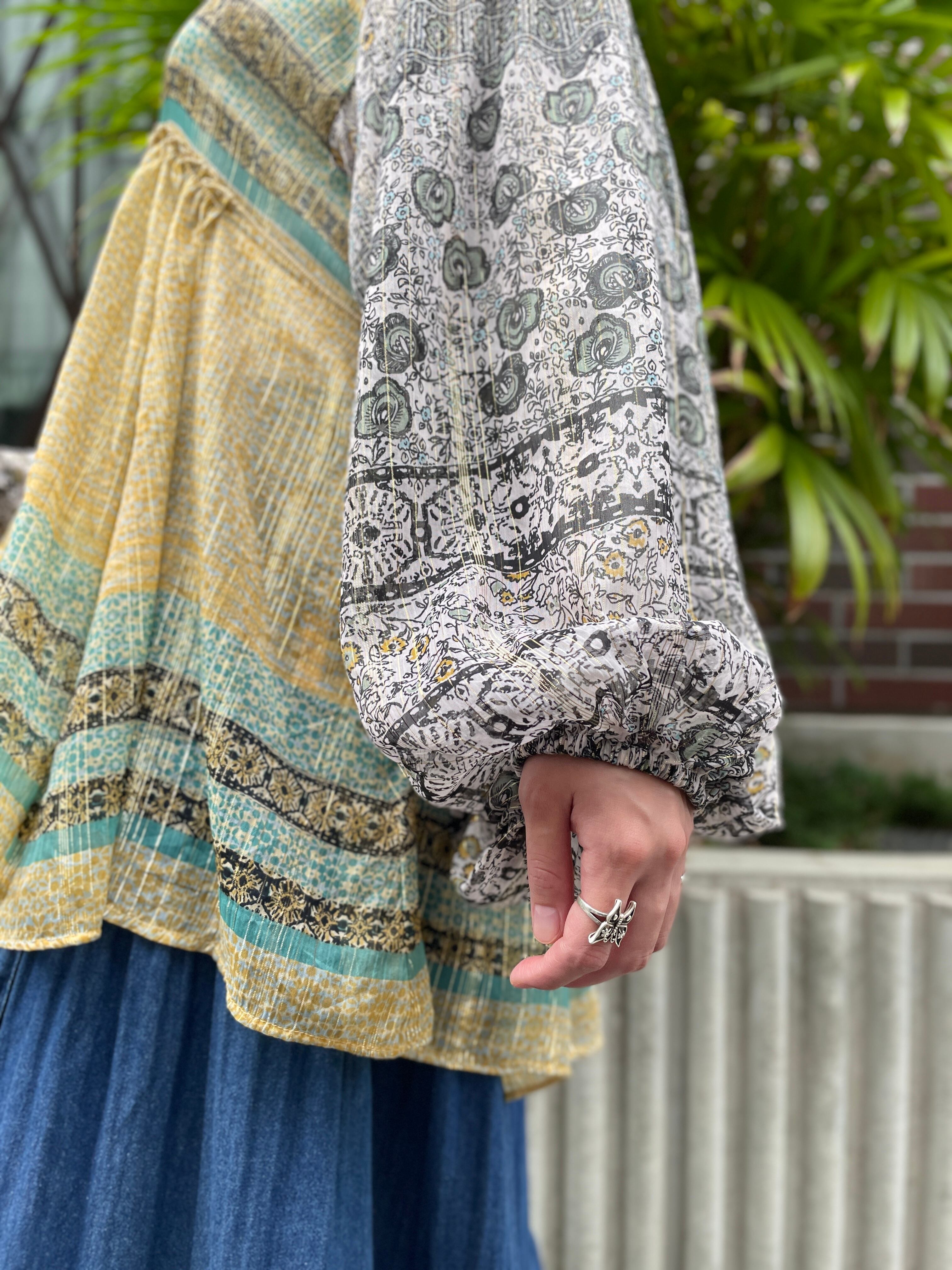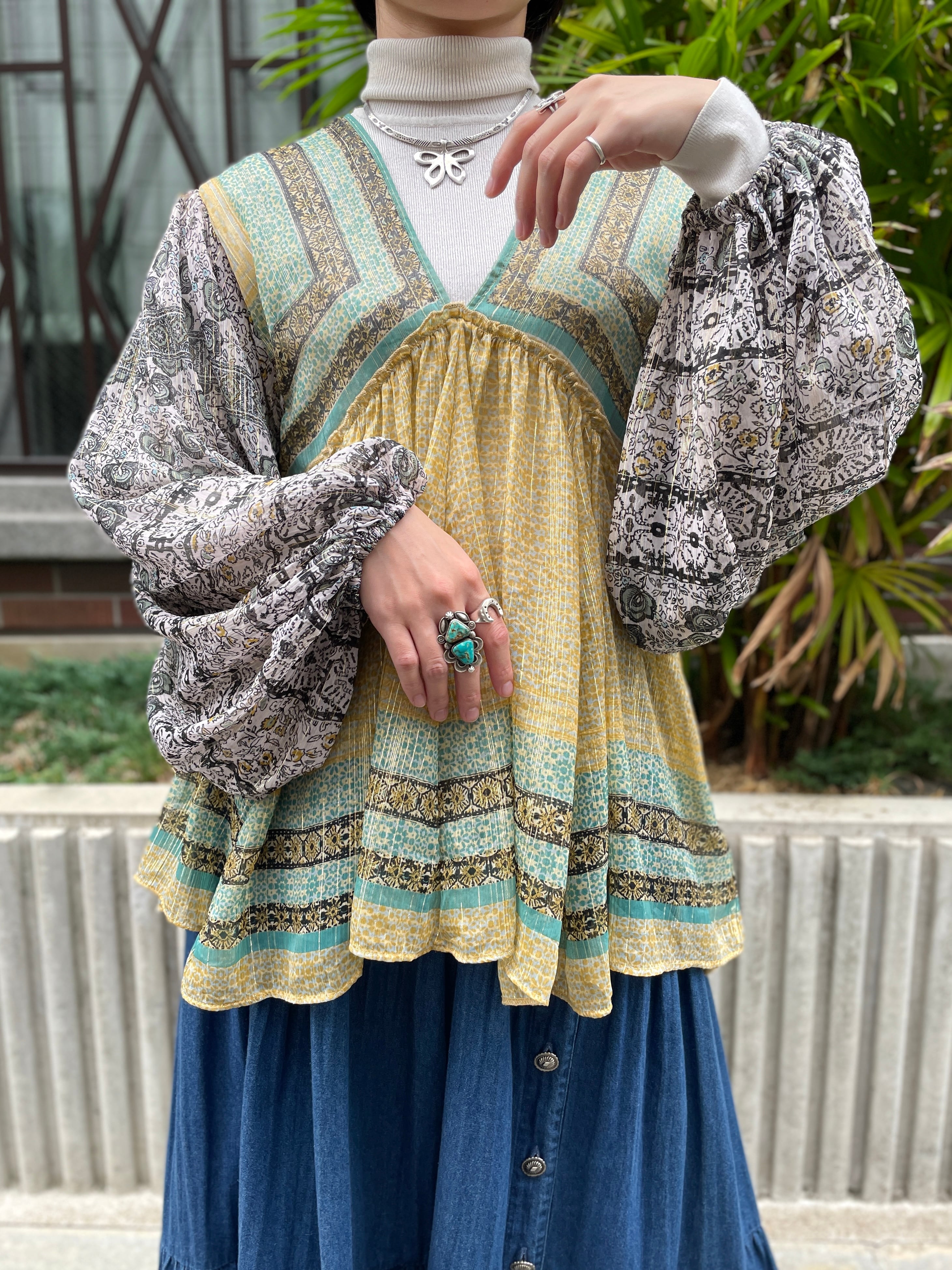 エスニック調なデザインと花柄生地がそれぞれ魅力的で、ボディにはラメ糸が施されててgood◎◎◎