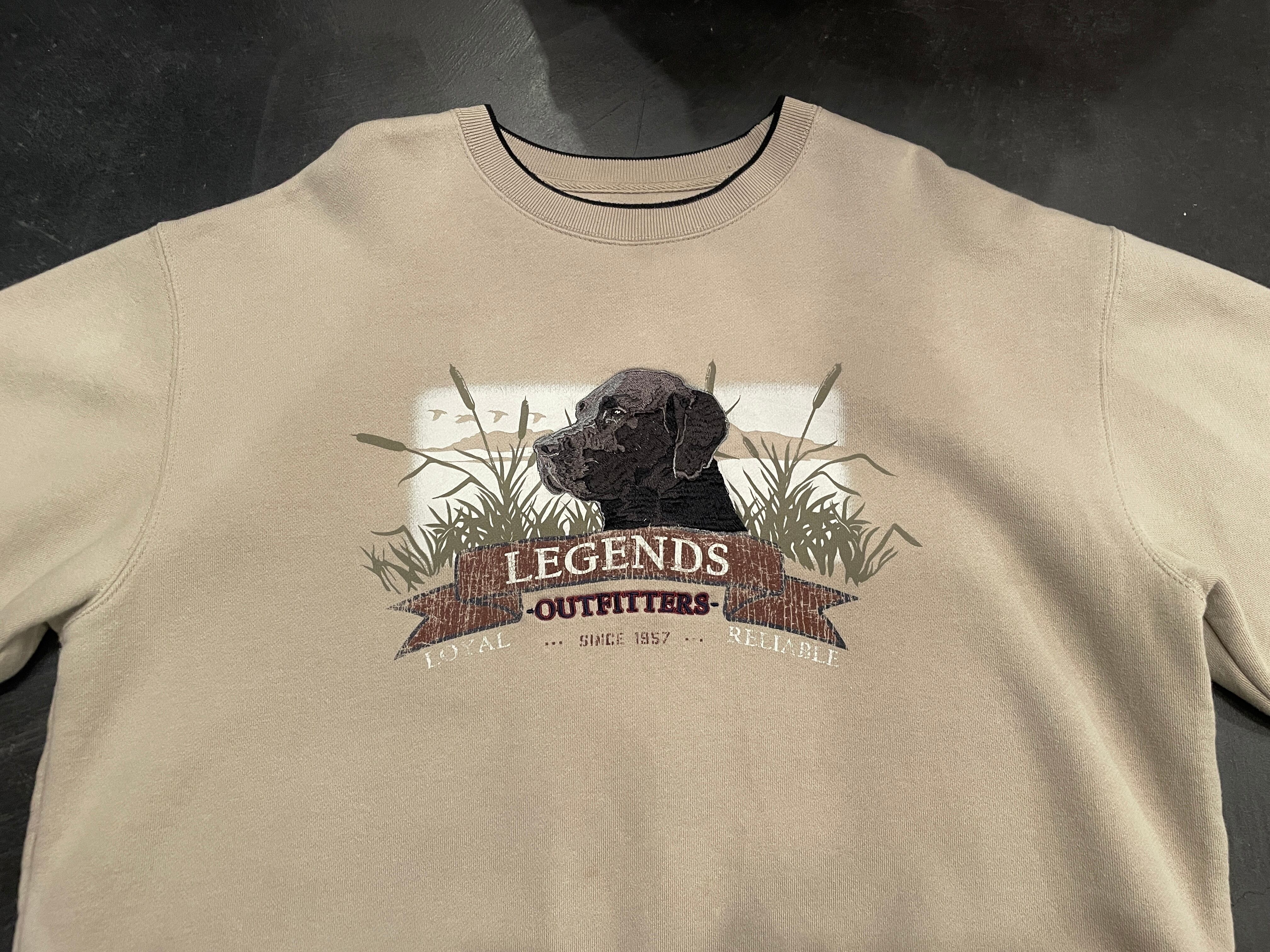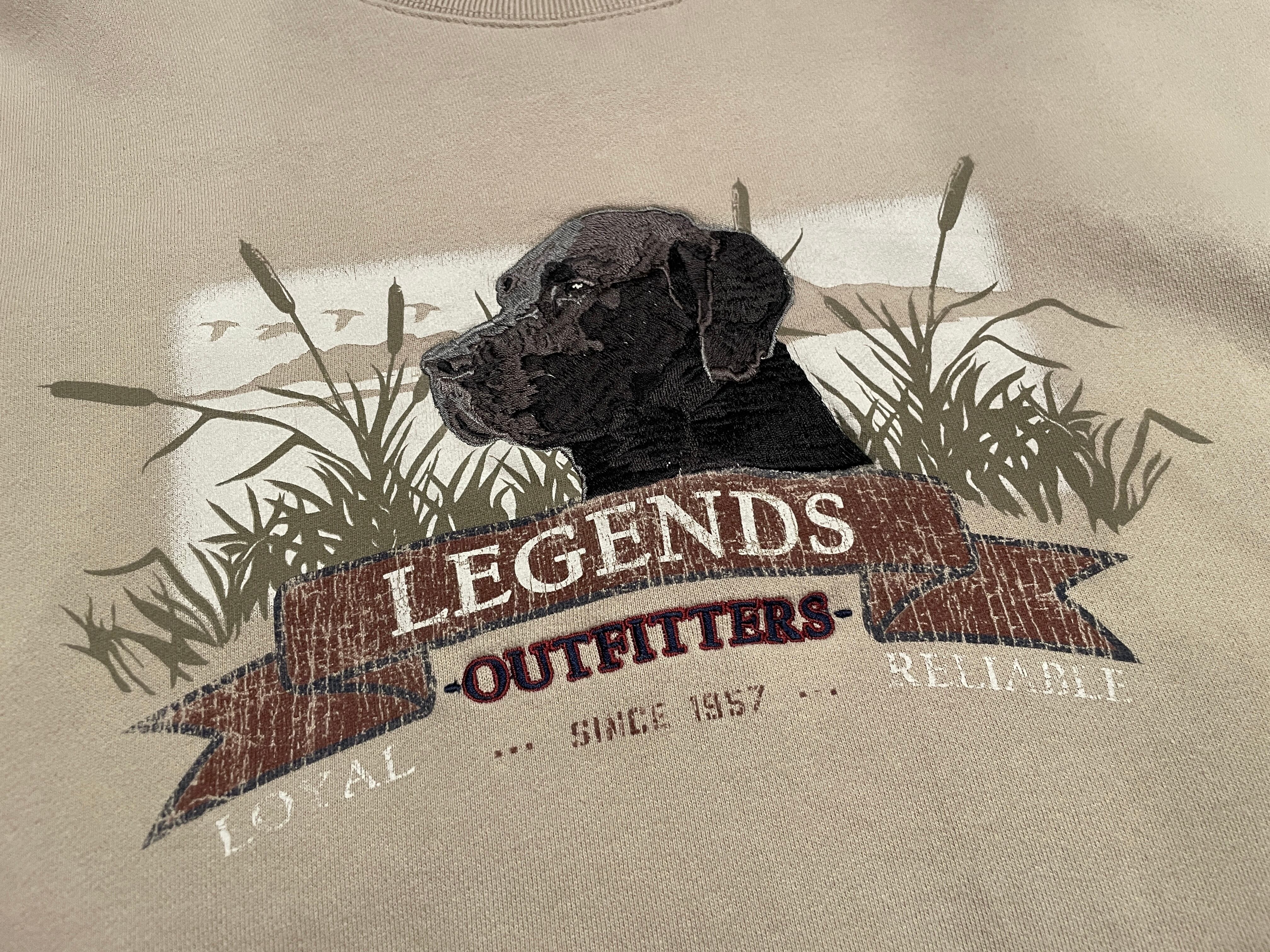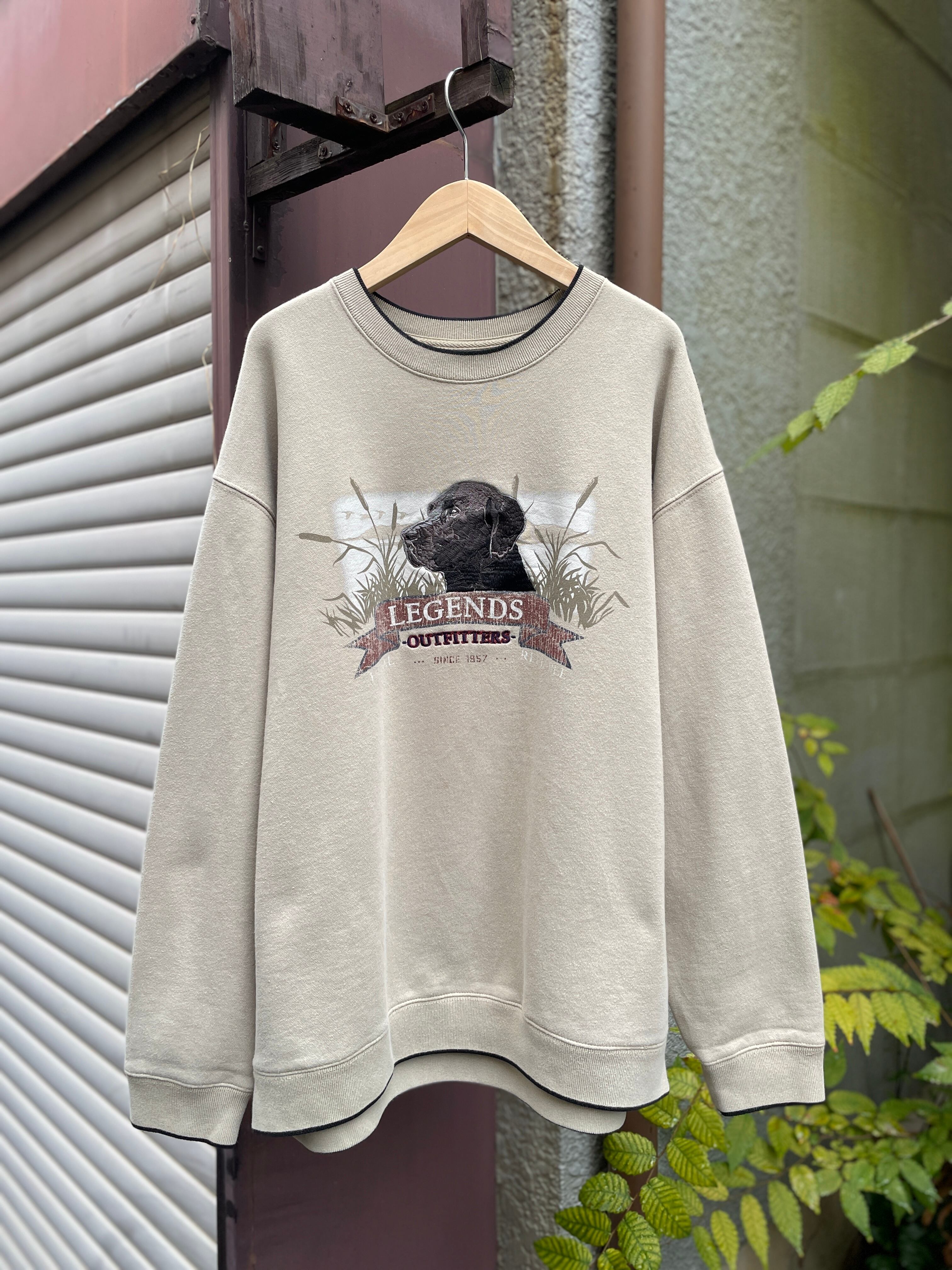 ベージュボディに刺繍のラブラドールレトリバーや Legends Outfittersのプリントなどが施された可愛らしいアイテム。