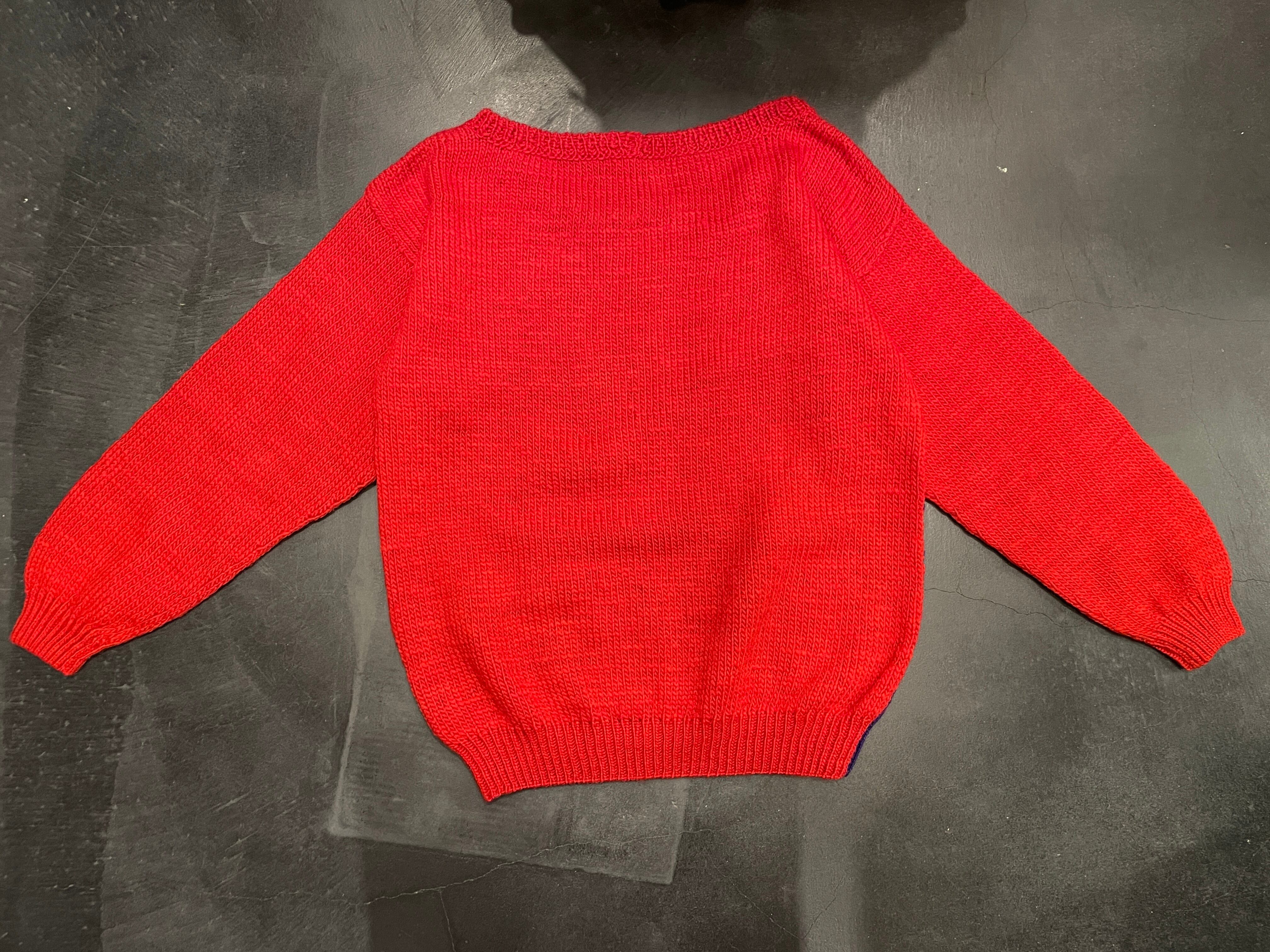 手編みならではの温もりを感じられ、配色やデザインを含めても主役になるような、現行には無いビンテージらしいグッドピースです !!!