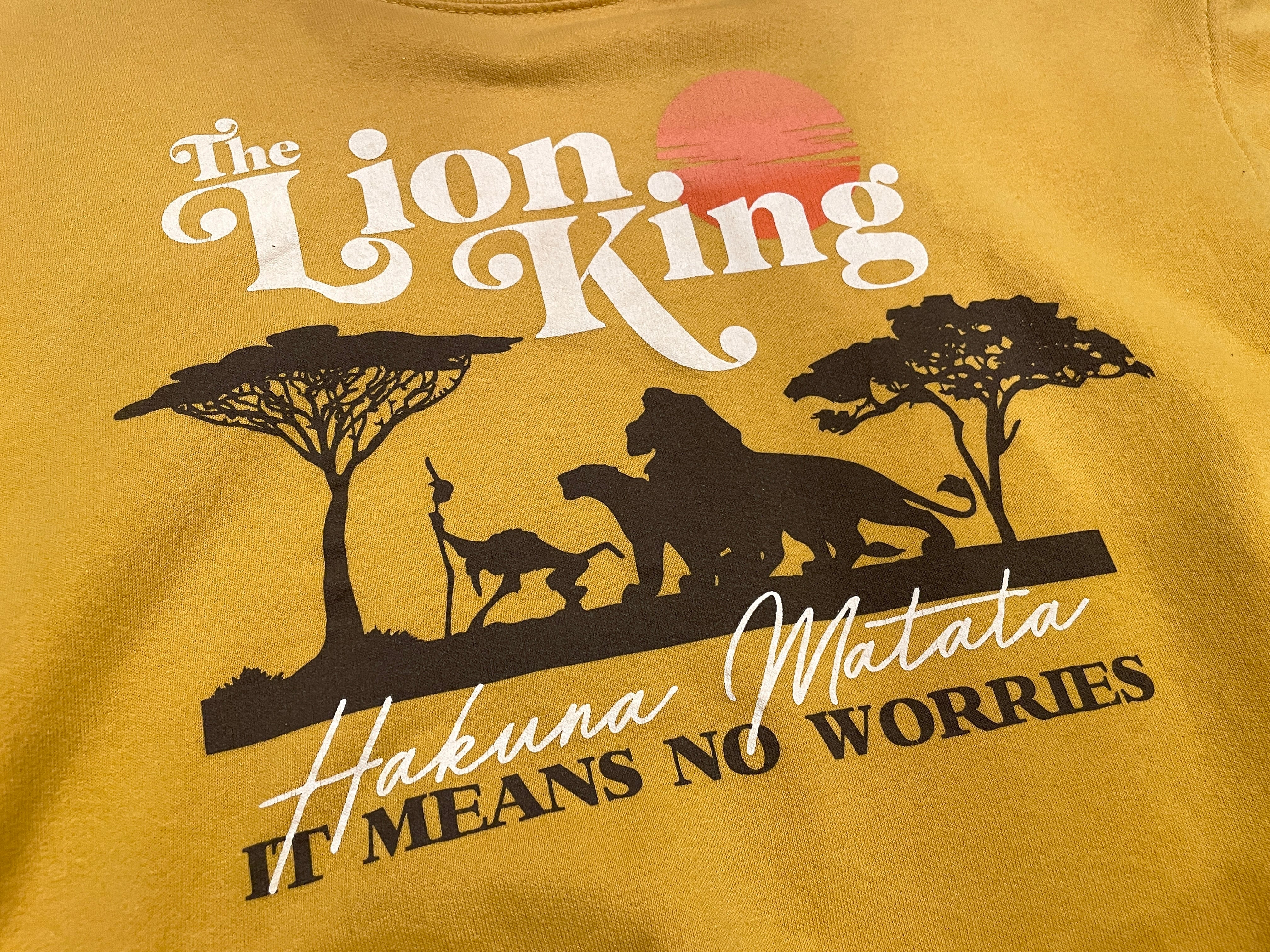 温かみのあるマスタードボディにライオンキングのプリントが施されたアイテム。
