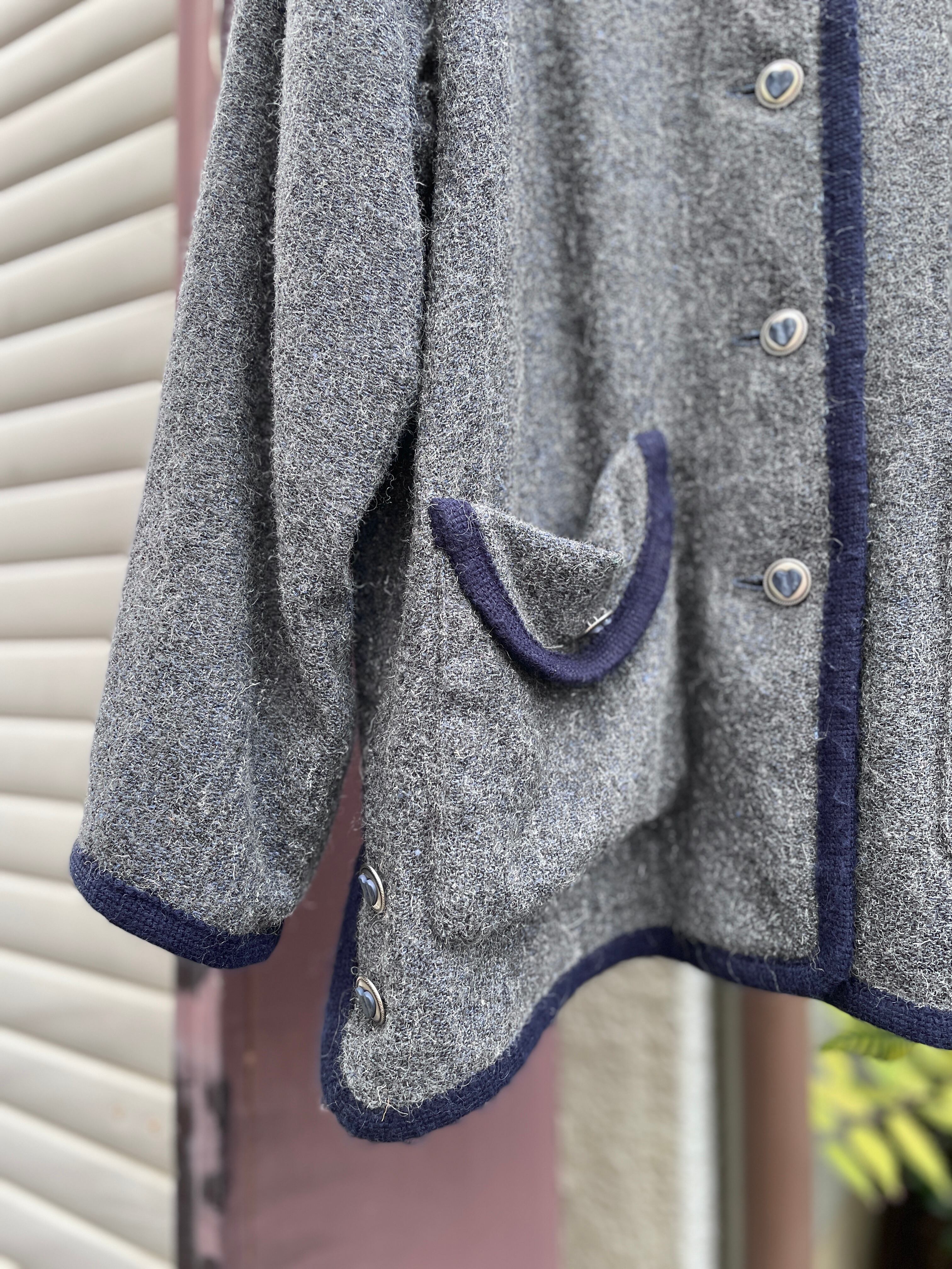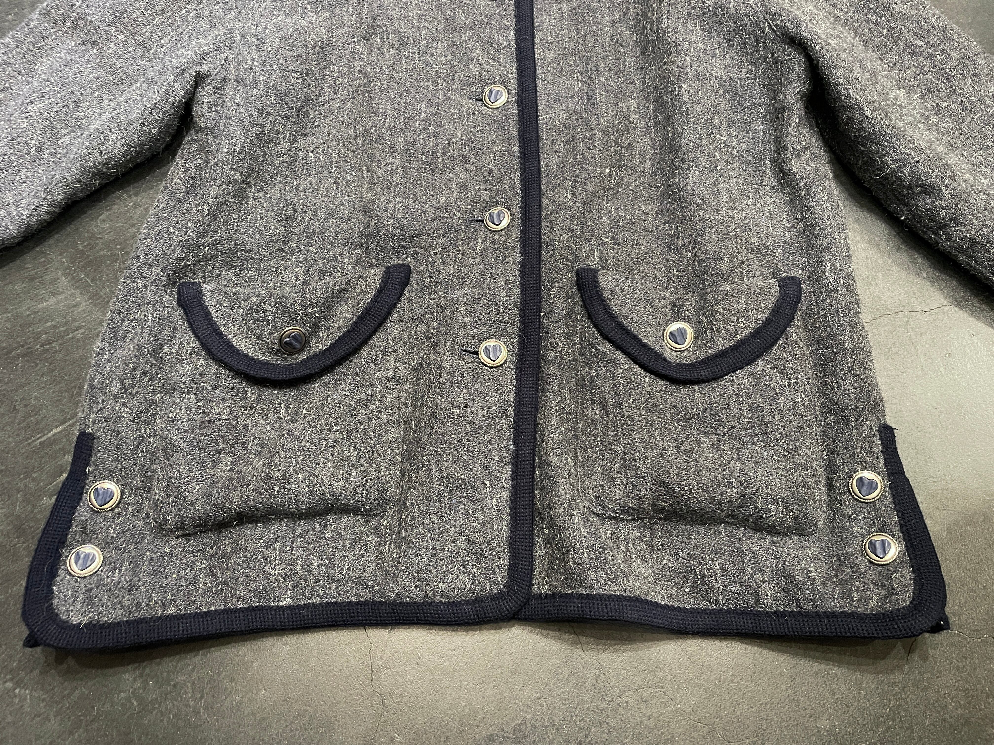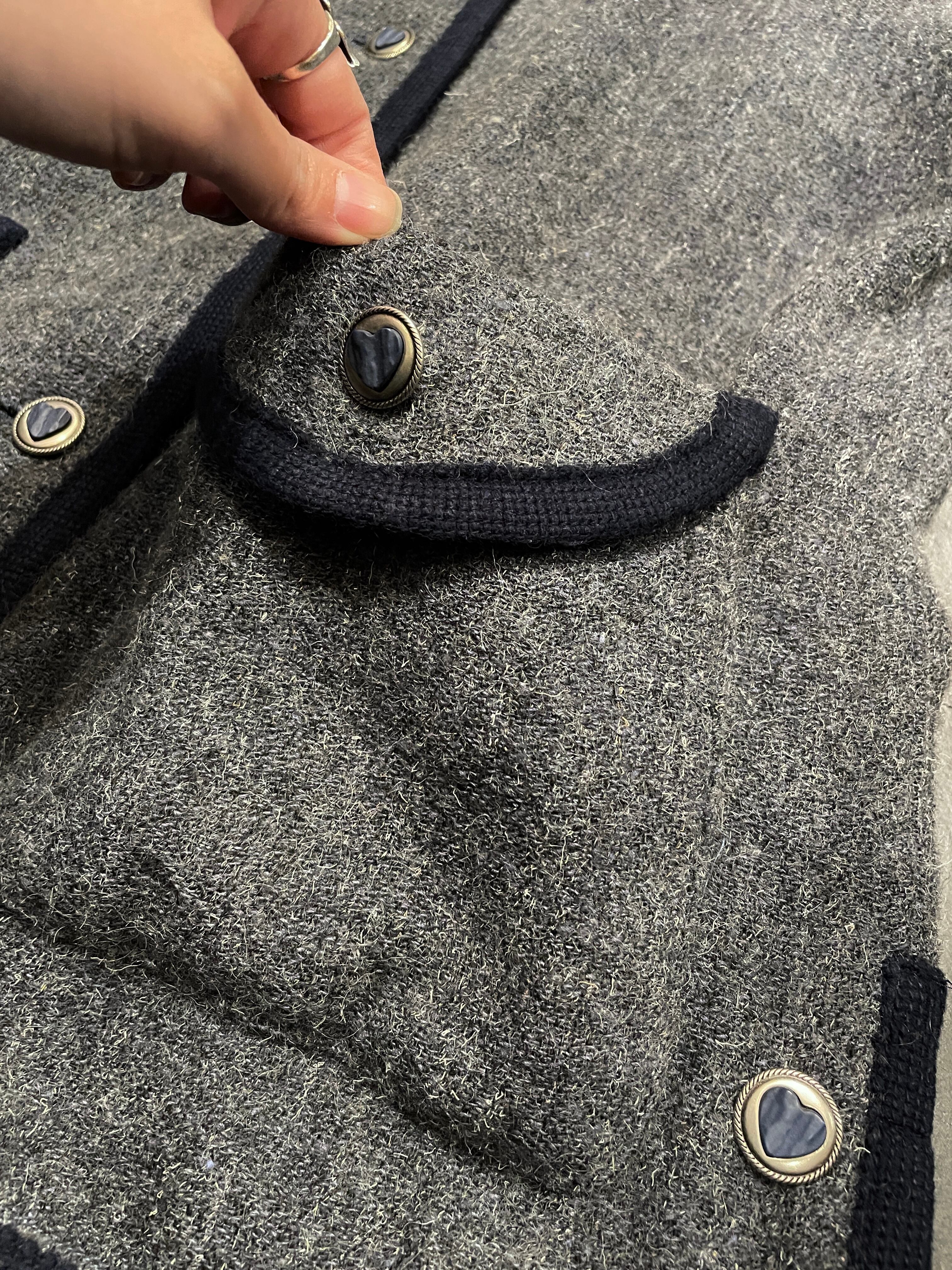 絶妙なネイビーグレーのボディにハートボタンが素敵なアイテム。