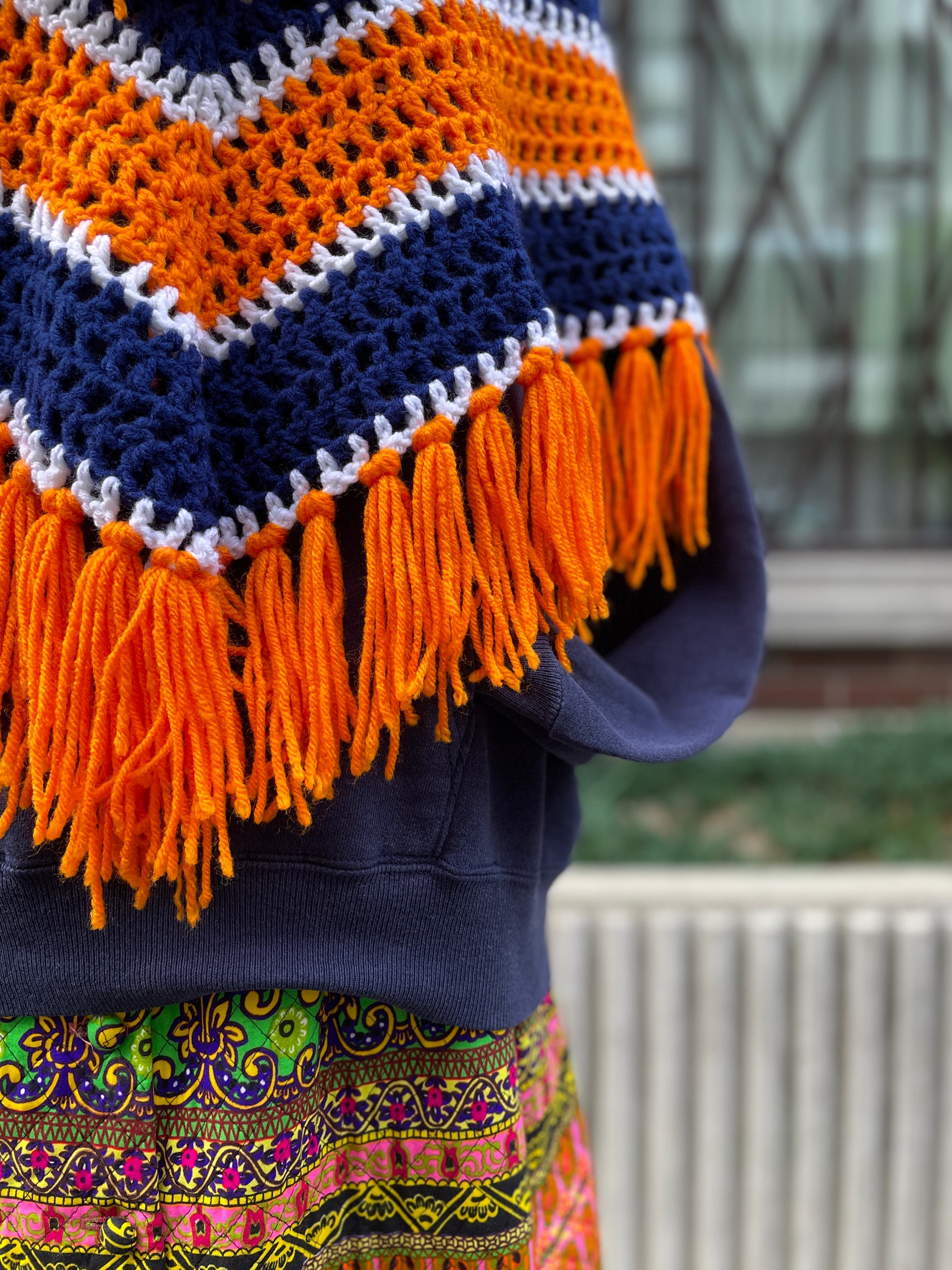 裾にはフリンジが付き、首元のポンポンも可愛らしくてgood◎◎◎