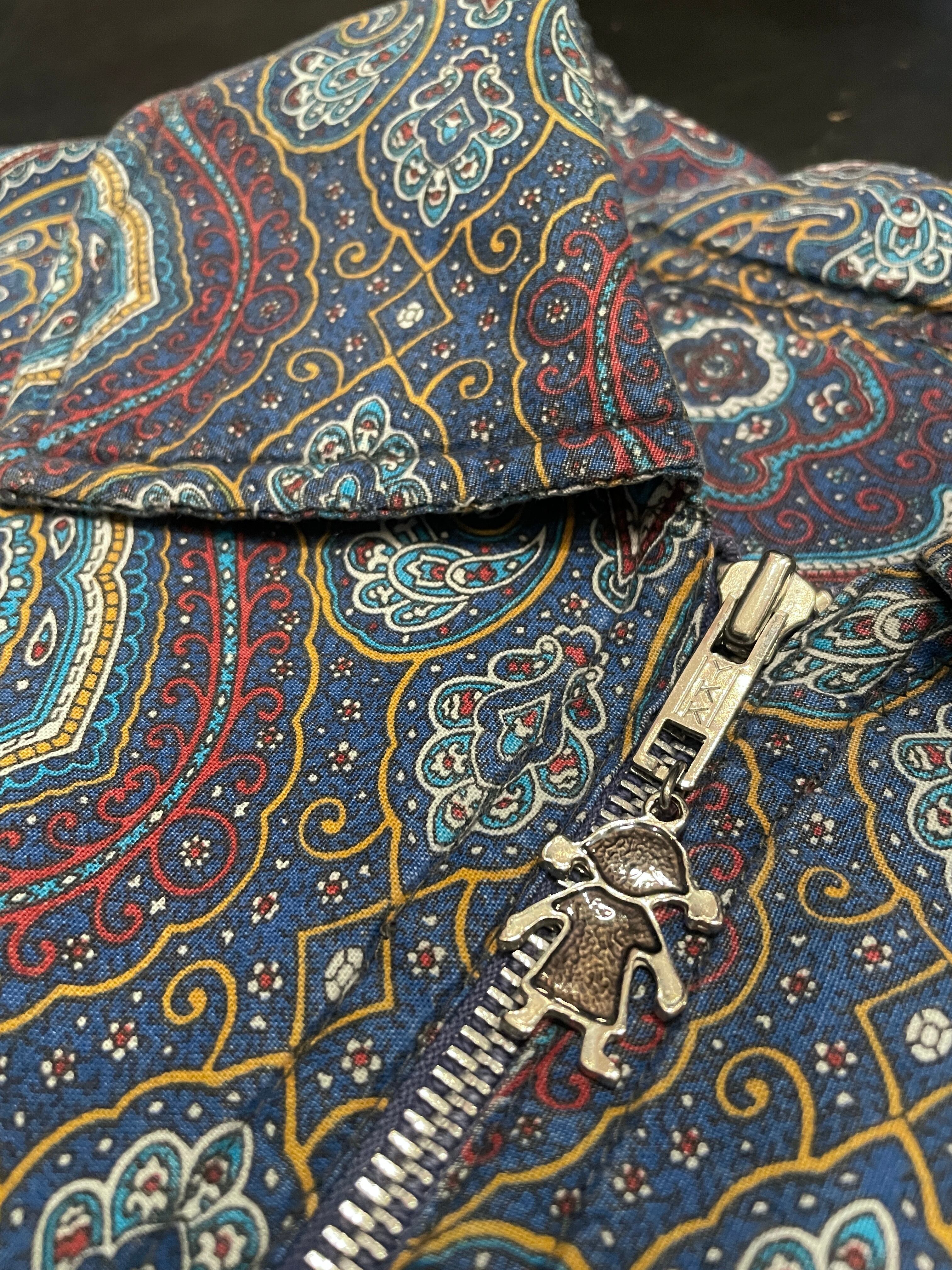 こちらは当時のハンドメイドで、ペイズリーや渋いオリエンタル調な柄使いが素敵なアイテム。