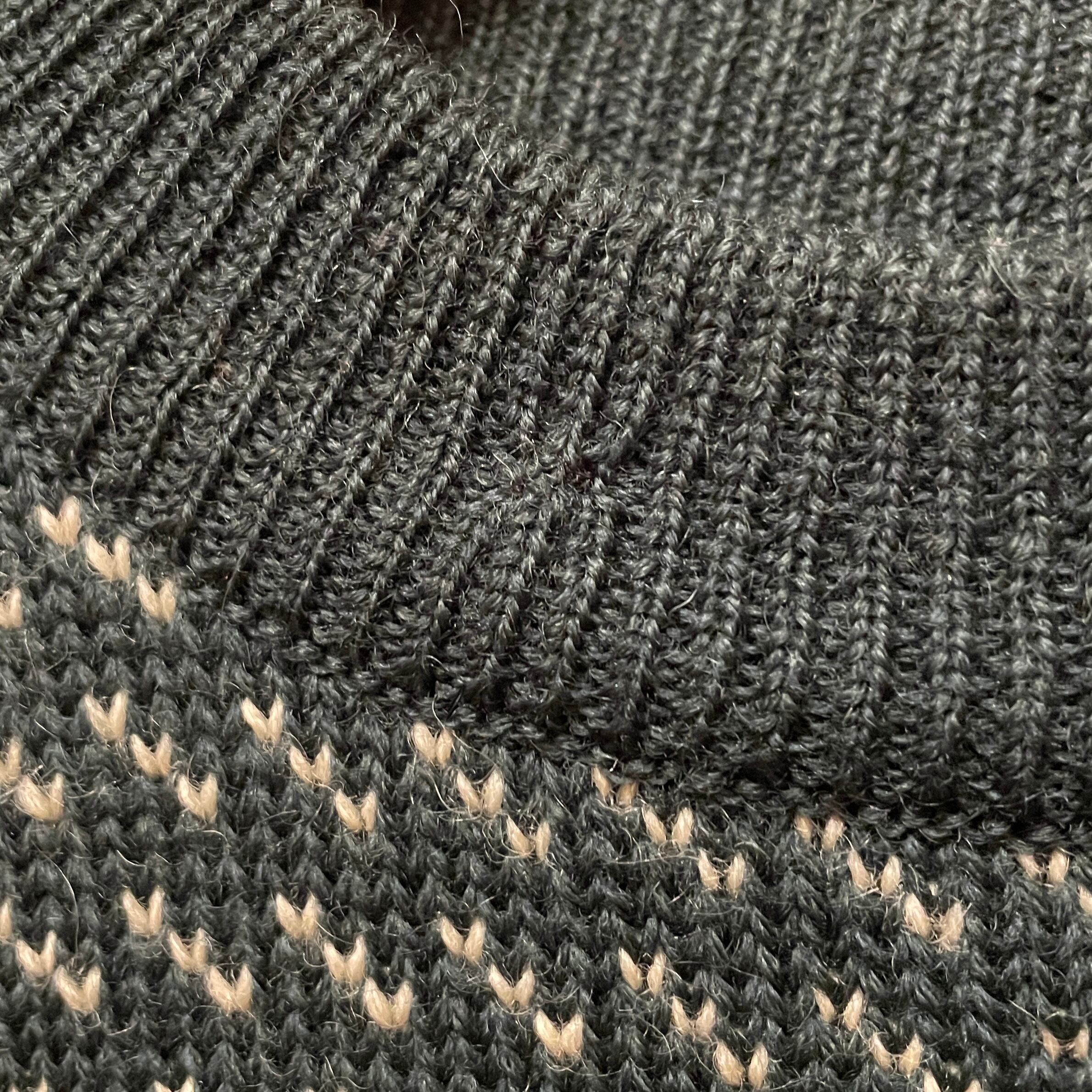 落ち着いたカラーリングで主張しすぎず、首元や袖口は太めなリブ切り替えでバランスがgood◎◎◎