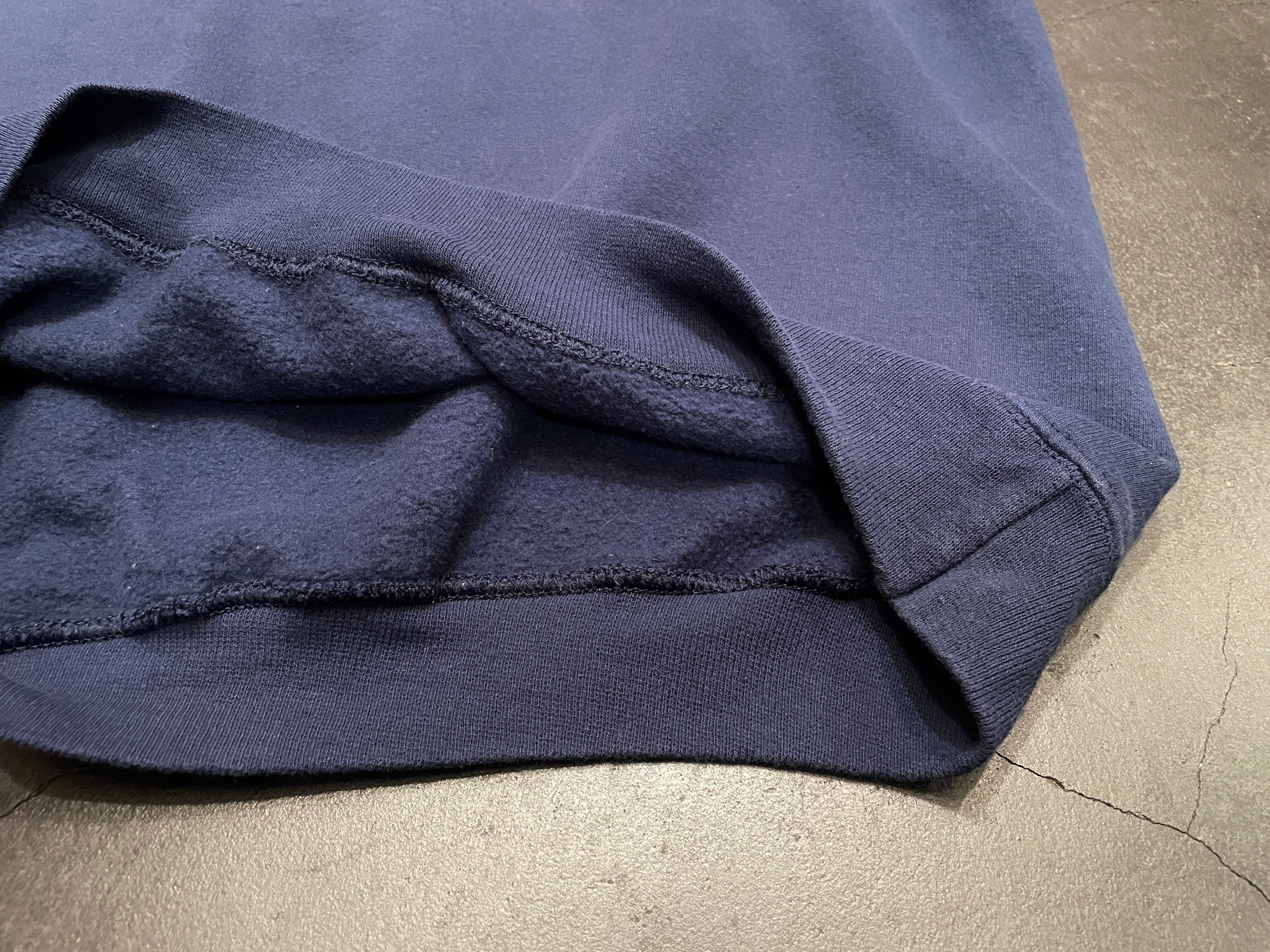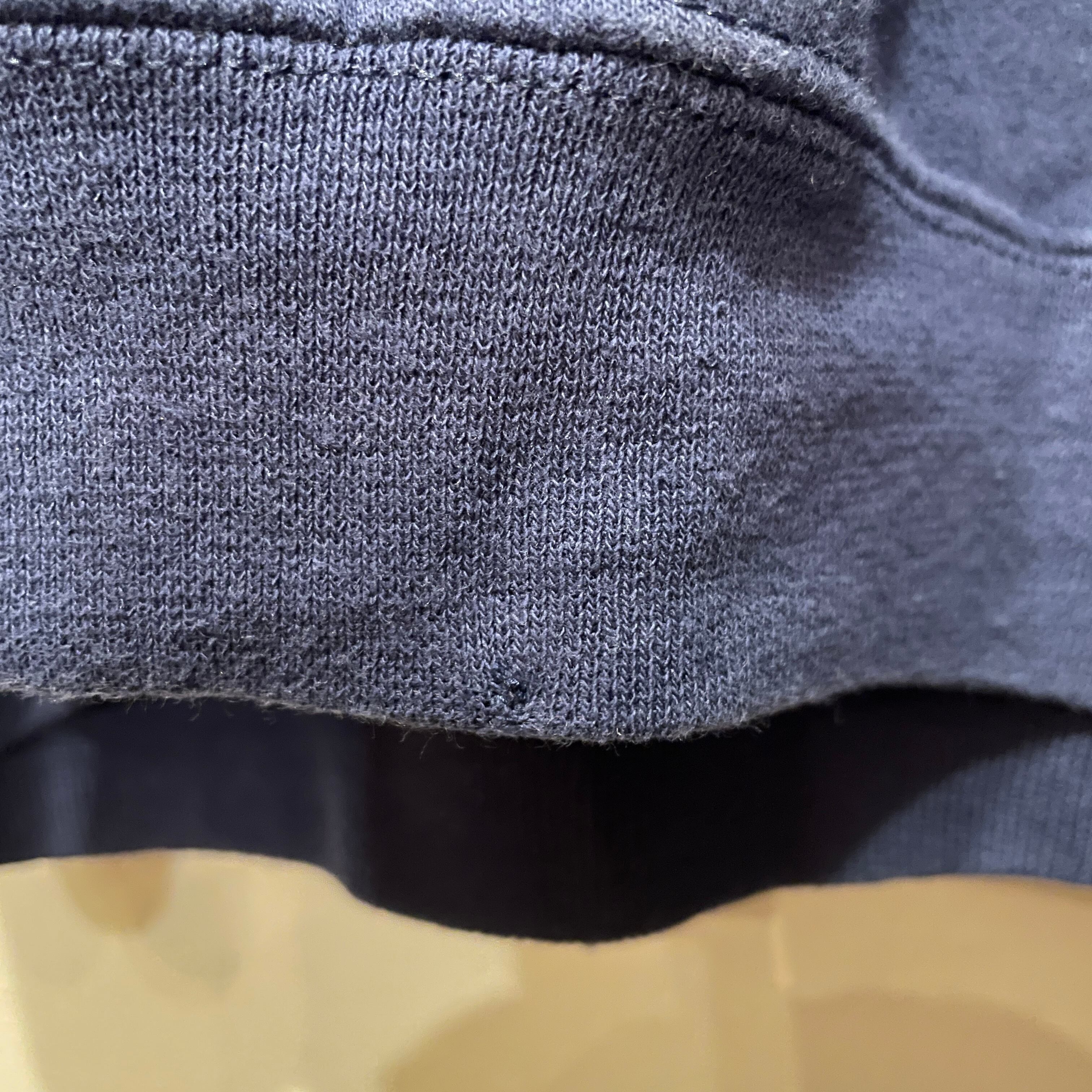 ロゴ付近と背中に色ムラ、フロント裾にリペア跡。