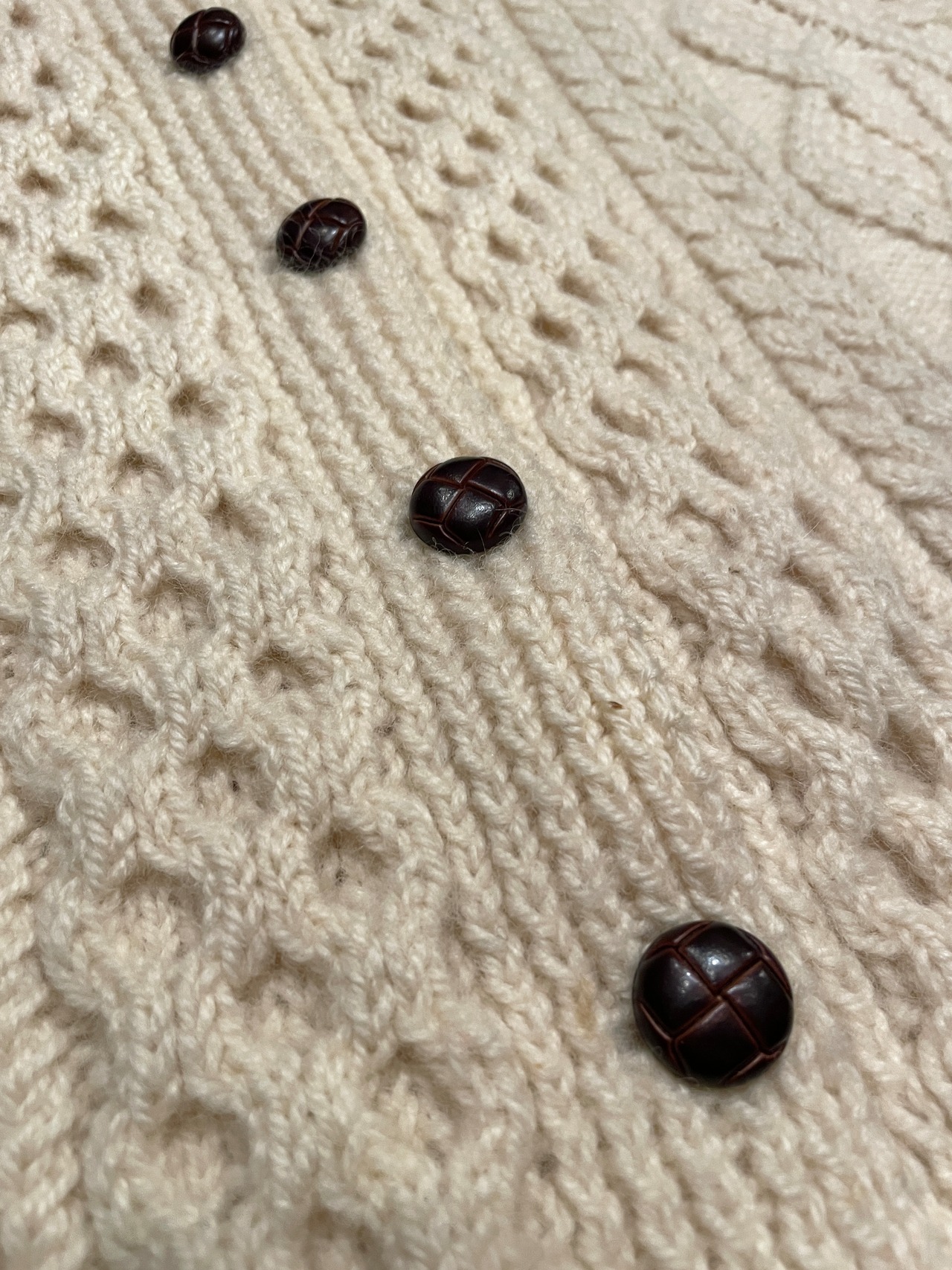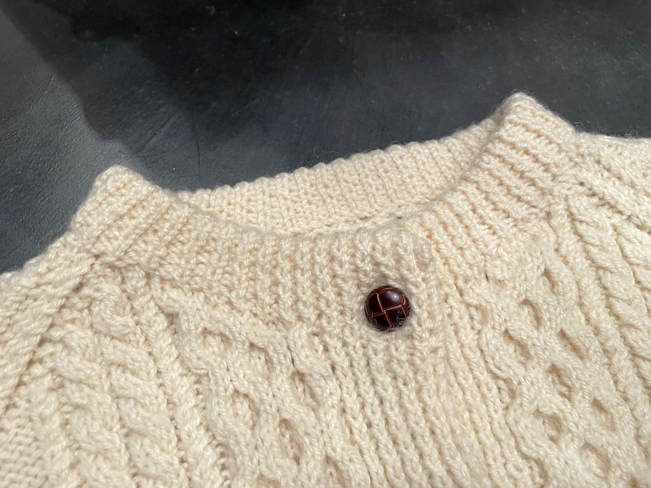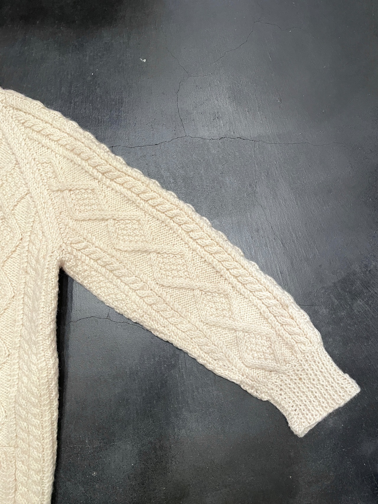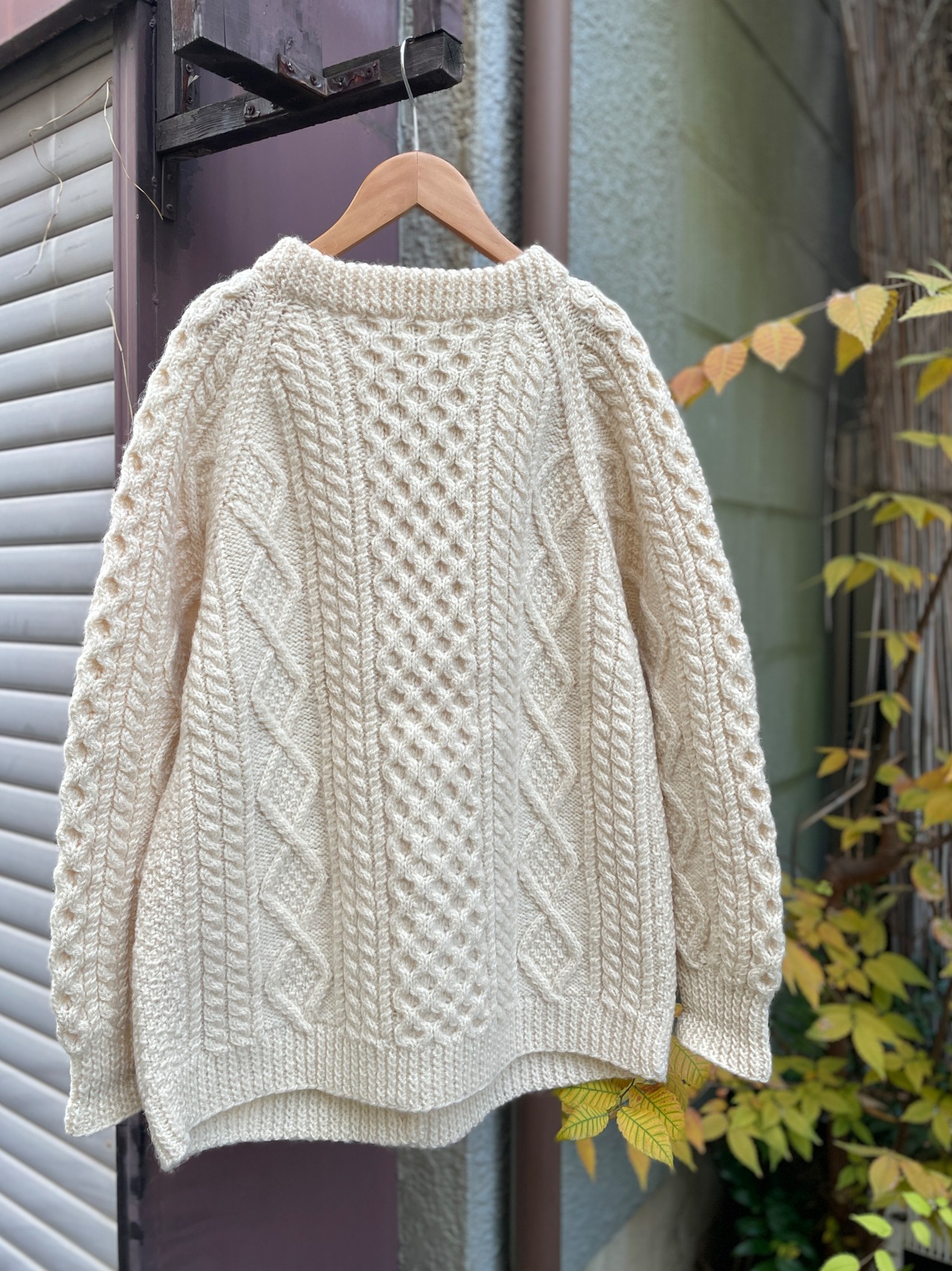 ラグランスリーブのすっきりした肩周りに、編み柄が繋がるように計算されたポケット位置もこだわりを感じてgood◎◎◎