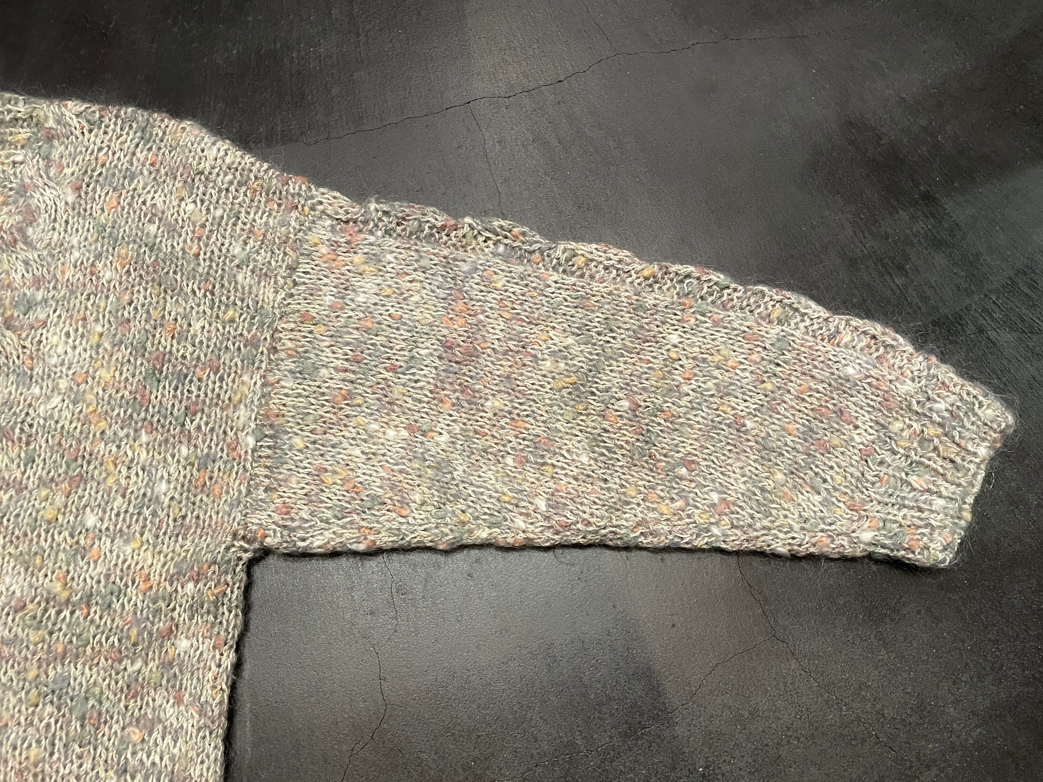 こちらは当時のハンドニットアイテムで、グレー×ホワイトのボディに、カラフルなパステルのミックスカラーが可愛らしく、立体感のあるぽこぽこした部分もgood !!!