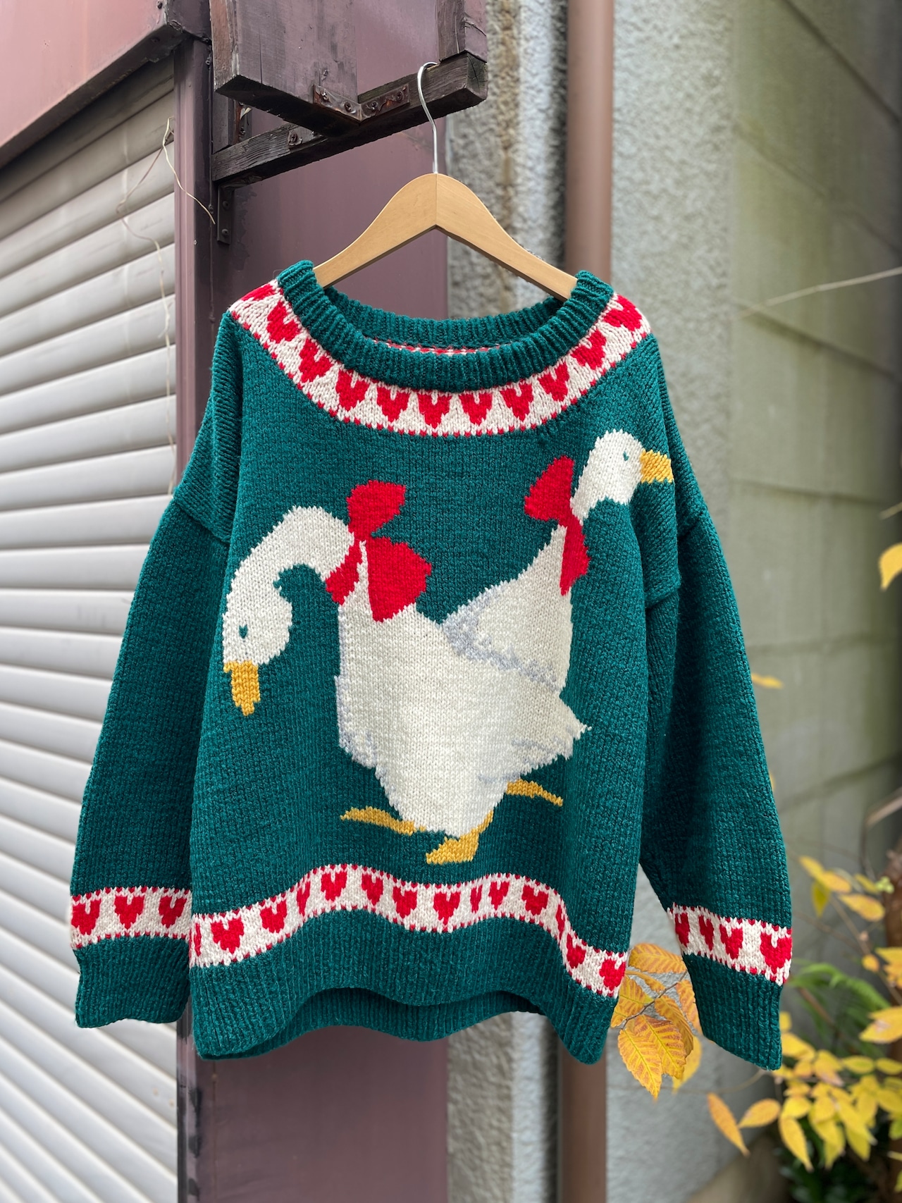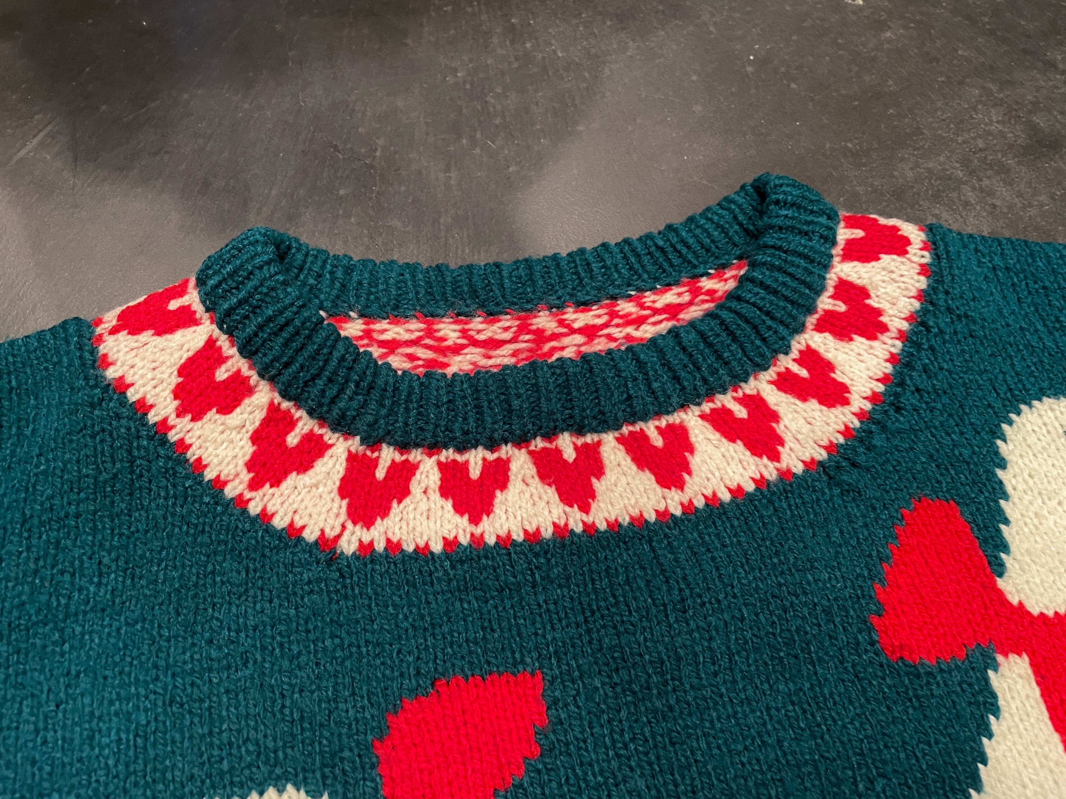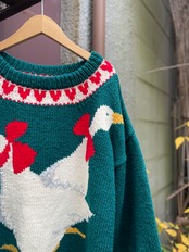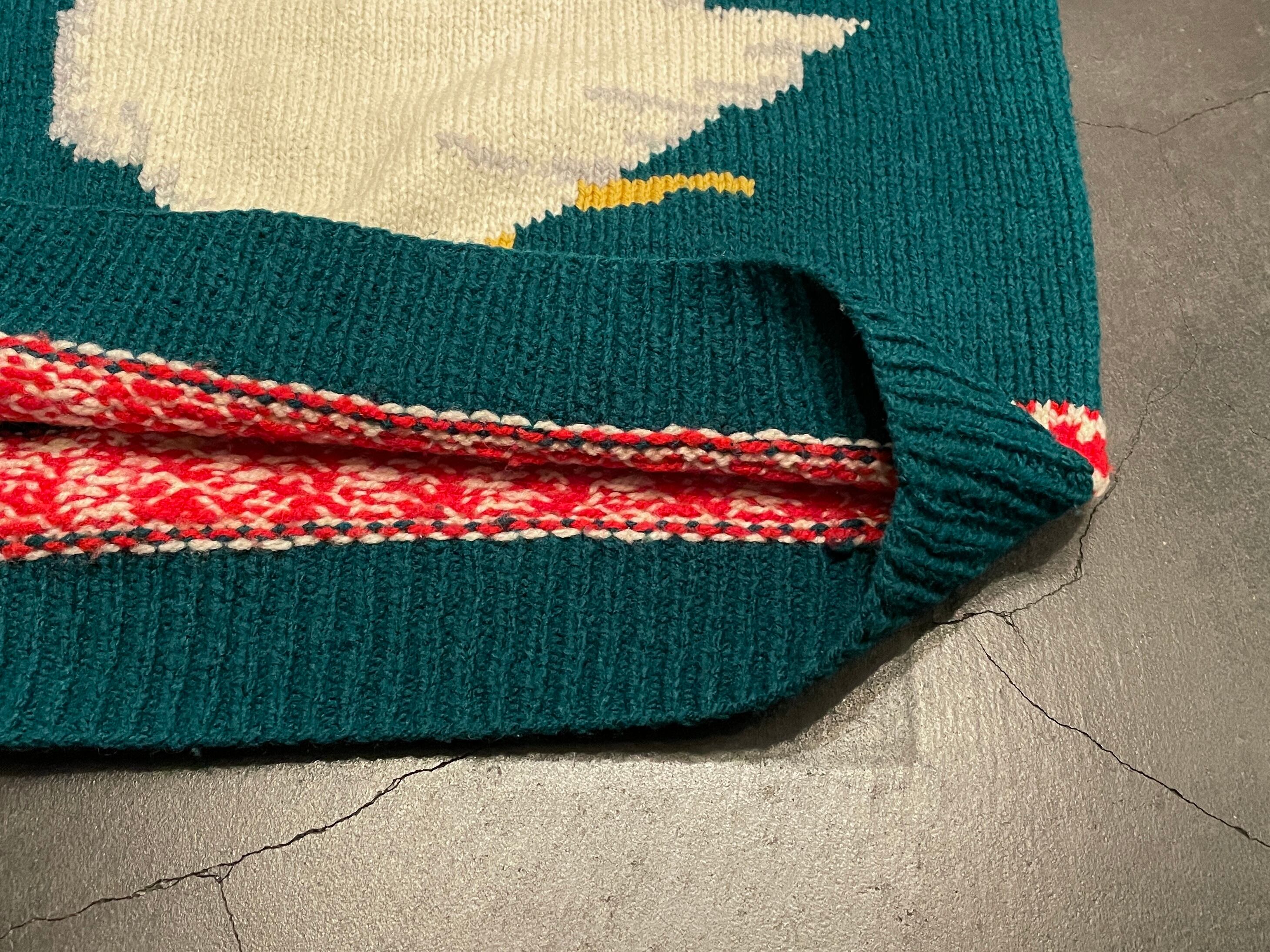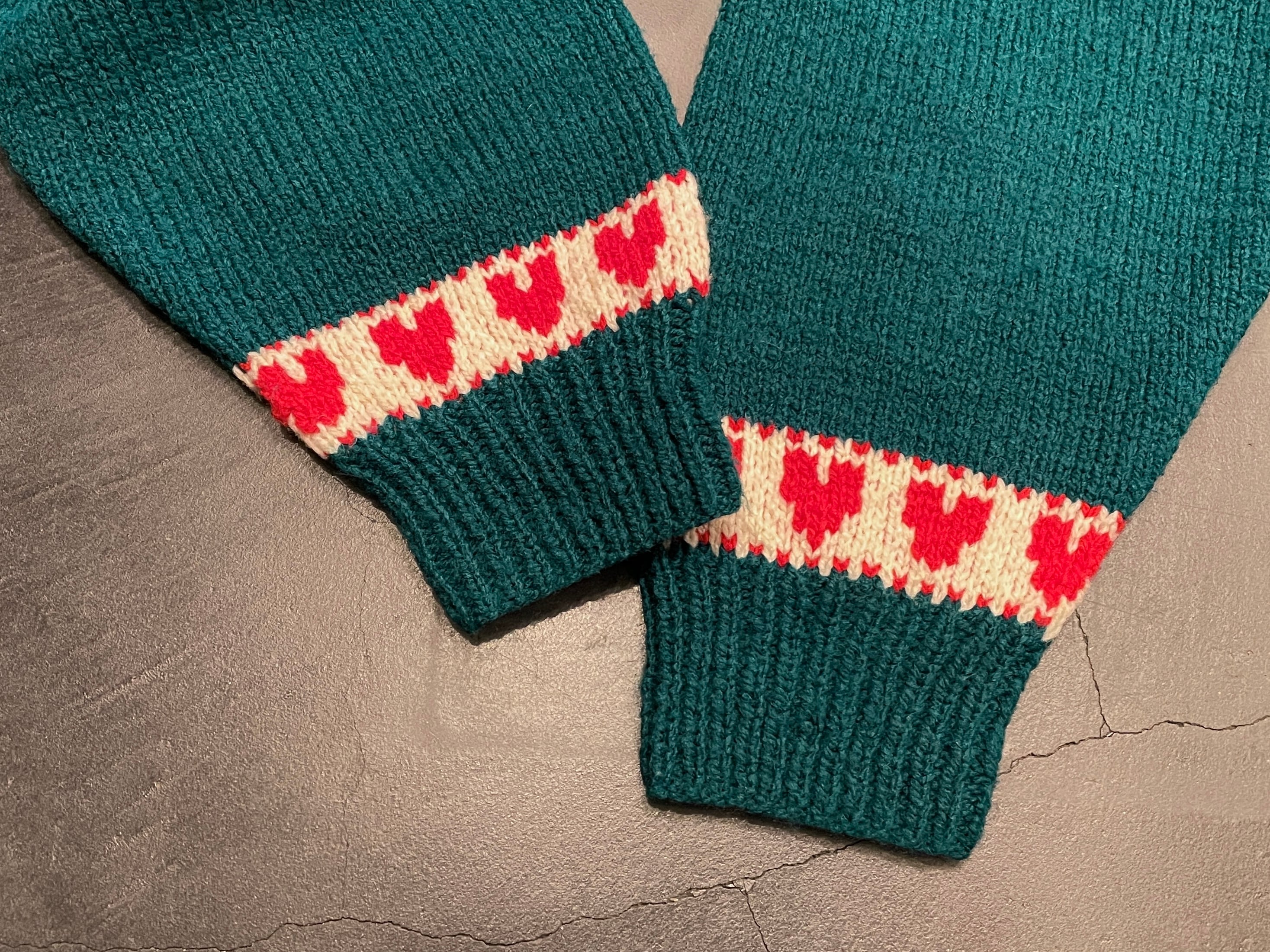 手編みならではの温もりを感じられ、配色やデザインを含めても主役になるような、現行には無いビンテージらしいグッドピースです !!!