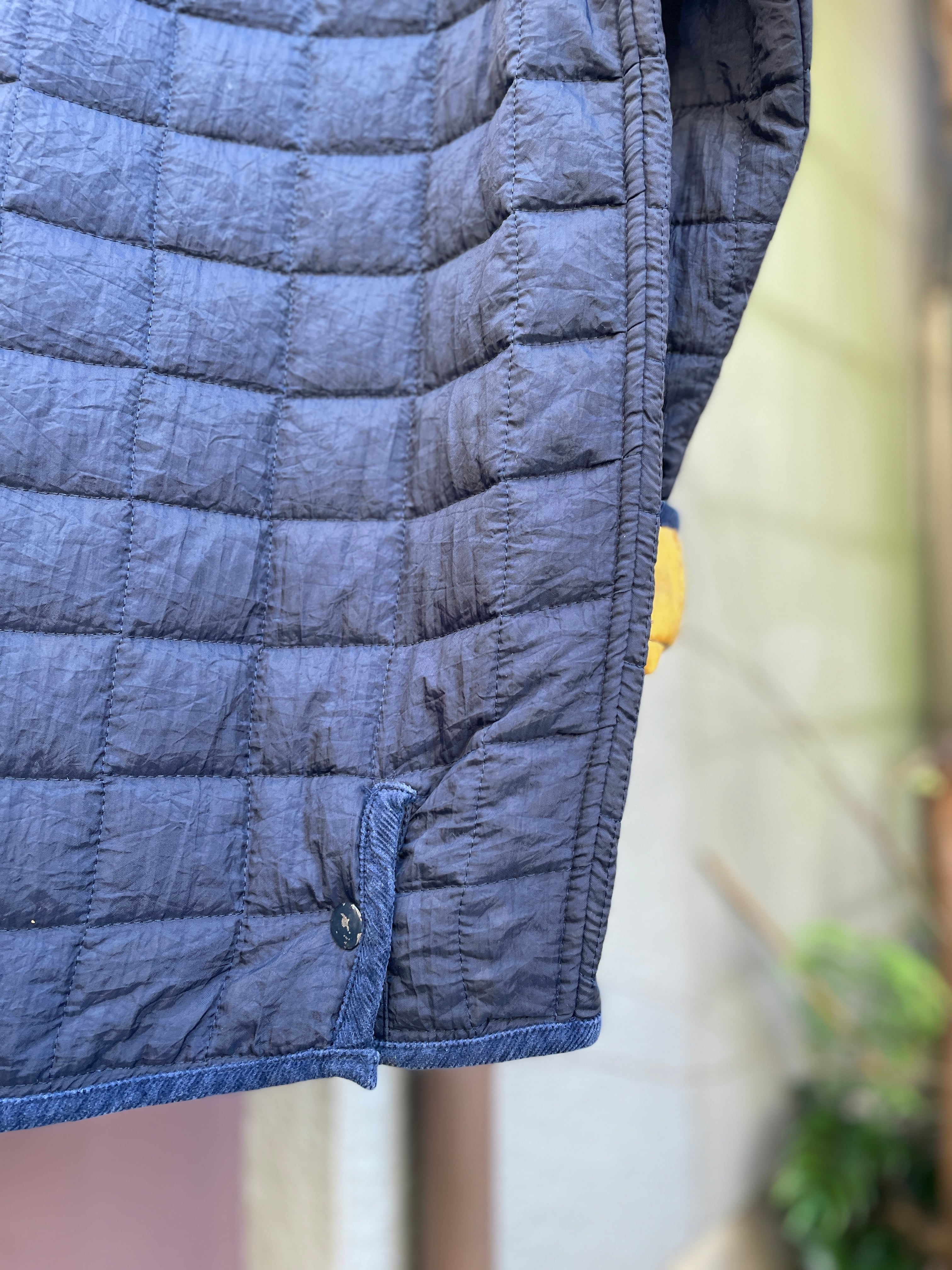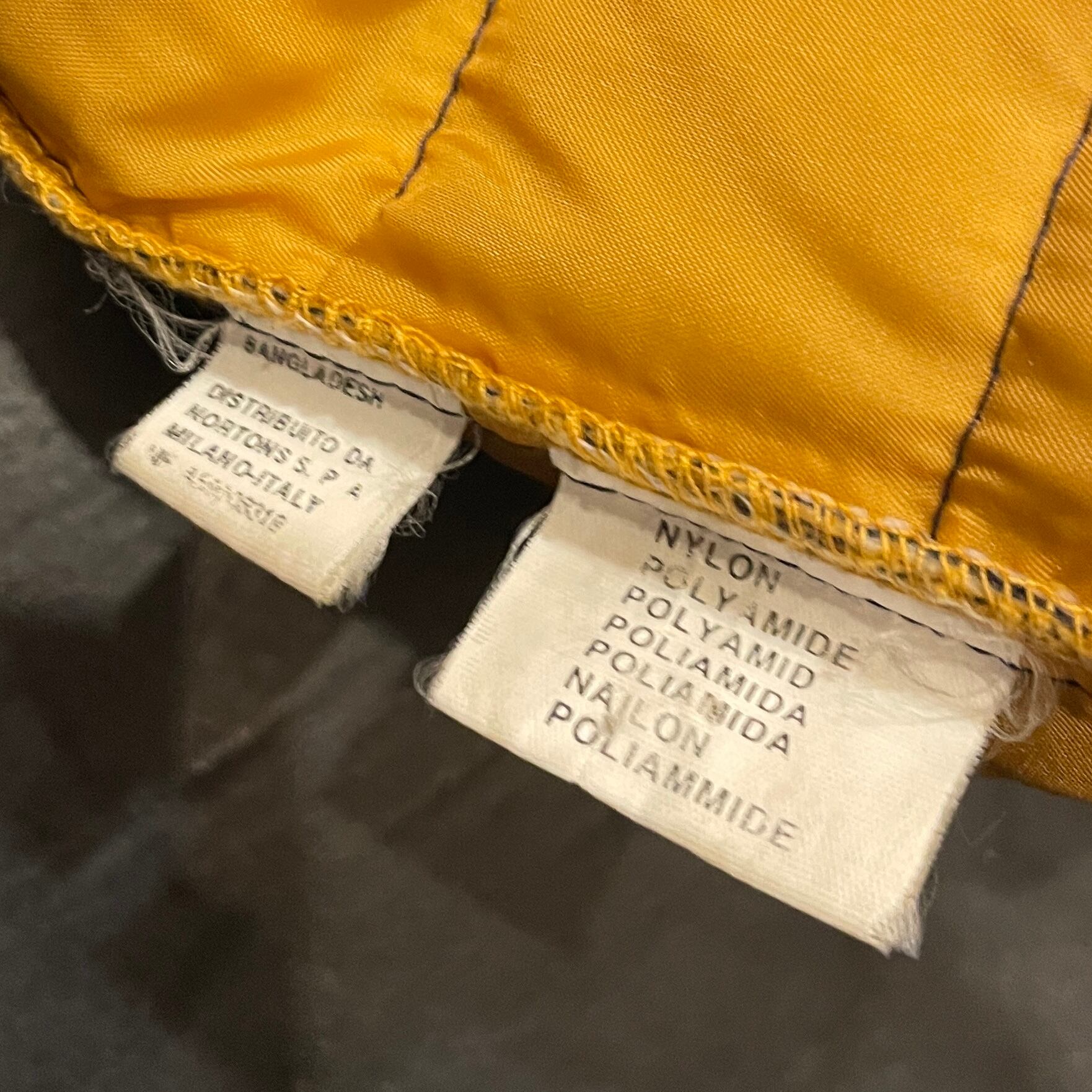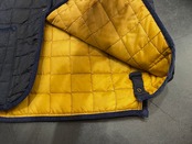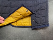 ネイビーボディに裏地のマスタードカラーが効いたアイテム。