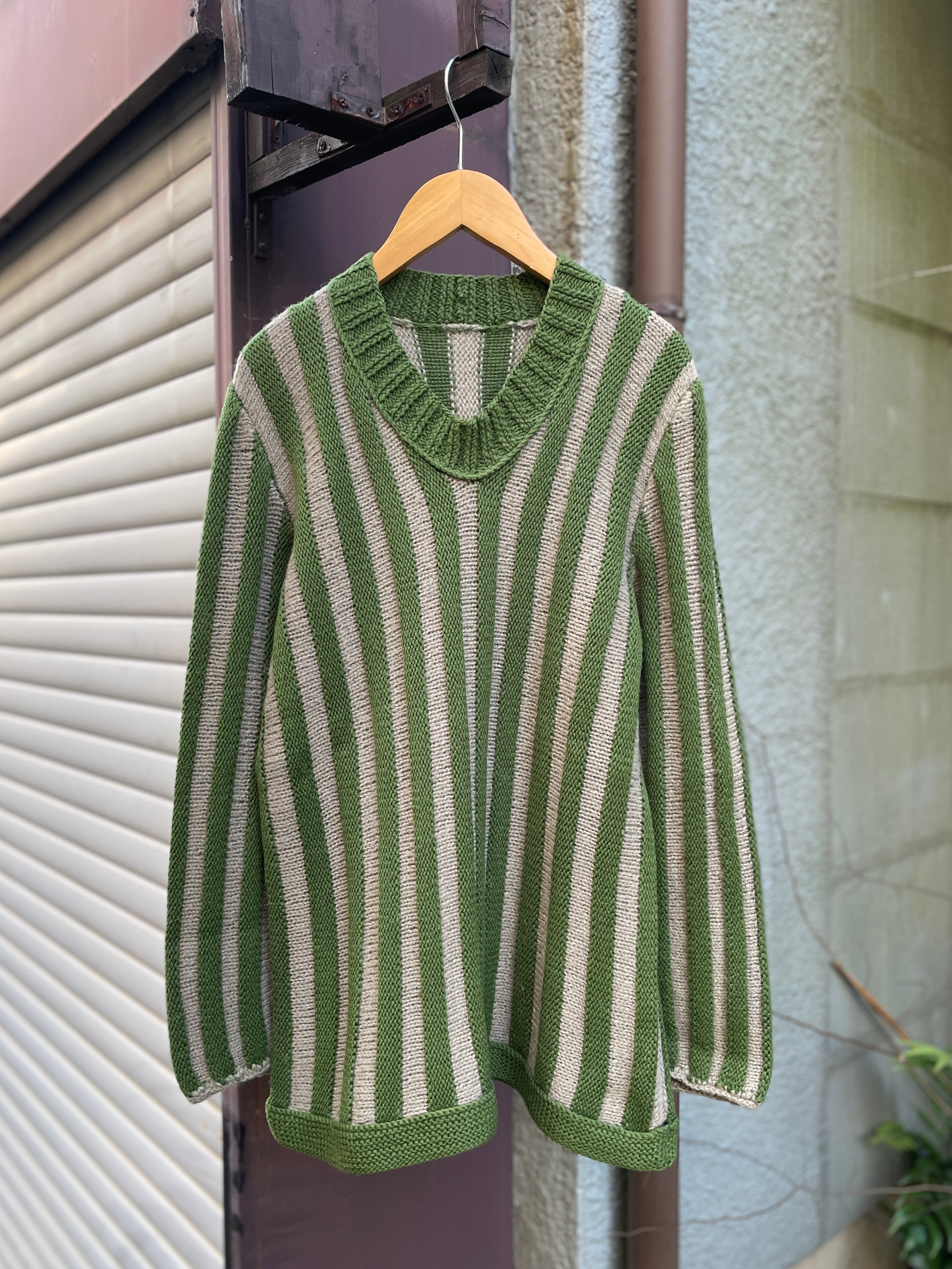 くすんだ抹茶×ベージュのストライプデザインが素敵なアイテム。