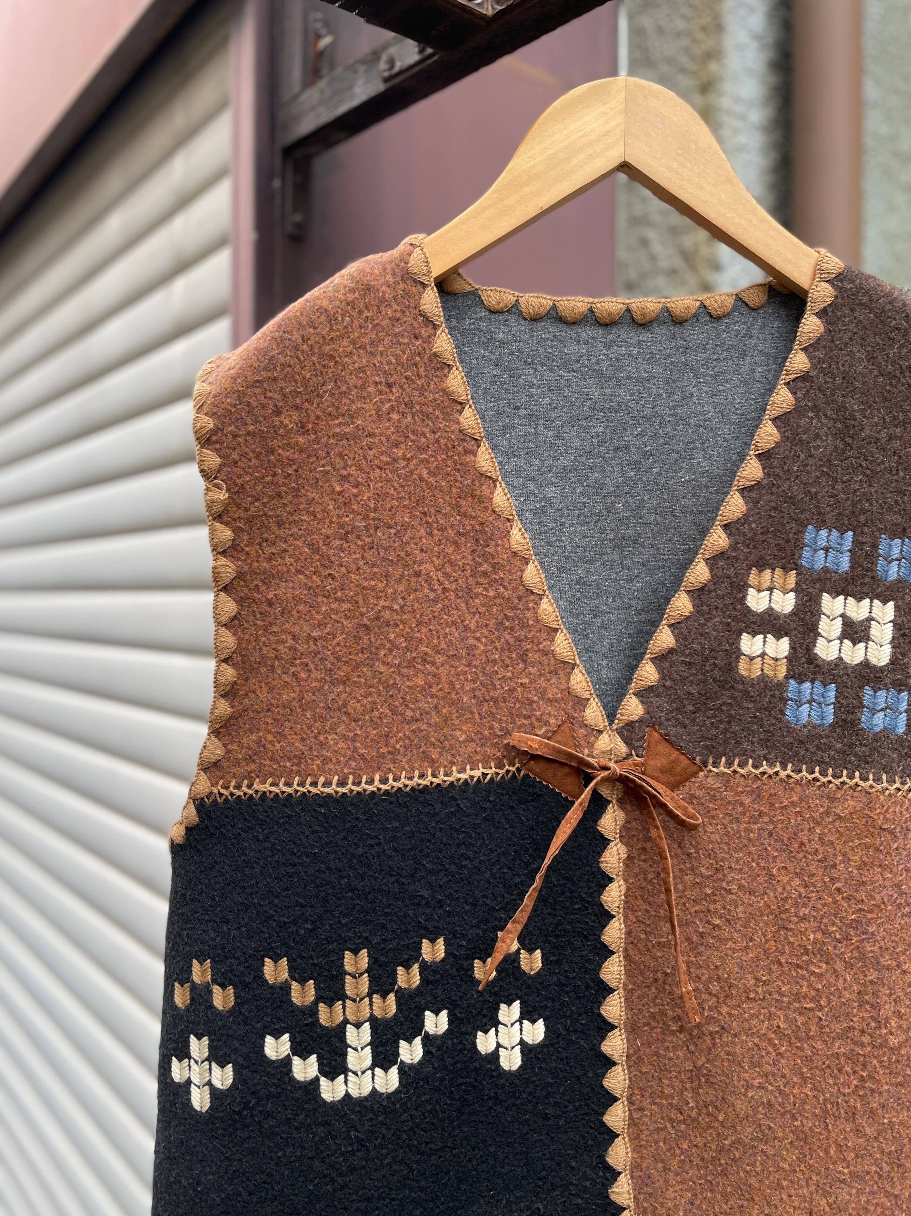 ウール混紡の柔らかいボディに、ゆるいタッチのネイティブ刺繍が随所に施されており、フロントのリボンもナイスアクセント◎◎◎