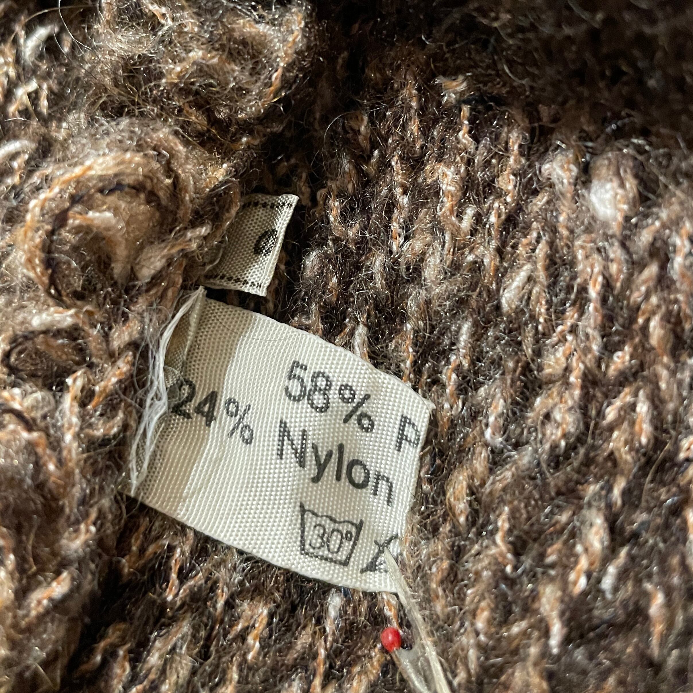 ブラウン系のミックスカラーを使用したループニットのデザインが可愛らしいアイテム。