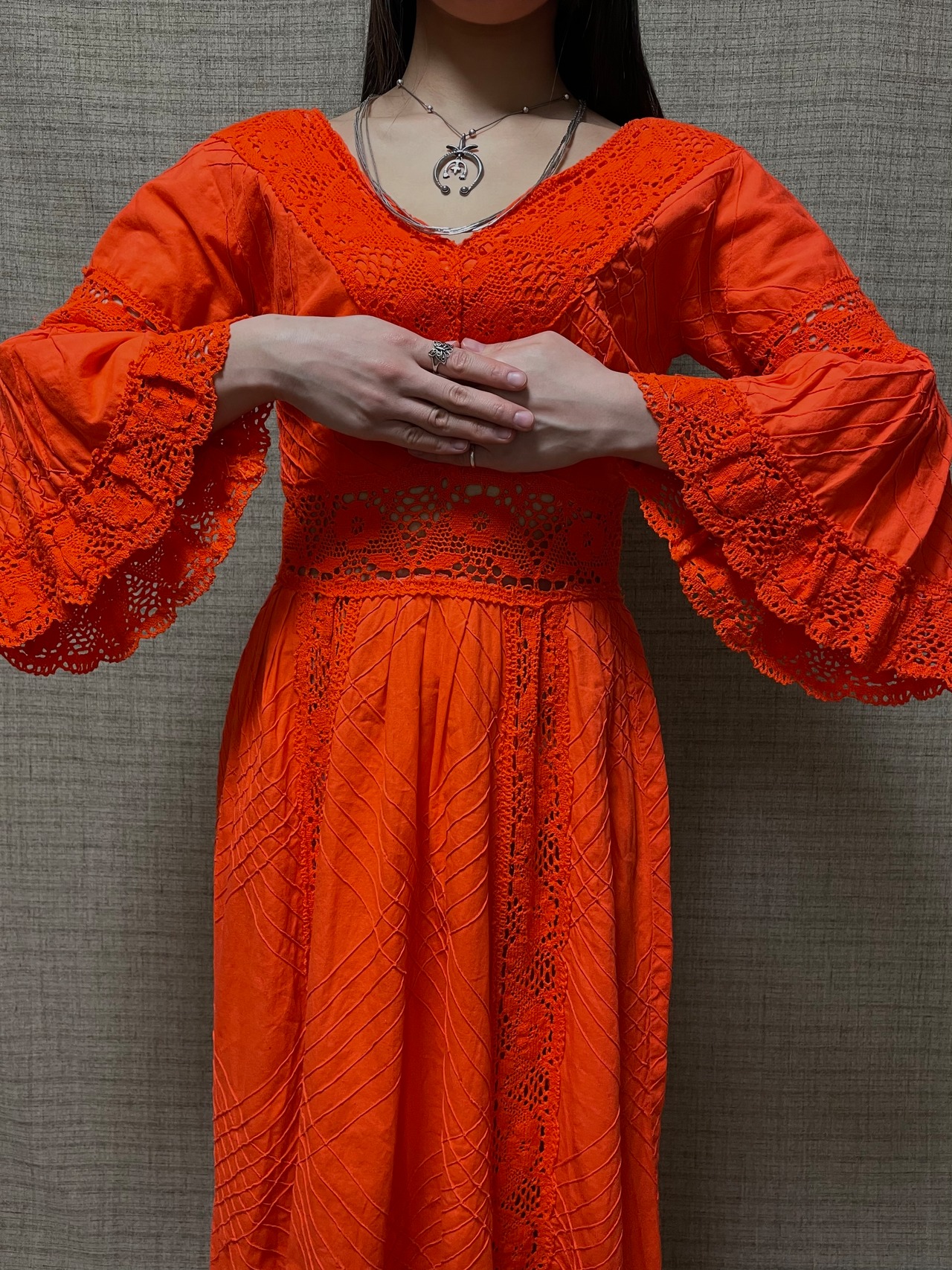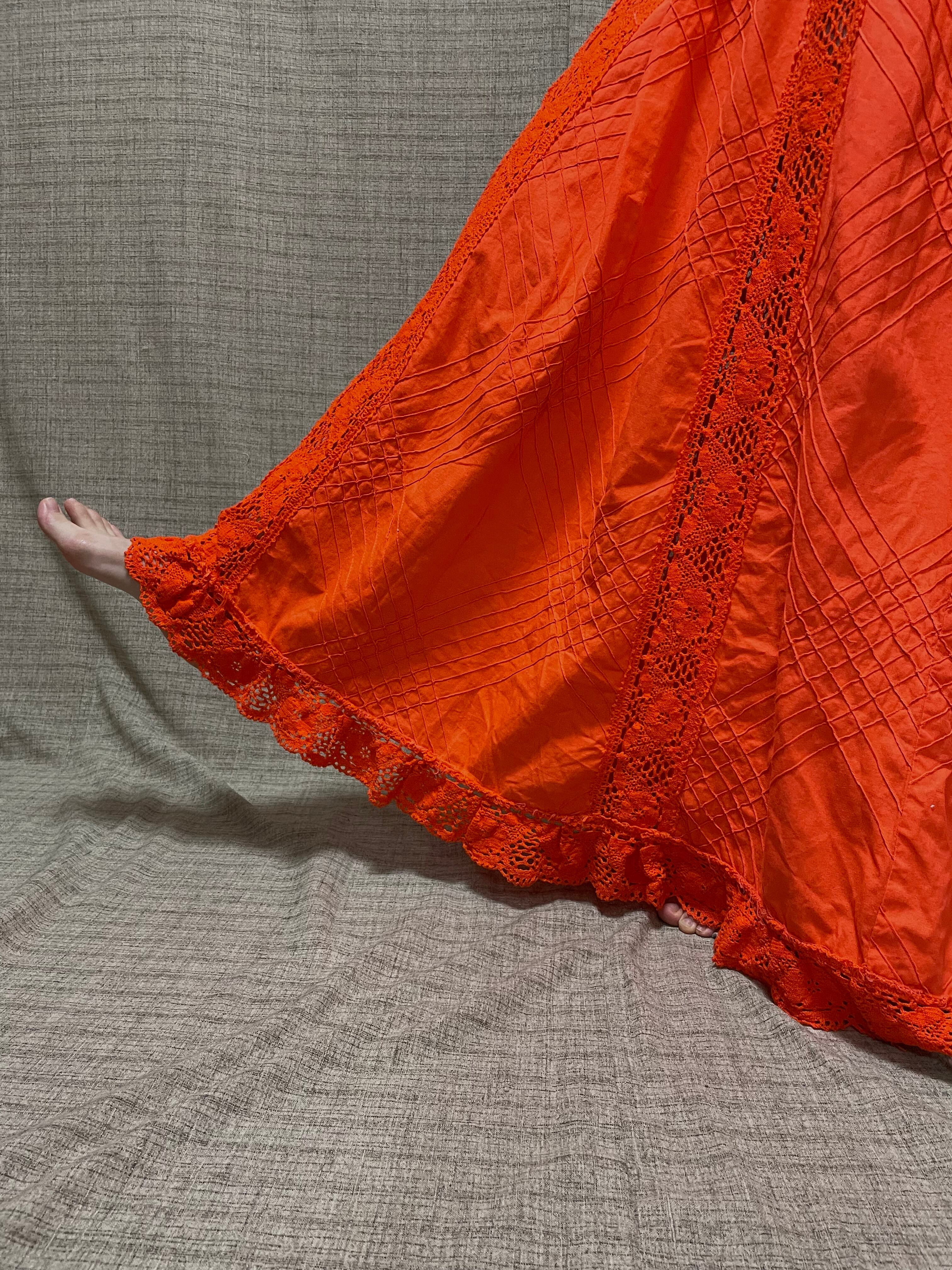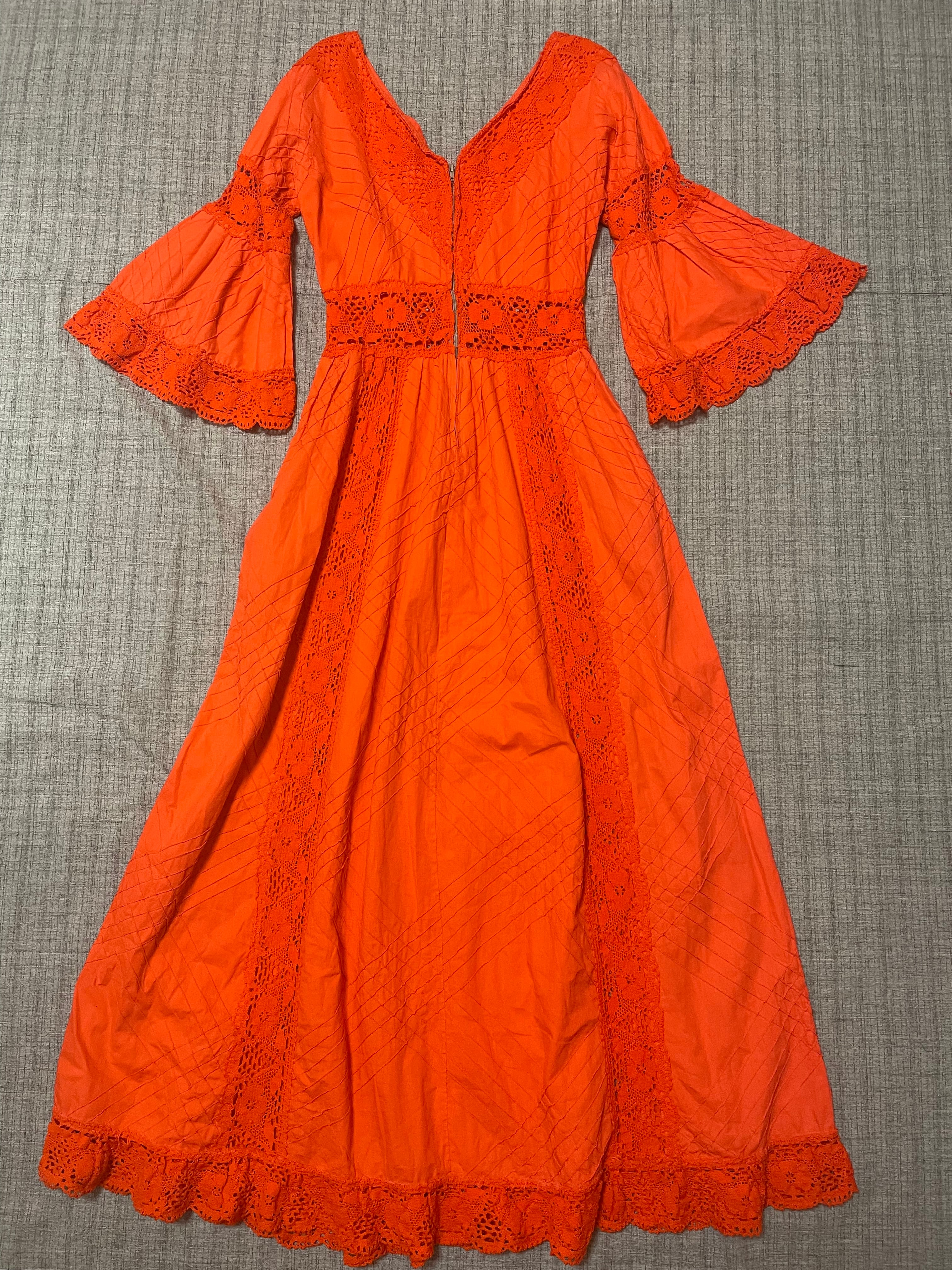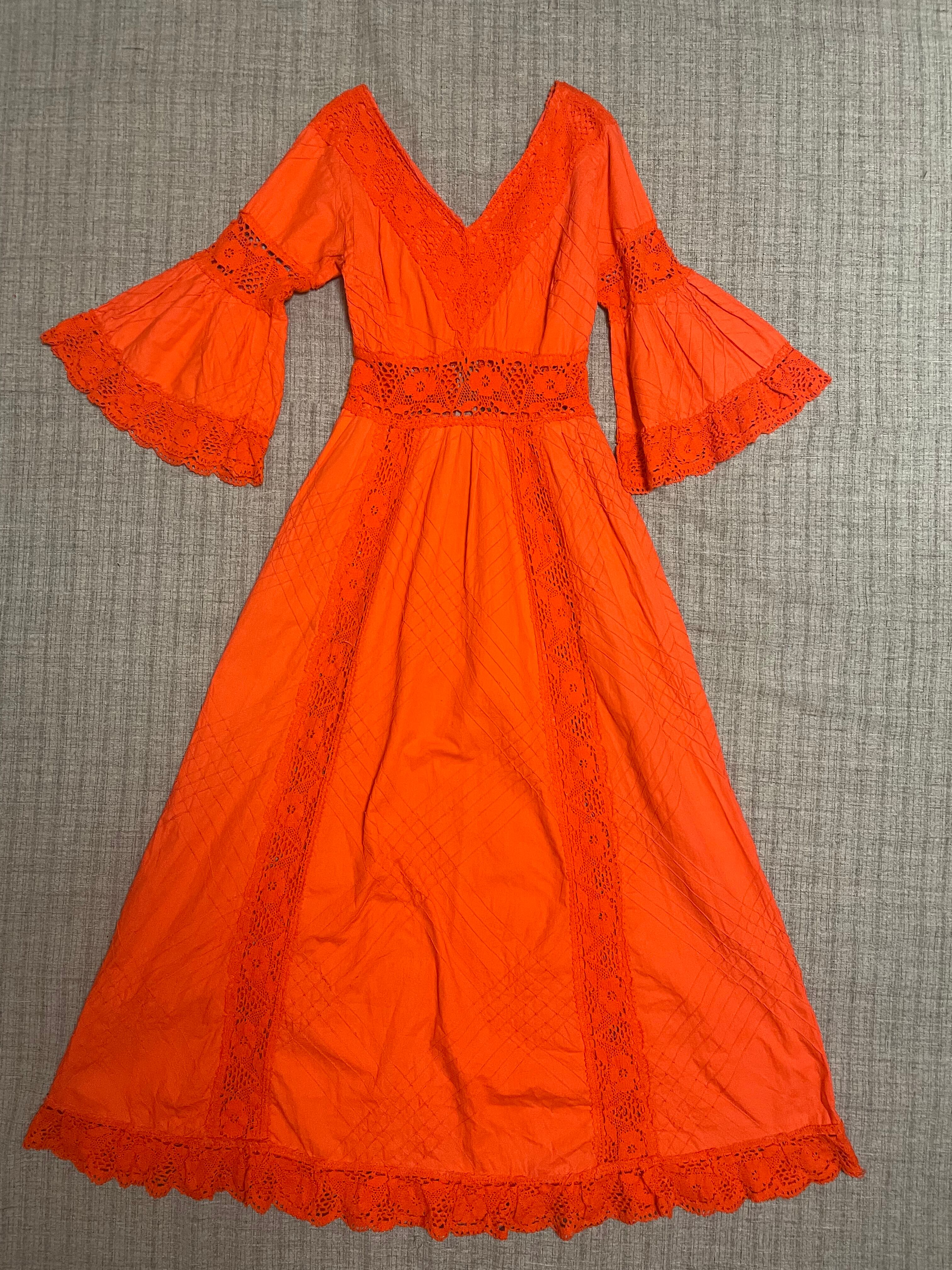 パキッとしたオレンジカラーが元気をくれる70sビンテージメキシカンドレス。