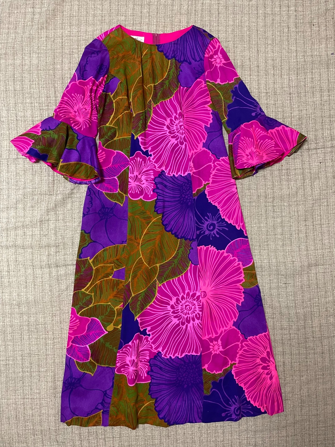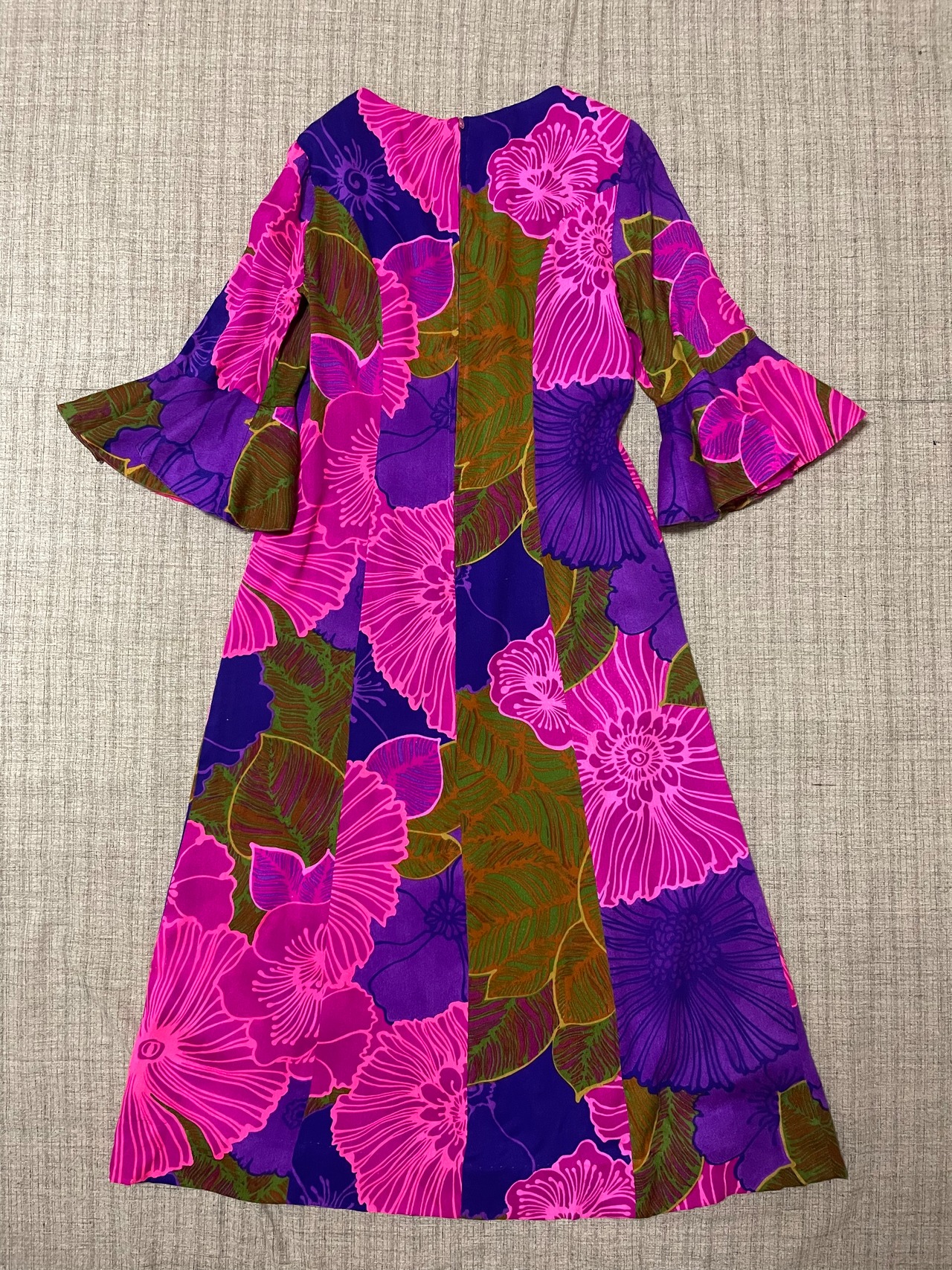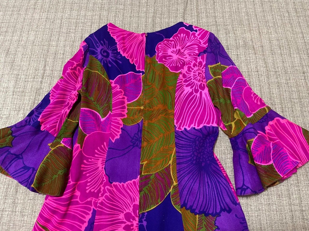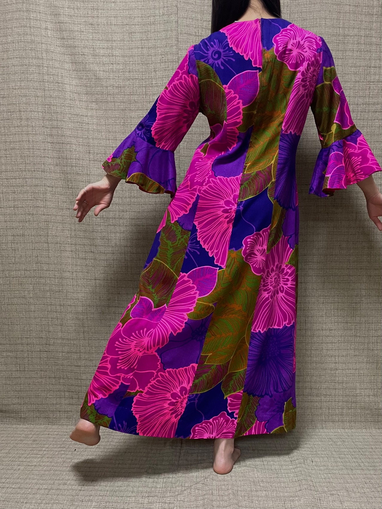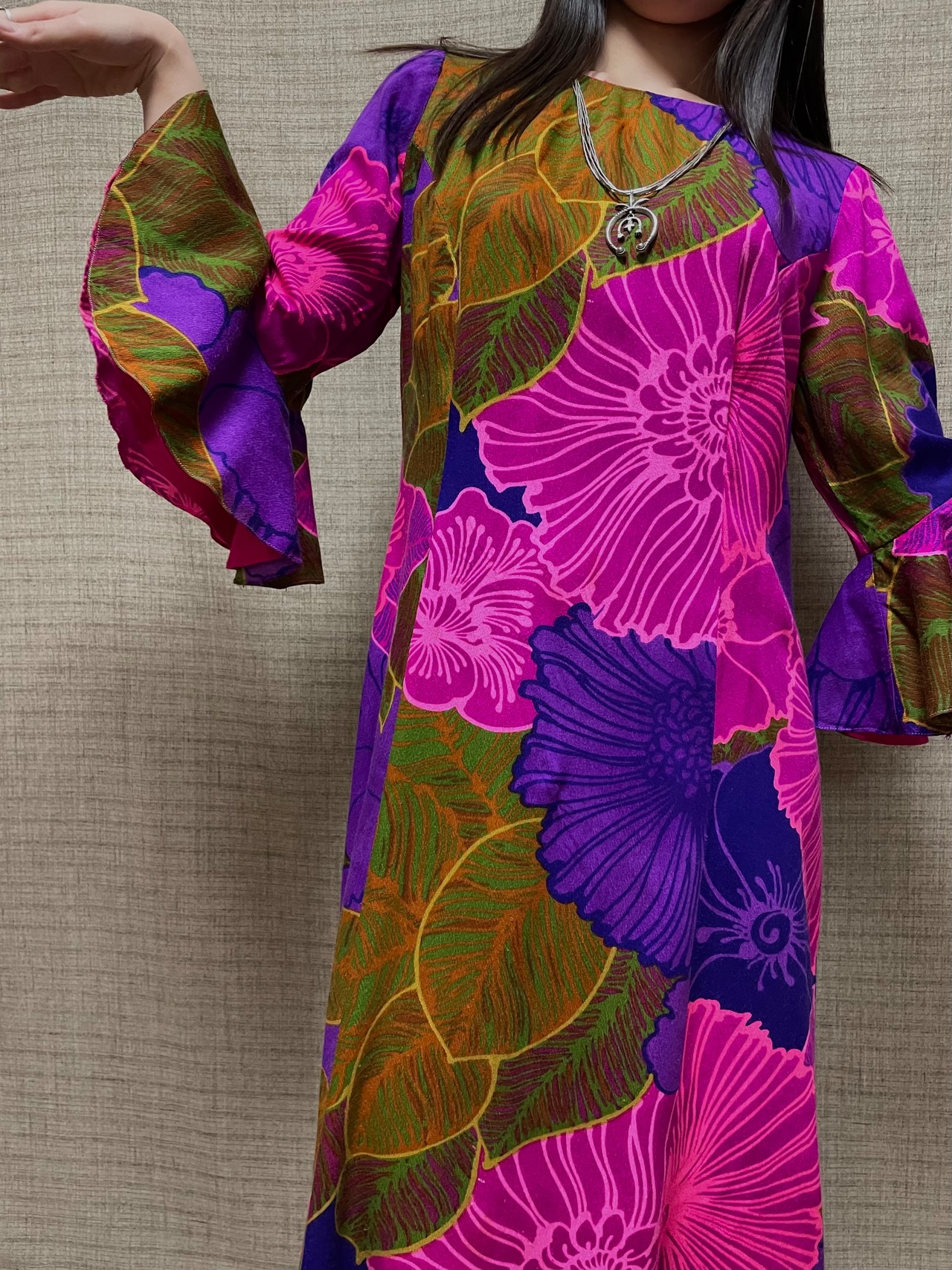 大きなお花が咲いててテンション上がる70sビンテージハワイアンドレス。