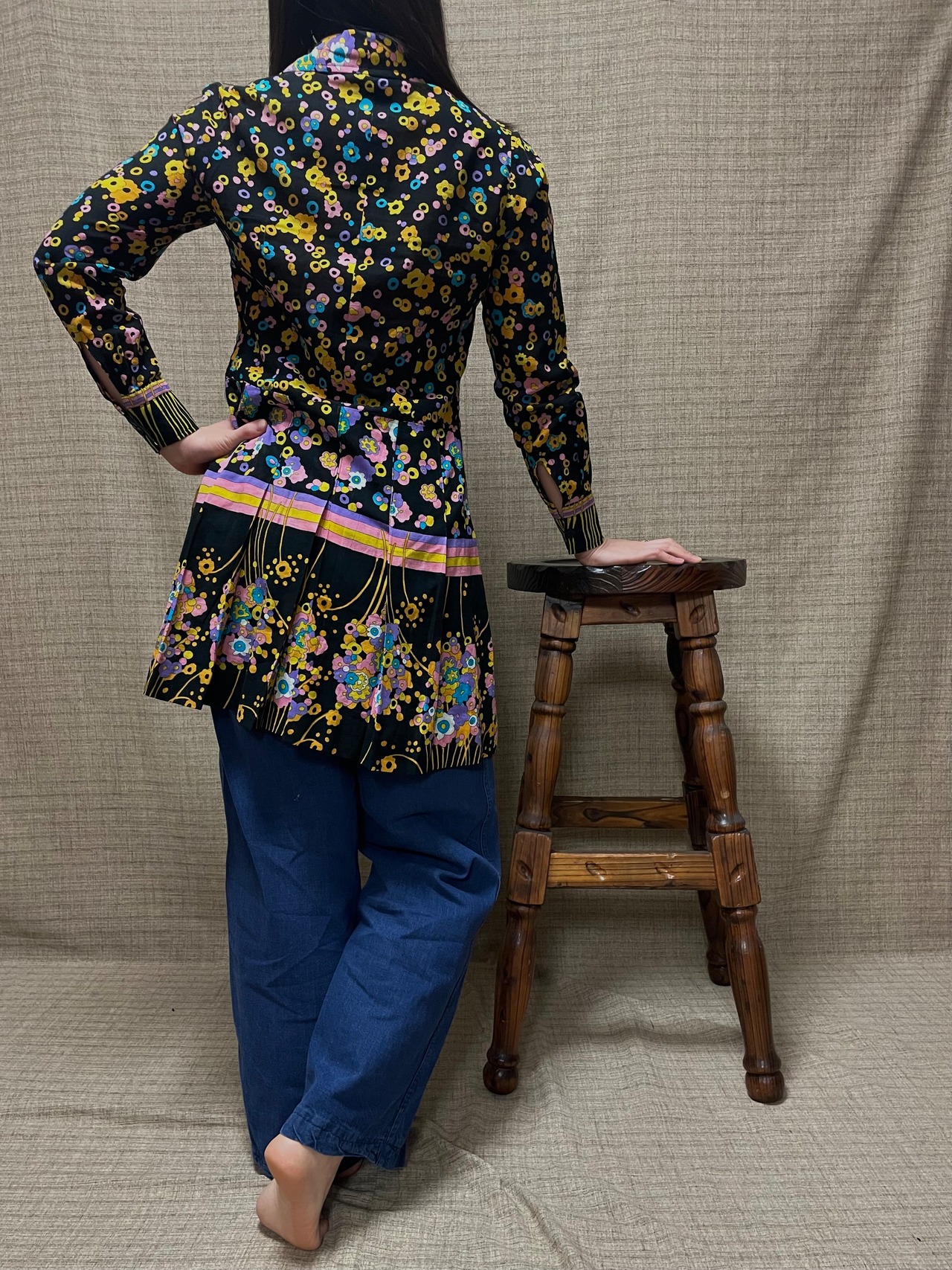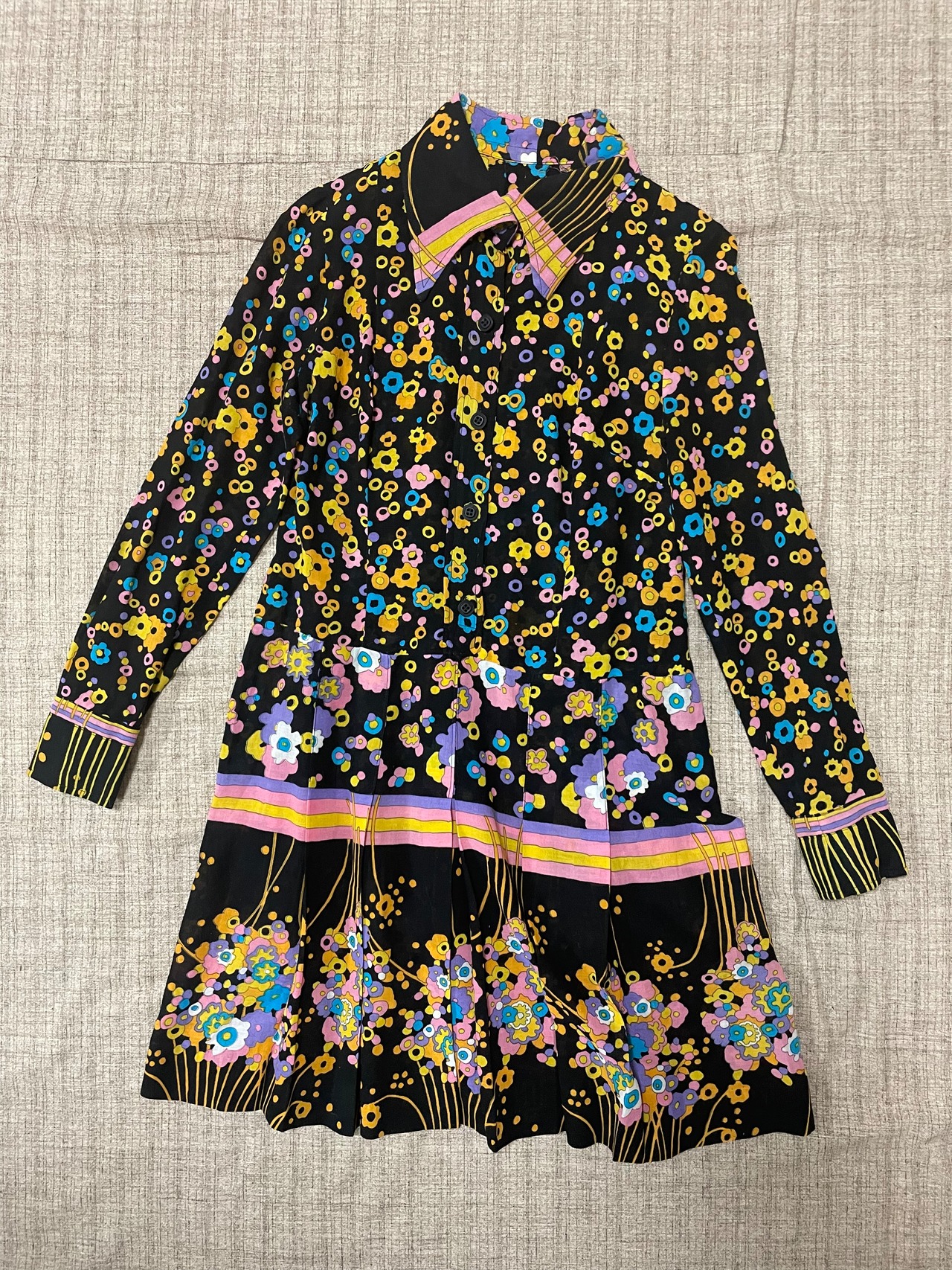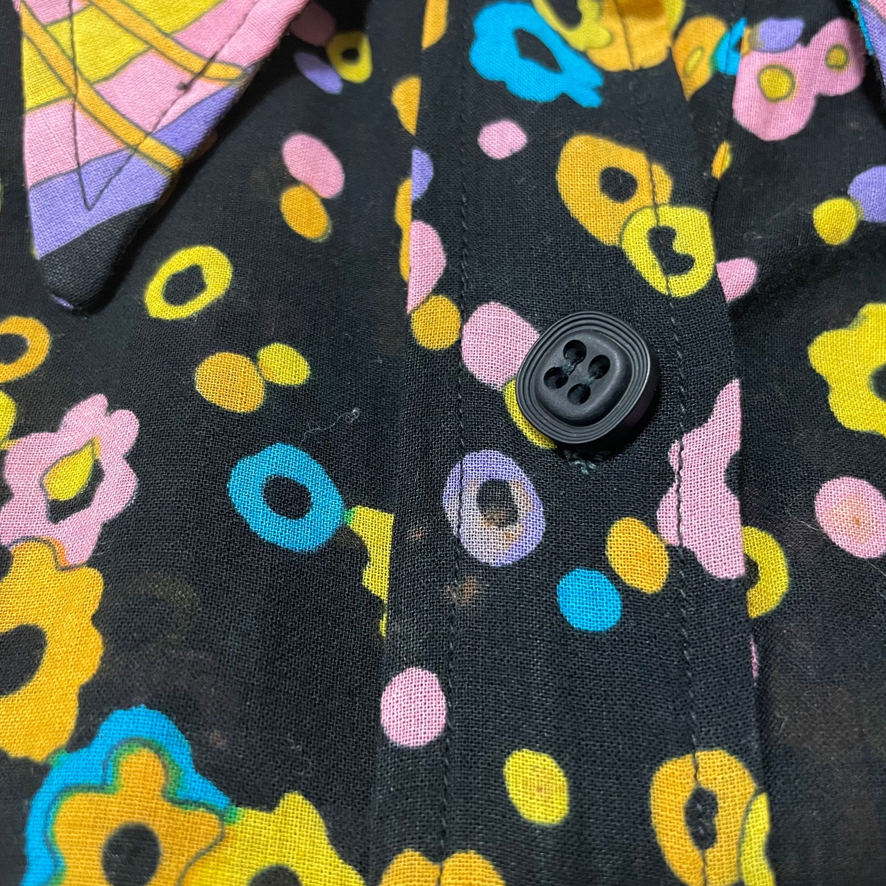 ピーターマックス風なポップでゆるーいアートデザインが可愛い70sビンテージドレス。